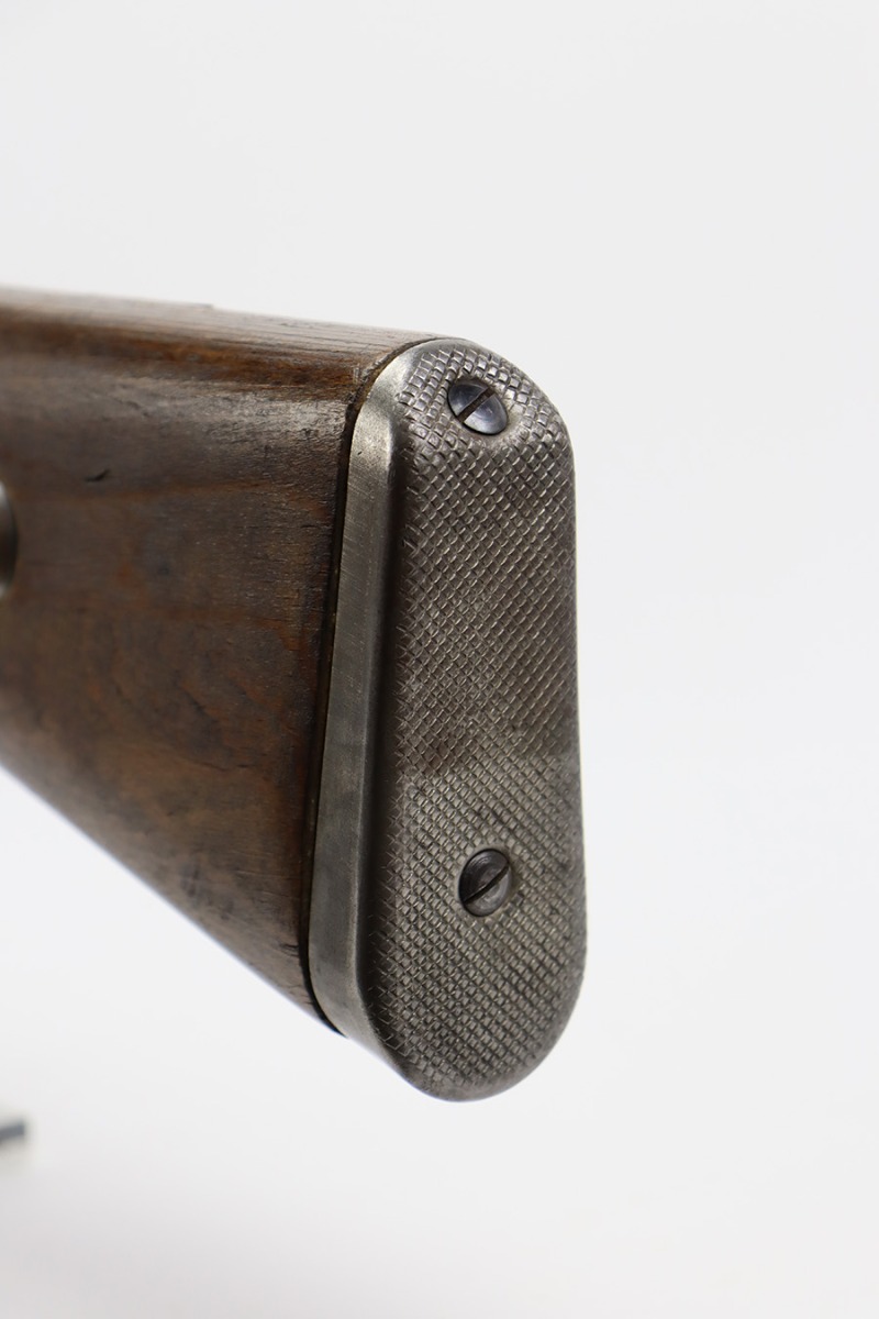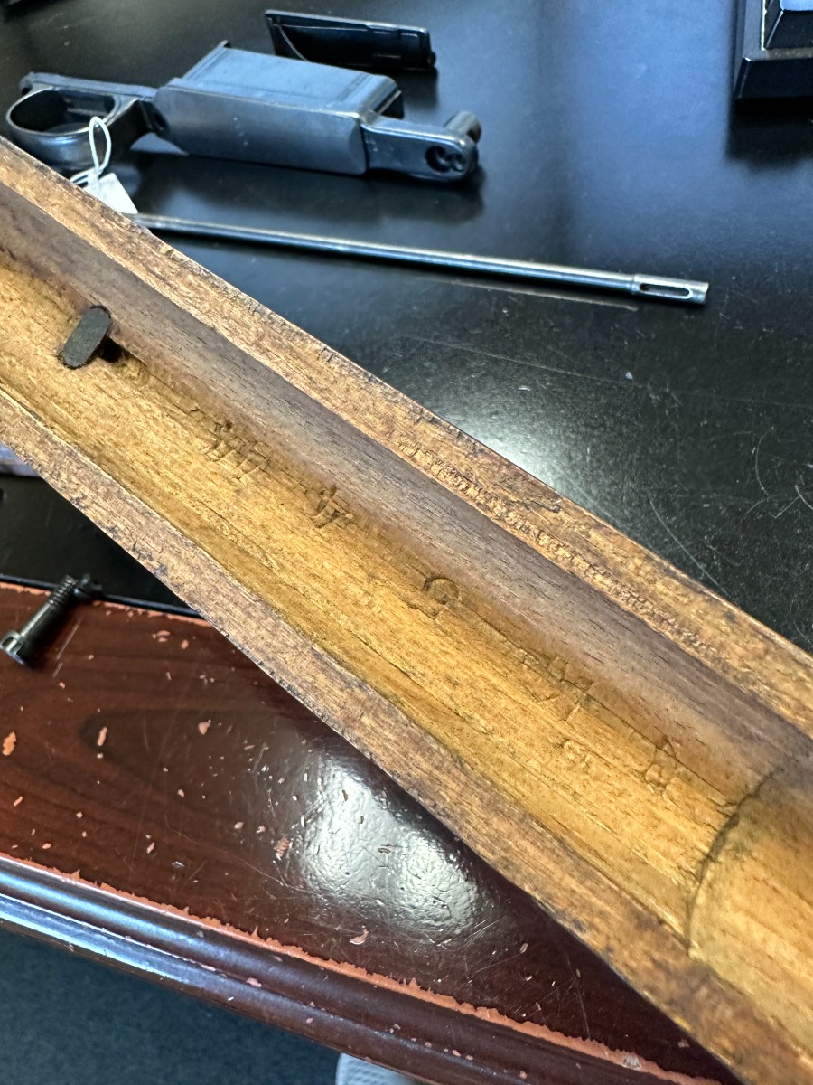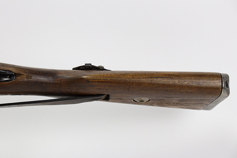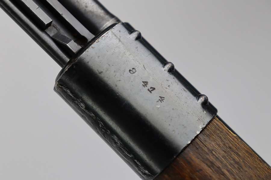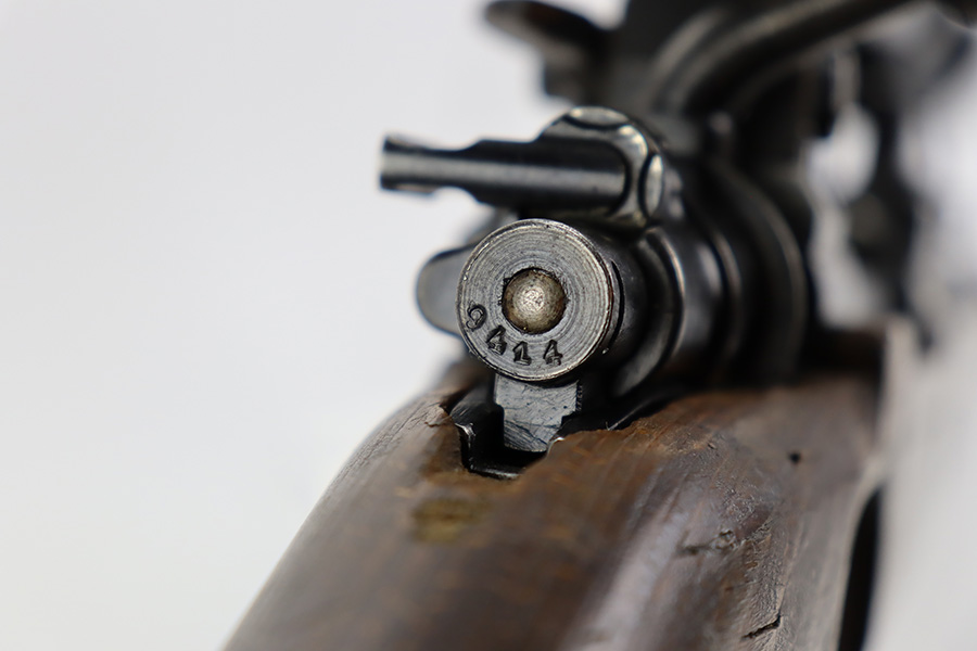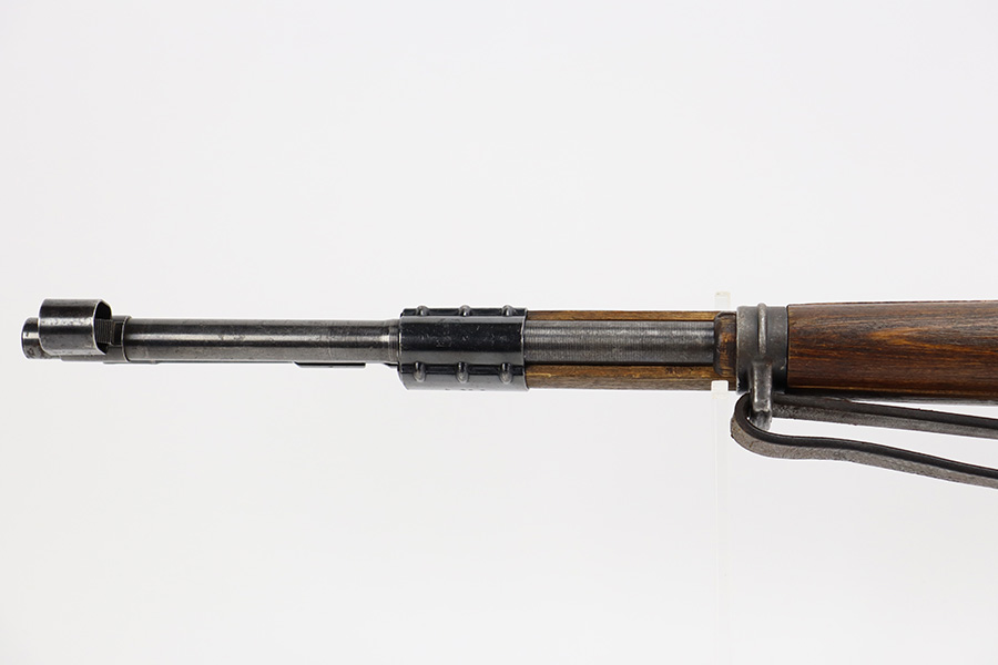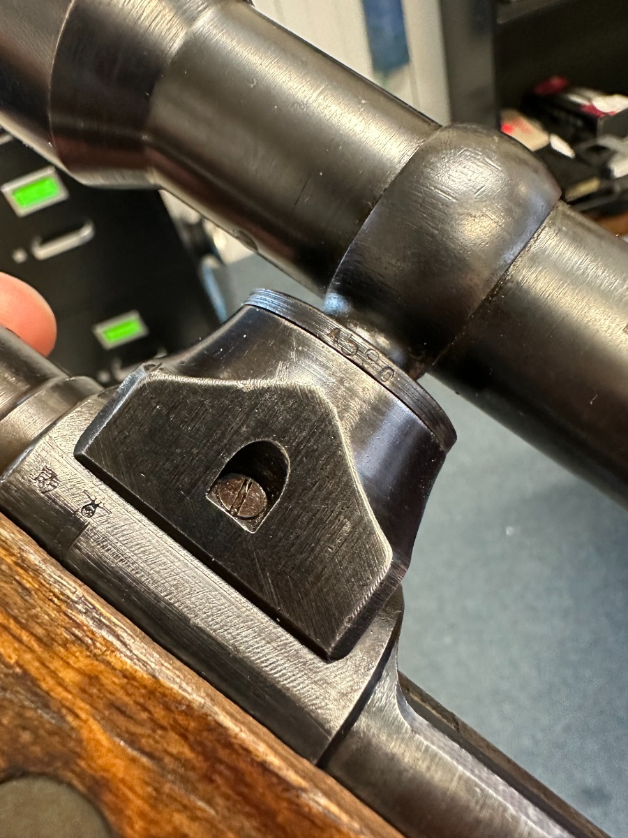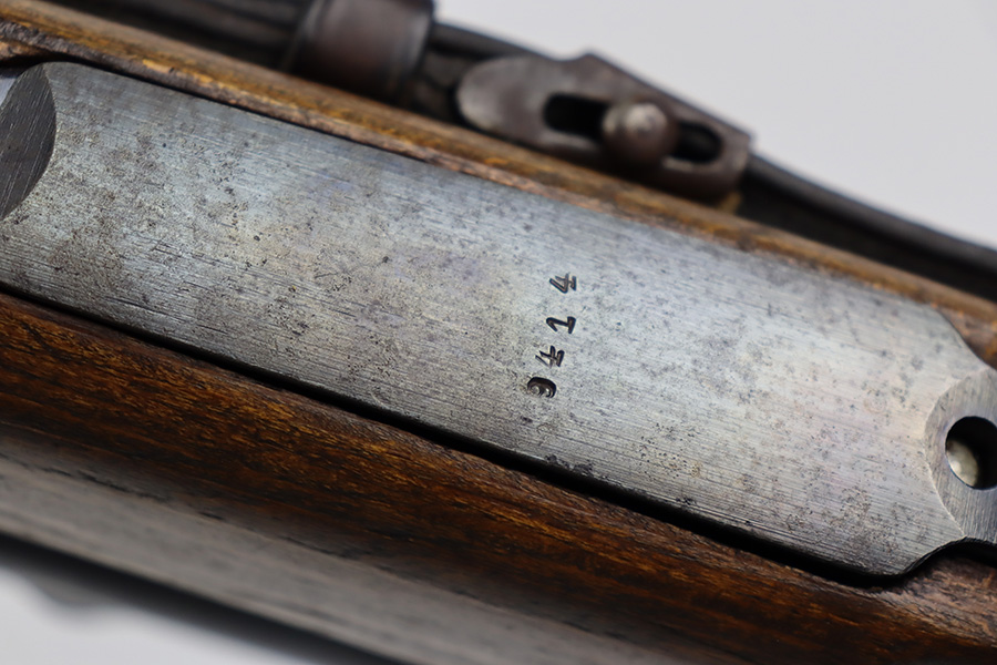 7/12/23 – This is an extremely rare, original example of a Sauer K98 High Turret sniper rifle, the first we’ve ever offered. In 1939, the Wehrmacht started a sniper program, and the turret sniper was the result of this program. In late 1943 the front base and front scope ring of the low turret was modified and thus became the high turret. The reasoning for this simplification was most certainly to produce a more cost effective, easier to produce sniper system. One of the results of this simplification was the front turret being 4mm taller. This is an original such example, with matching numbers throughout. The finish is original with minor speckling on the sides of the barrel, and minor oxidation in a few areas. Strong, shiny bore. Comes with cleaning rod, sight hood and original leather sling. The scope mount is numbered but mismatched to the rifle. The scope is an original Dialytan 4x example with ‘dkl’ marking. It shows finish loss around both front and rear hoods. The optics show a clear reticle but are a little cloudy and dirty around the edges of the viewing field. The stock has various dings and nicks, and there are a few areas showing some minor “splintering” but no cracks or structural issues. It has Heer Army marked on the right face.