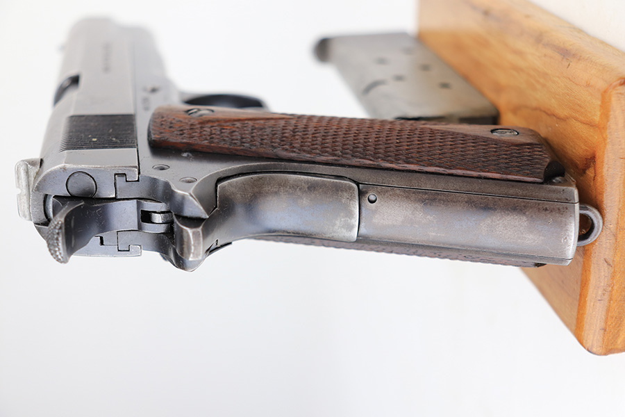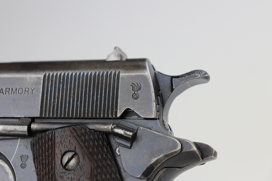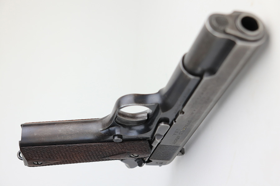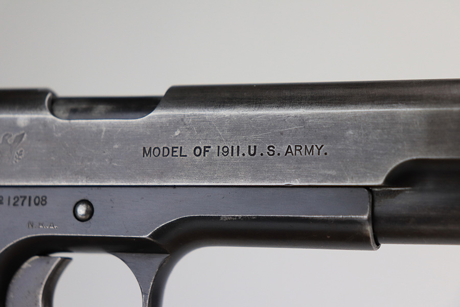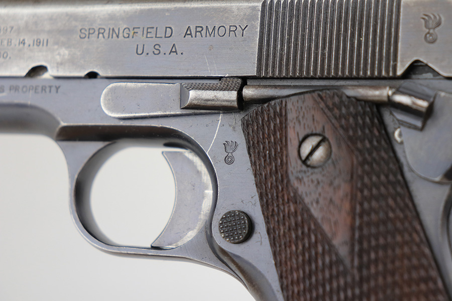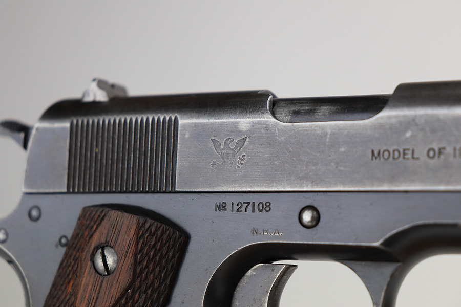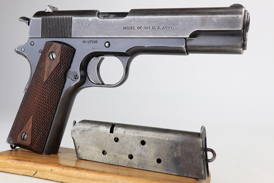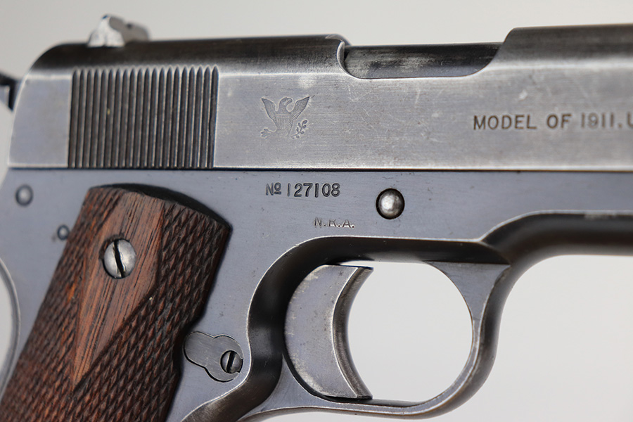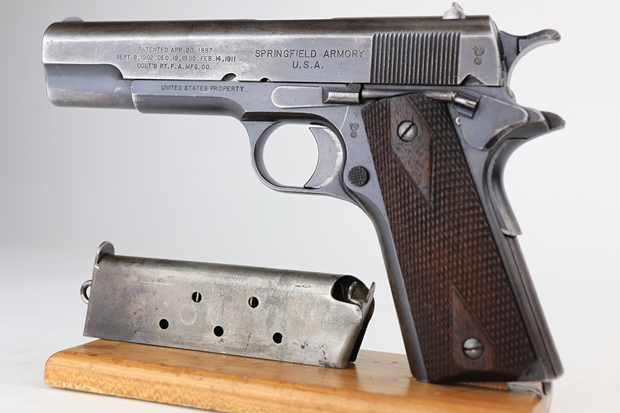 12/30/22 – This is an ultra rare and original Springfield Armory 1911 pistol with ‘N.R.A.’ marked frame. Beginning in1915, a number of Model 1911 pistols were made available to N.R.A. members and affiliates. Among the M1911s sold during the prewar years was a group of approximately 100 pistols purchased through Springfield Armory by National Rifle Association Life Members and members of N.R.A.-affiliated clubs. Both Colt and Springfield Armory-produced examples were included in this program. These pistols carried a purchase price of $16 each, and were stamped with the letters, “N.R.A.” on the right side of the frame below the serial number. This one is all original with Springfield parts throughout. It has about 60% of the original blue remaining, with honest wear throughout on slide and grip frame. Bore is generally clean but has minor frost and wear from use. Nice grips with no cracks or chips. Original two-tone magazine with lanyard ring.