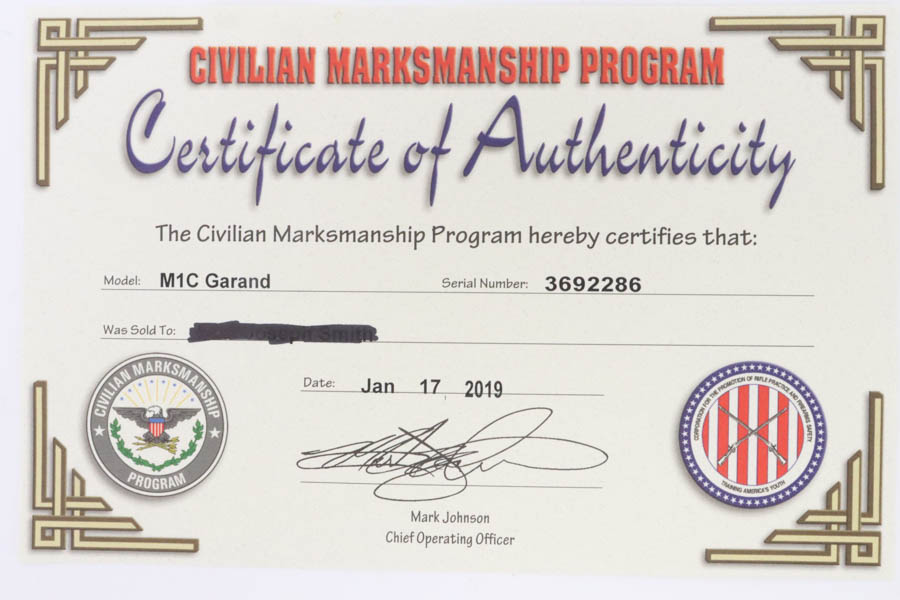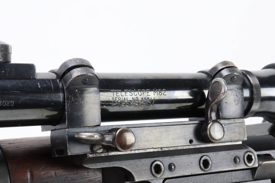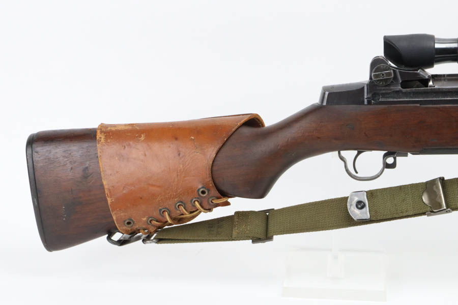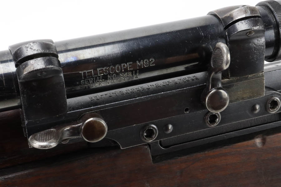 6/24/2024 – This is a very rare and desirable Springfield M1C Garand Sniper rifle from the tail end of World War II. Manufactured in April of 1945 with an August of ’45 dated barrel, this rifle features original M82 scope with properly numbered and matching scope rail. The mount is also numbered but to a different rifle. The mount is also properly marked Griffin & Howe with patent dates in the space beneath the scope. Developed in 1944, the M1C was the first production-level sniper variant of the M1 Garand semi-automatic rifle. While highly effective as a sniper weapon, the manufacturing process was rather involved, requiring a Springfield receiver to be selected off the production line before heat treating, shipped to Griffin & Howe for base installation, and then returned to the Armory to complete the process. While phased out of production in favor of the M1D, which could be produced in-house by Springfield using finished and surplus M1 rifles, the M1C saw sniper duty through Korea and into Vietnam. There were fewer than 8,000 M1Cs completed for WW2, and a total receiver production of less than 13,000. This rifle features a correct, WW2 K-line leather cheek pad and a canvas sling. It also has a proper, early Springfield Armory flash hider with thick base type. Original 1945 stock with NFR inspector mark. The scope has beautifully clear optics and is marked ‘Telescope M82’ with serial number. The stock is in excellent condition with only minor handling wear. Nice bore with minor signs of use. CMP certificate confirms it as an original M1C.