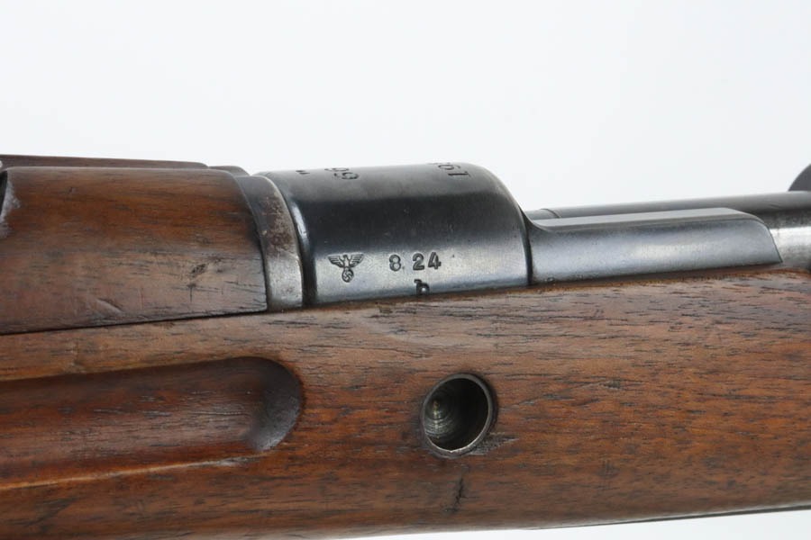 09/28/2024 – For sale is a rare, Steyr G12/34 Mauser issued to the Luftwaffe during WW2. The rifle is based on the Polish Wz.29 Mauser. The rifle retains a nice blued finish on the receiver. The rest of the retains some of its original bluing but has a good bit of finish loss. The stock is in great condition with minor handling and pressure marks. The rifle has matching serial numbers throughout. (receiver, bolt assembly, magazine follower, bolt stop lever, stock, handguard, rear sight ladder, trigger guard, magazine floor, barrel bands, nose cap). The right side of the stock is stamped with WaA623 inspection proofs and an Eagle/L for the Luftwaffe. The cleaning rod is missing from the rifle.