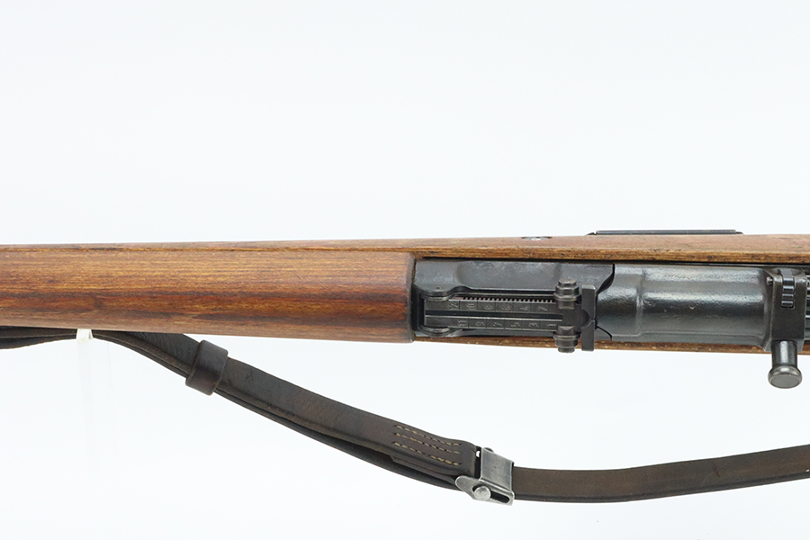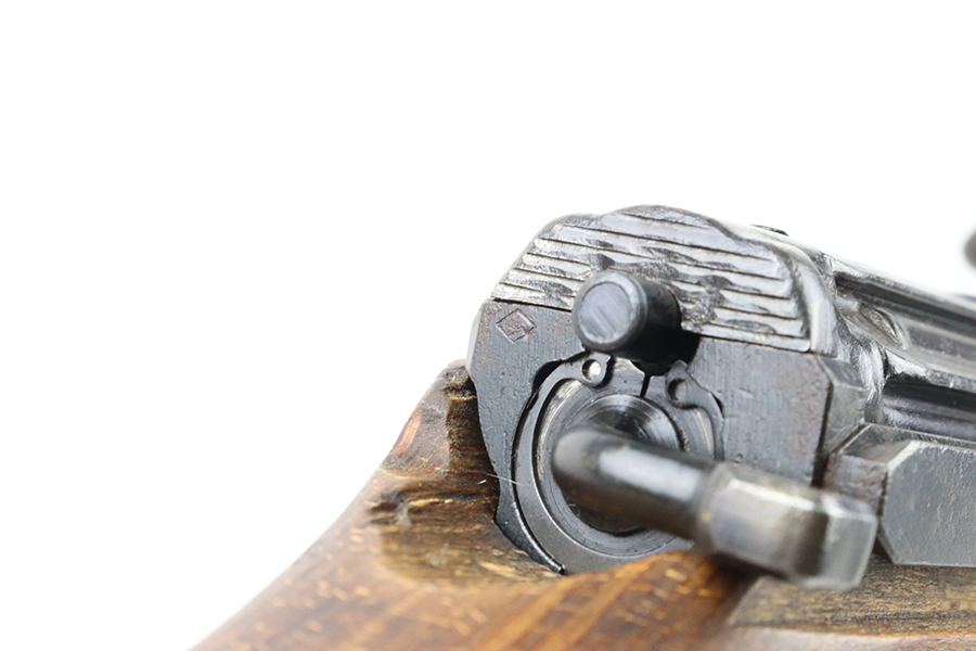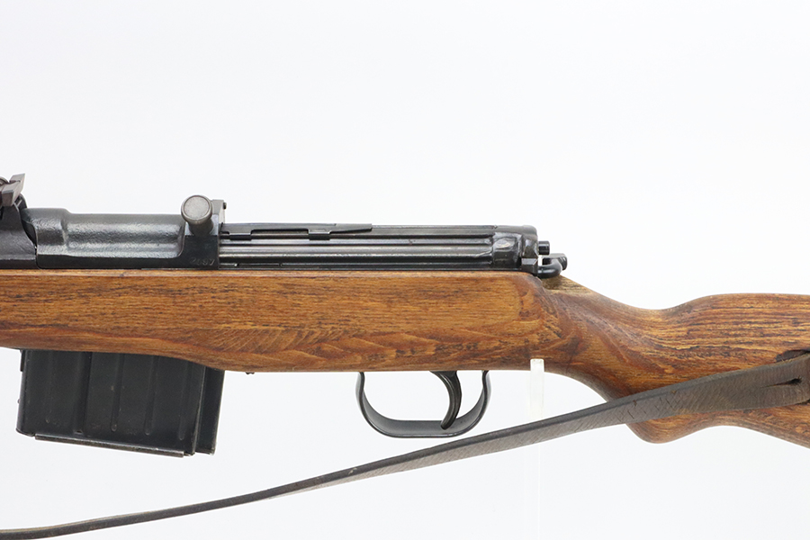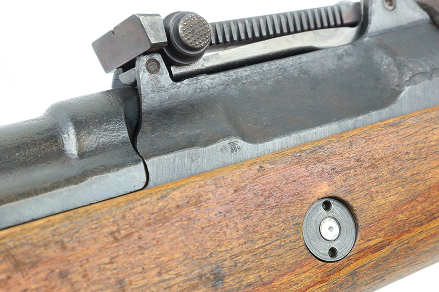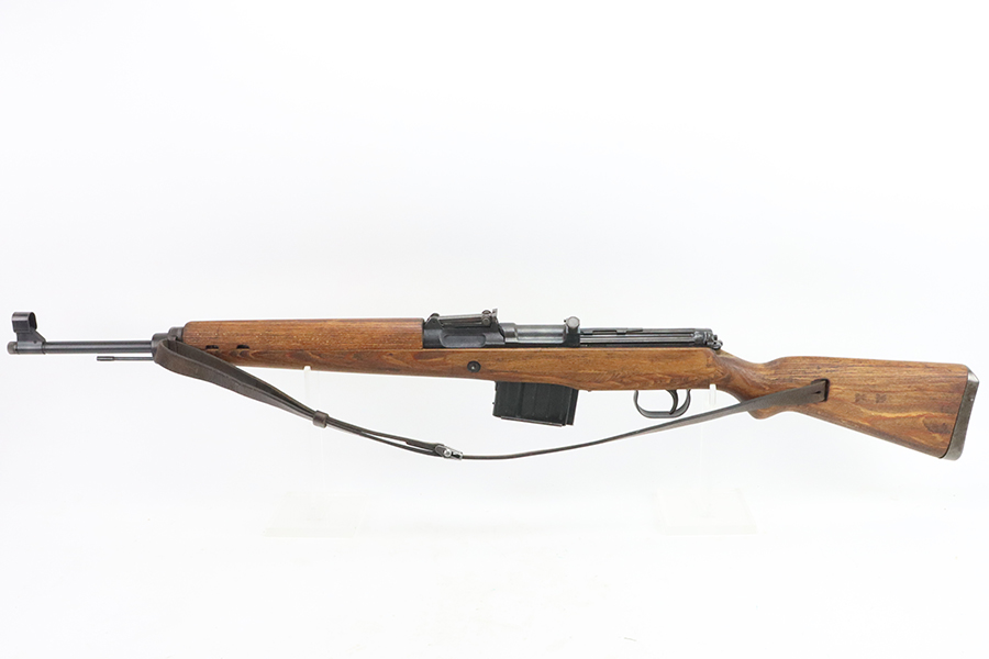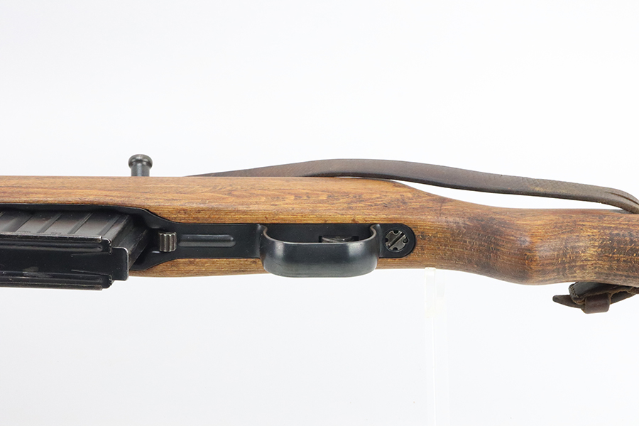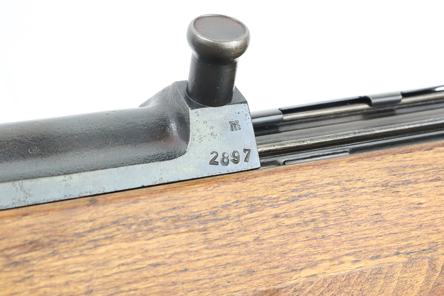 6/29/24 – This is a very rare Walther G.43 rifle with an “ac 43” code. Less than 40 documented examples. It is all matching, including the stock, and has the proper waffen proofs throughout. It has retained essentially all of its bluing, but the metal parts have been professionally refinished. It’s still a very nice looking gun. The wood is in above average condition with clear markings. Very nice bore – great rifling with just very light pin-pricking throughout. Comes with a correct magazine and a period-correct leather sling.
