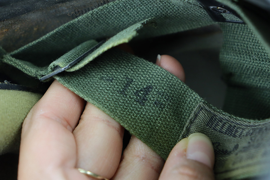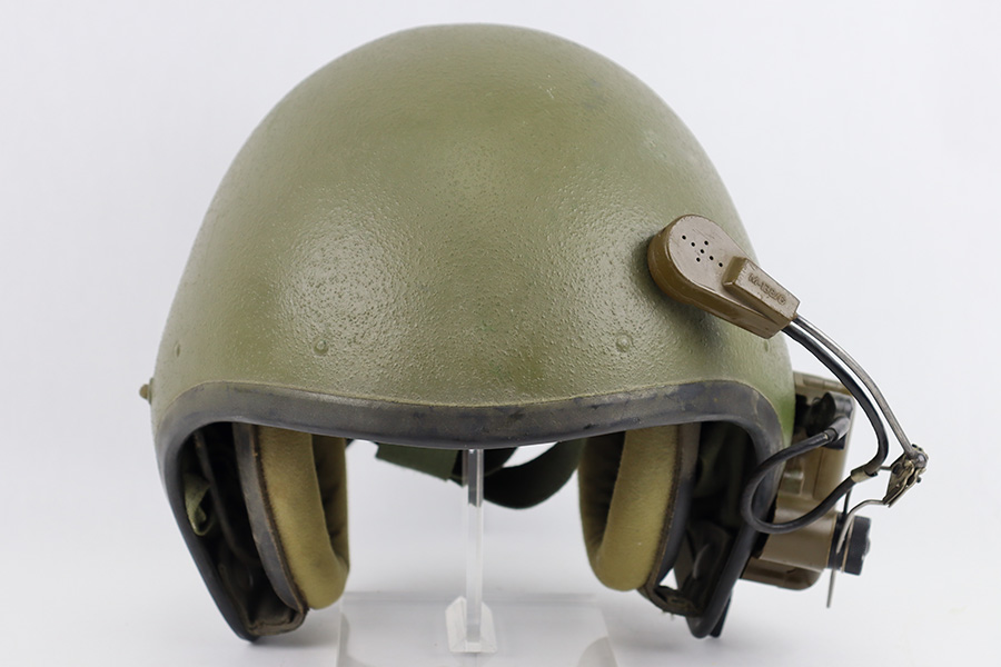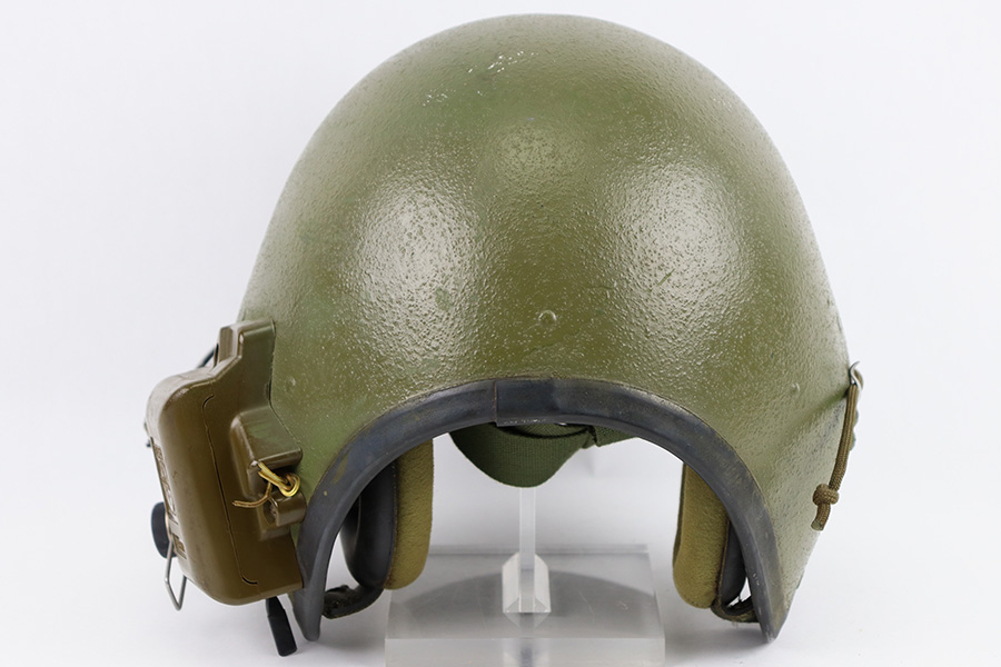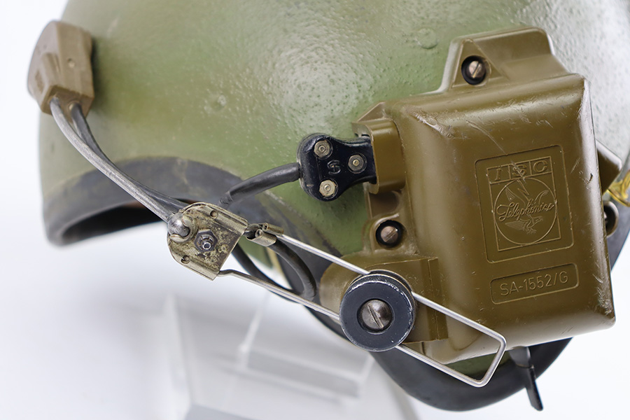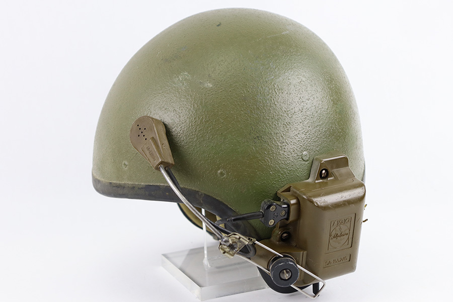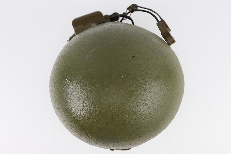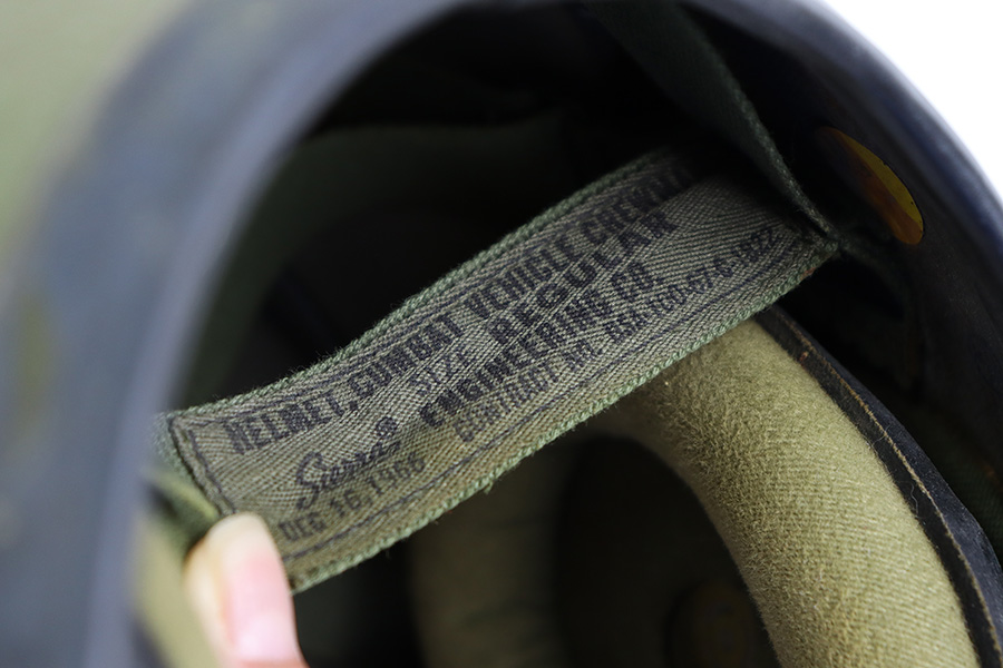 10/18/23 – This is an original 1966 production, Vietnam era CVC T56-6 Tanker Helmet with an original SA-1552/G Transceiver built in / attached. Excellent overall condition with a clean exterior. No dents or notable flaws, and nice rubberized lining around the rim of the shell. The interior is clean and excellent as well, with no markings or stamps of note except for the ink stamp on the back canvas adjustment strap. This ink stamp shows the manufacture date and labels the helmet size “Regular”. A very nice, complete example.
