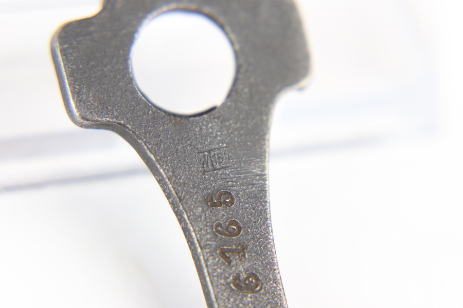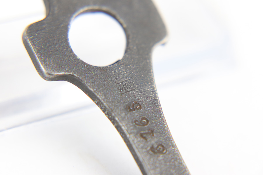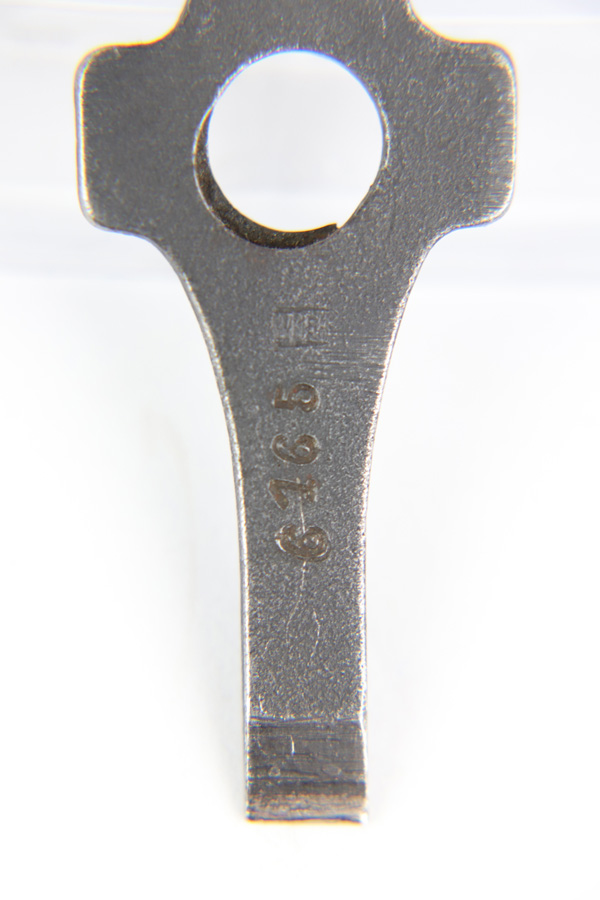 1/2/19 – This is an original early/pre WW2 production W/154 stamped Luger tool. These are often seen with G Date Lugers. The w/154 is a scarce stamp and very desirable. Excellent overall condition with some minor signs of use. The front of the tool is serial numbered 6165, which most likely was added later during the war in an arsenal, or police arsenal stamped. Guaranteed original and authentic.