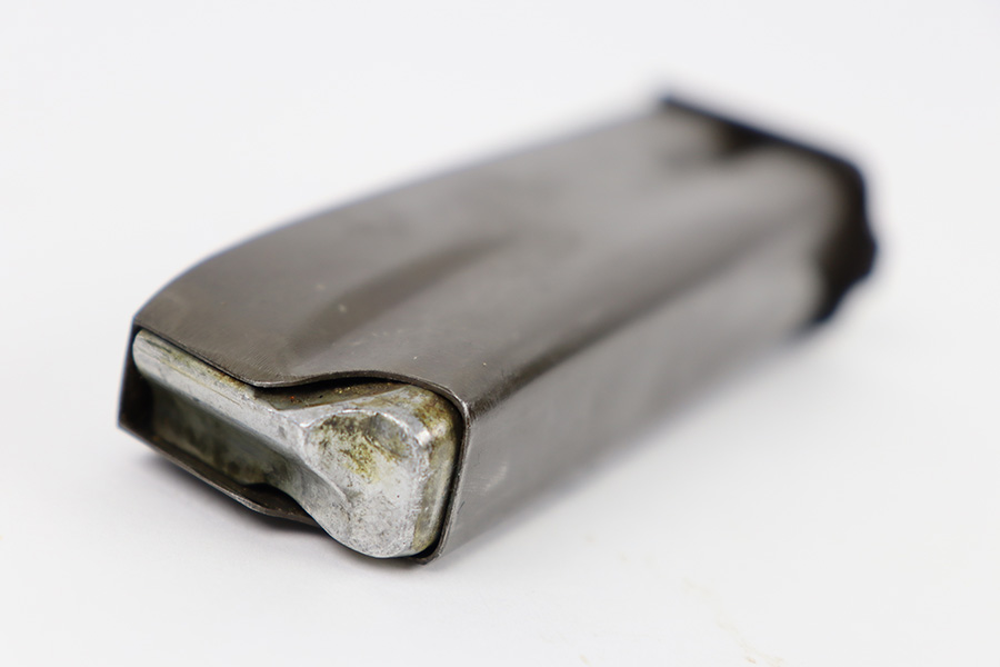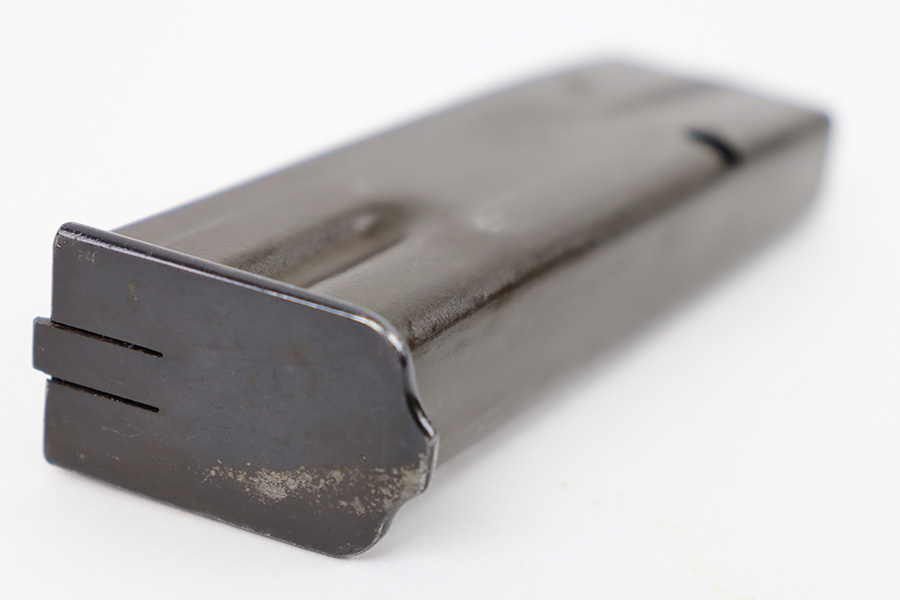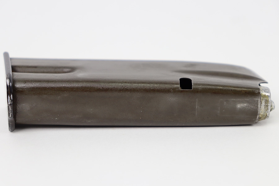 10/24/23 – This is an original FN Browning High Power magazine from WW2. The magazine is in great overall condition with a phosphate tube and blued base. The spine of the tube is stamped with a faint waffen eagle WaA103 proof stamp. The spring is strong and fully functional.
