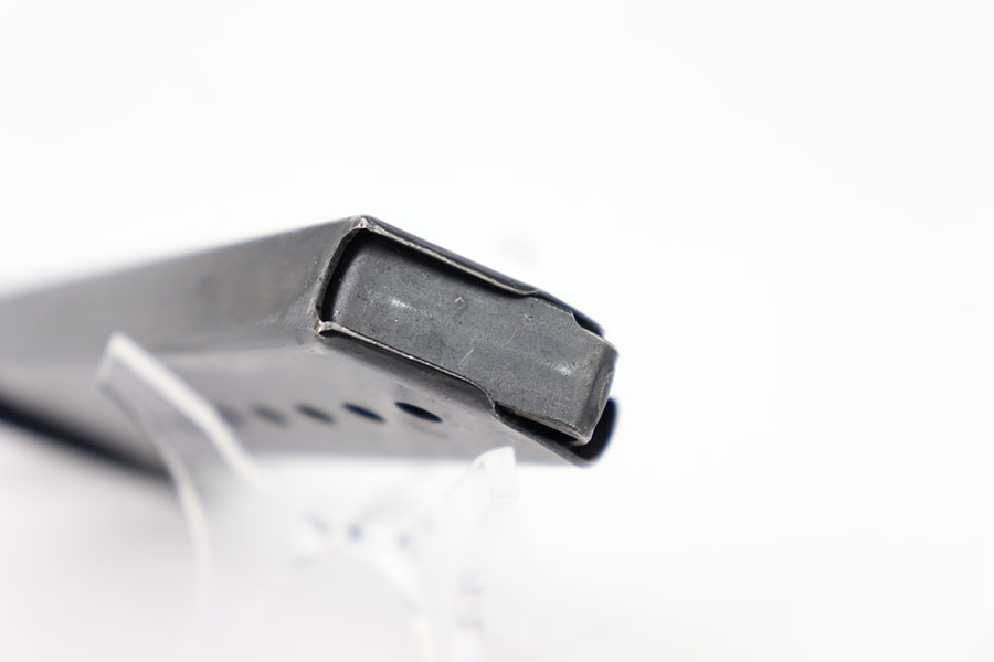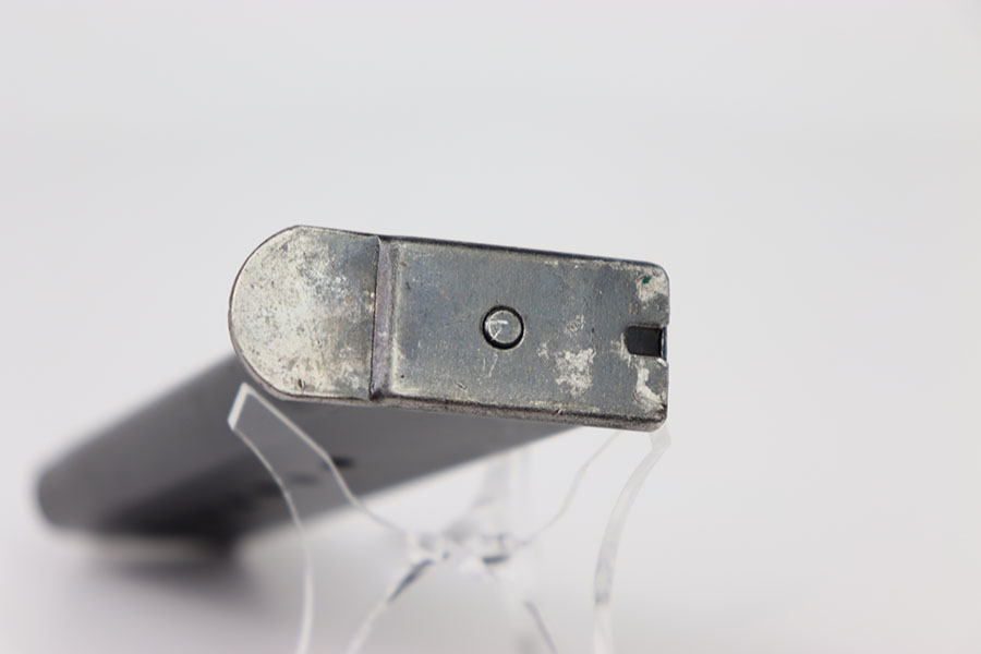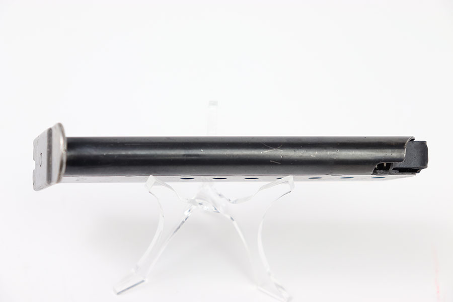 1/31/24 – This is an original WW2 Mauser P.38 magazine in excellent condition. Very nice blued finish throughout with minimal wear on the spine. No scratches, dents, or rust. Stamped P.38v on the left side of the tube, with an eagle/135 military proof on the spine. The baseplate as the majority of the finish loss both on the tip and rear. Strong, fully functional spring.