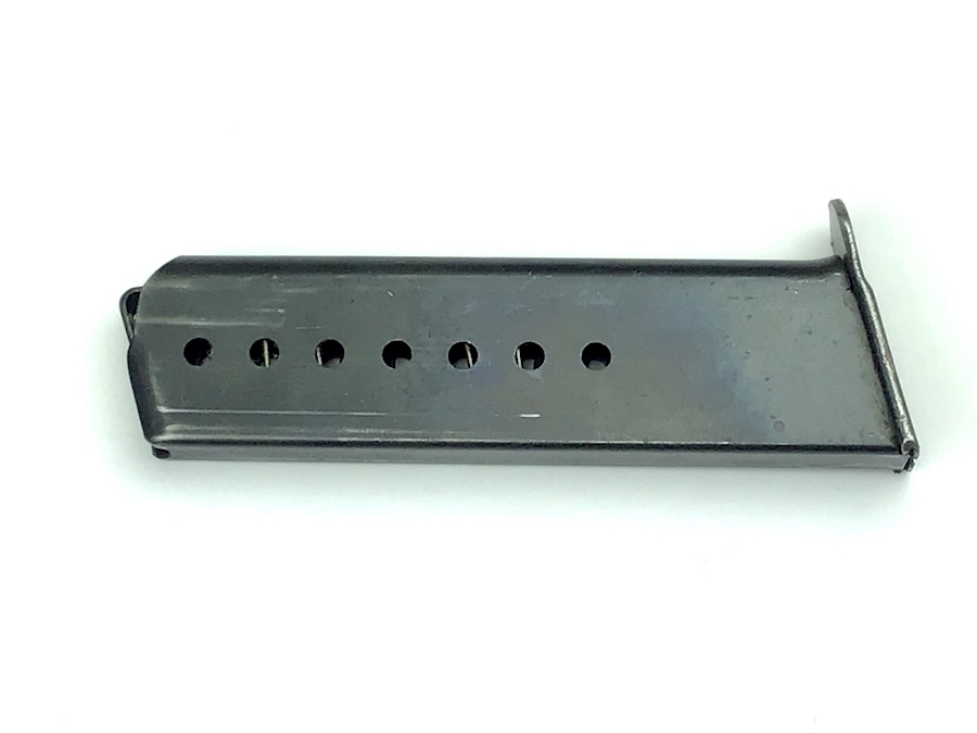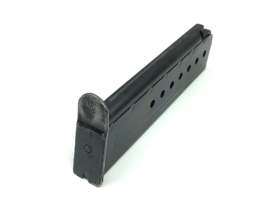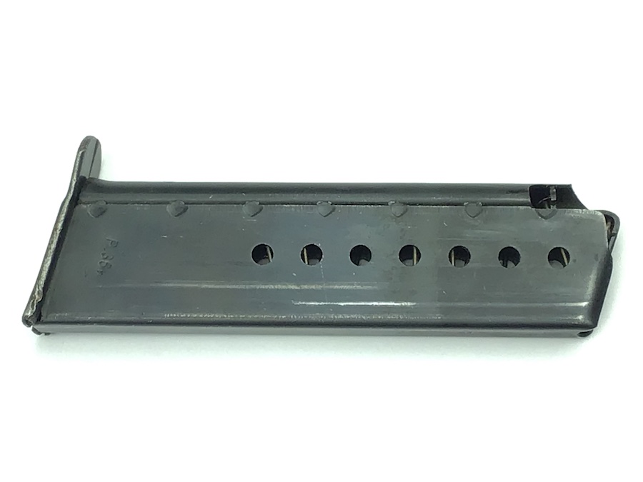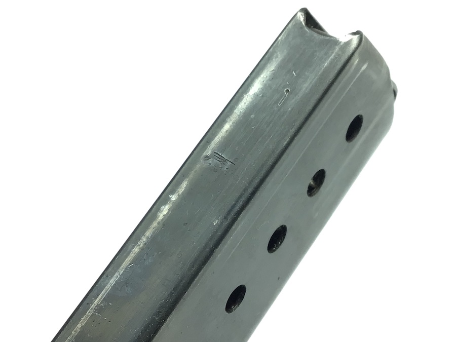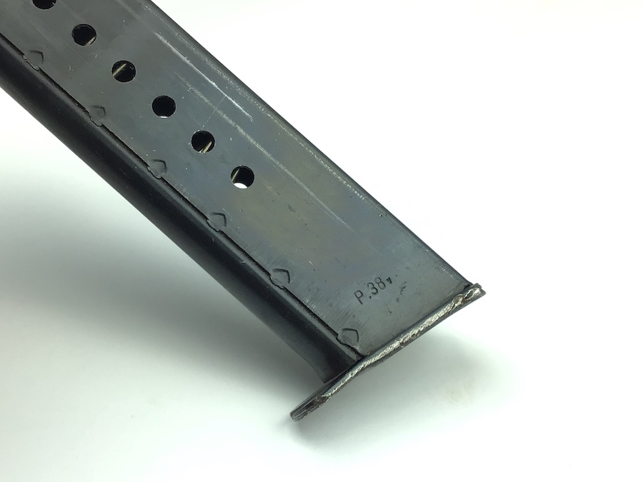 11/25/20 – This is a very good, original Mauser P.38 magazine made during ww2. Most likely 1943 production. The spine is waffen WaA135 proof stamped, although faint, it is visible. The frame is P.38v. Nice bluing with only minor surface imperfections. Minor scratches and bluing loss on the base. Strong functional spring.