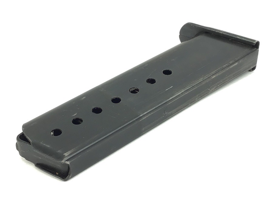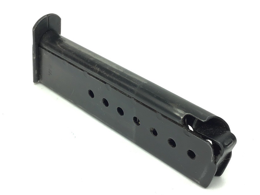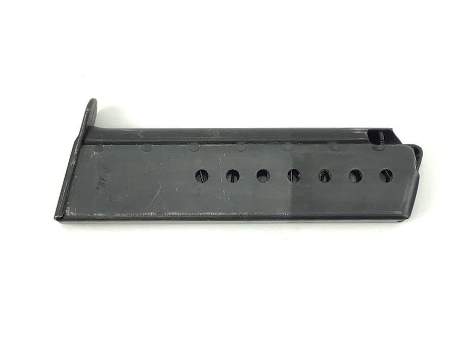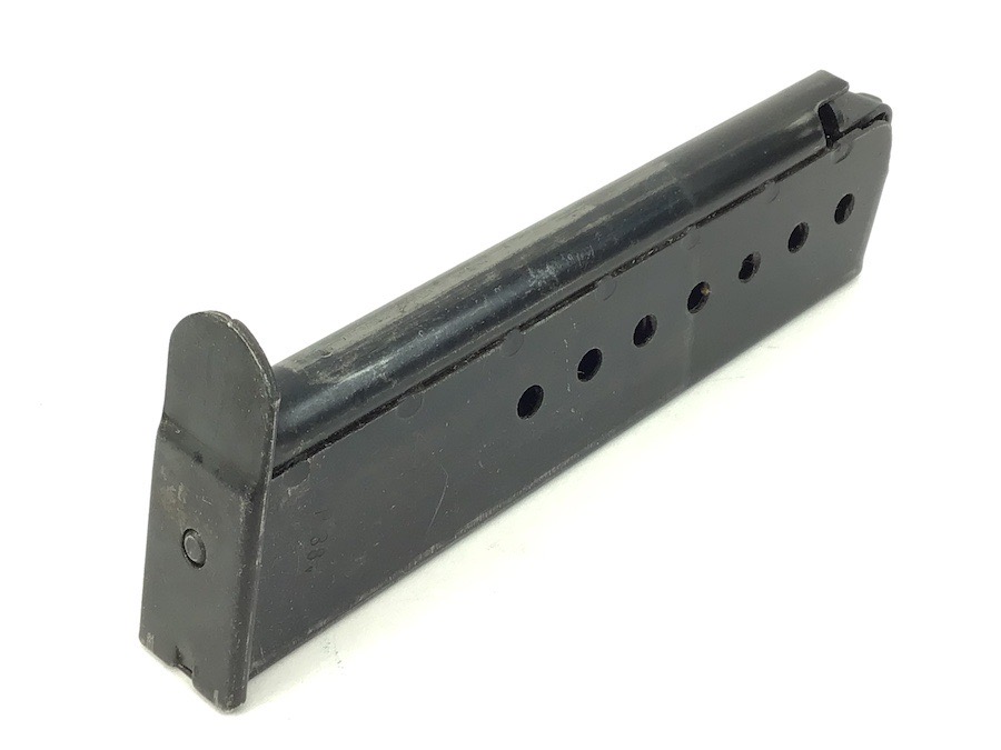 11/23/22 – This is a great, original Mauser P.38 magazine made during WW2. Most likely 1943-44 production. The spine is waffen WaA135 proof stamped. The frame is P.38v. Nice bluing with only minor surface imperfections. Minor scratches and bluing loss on the base. Strong functional spring.