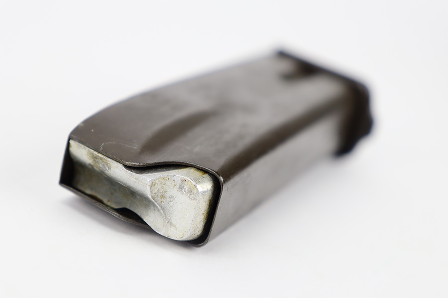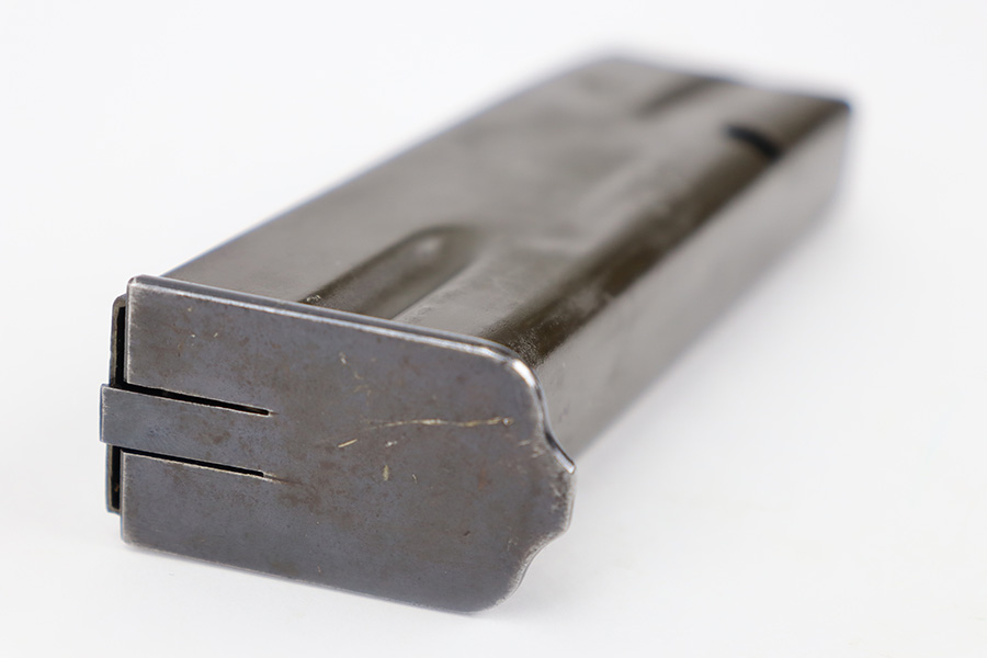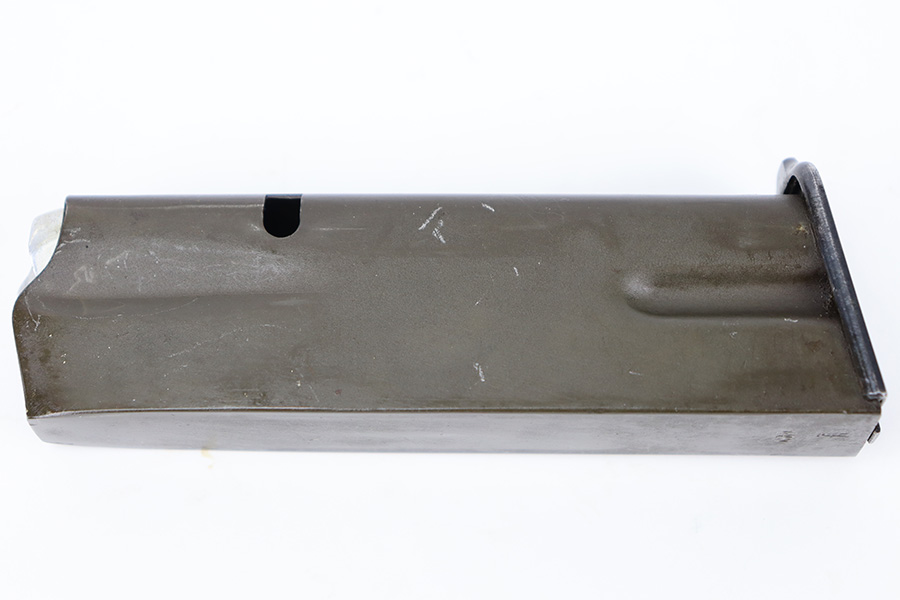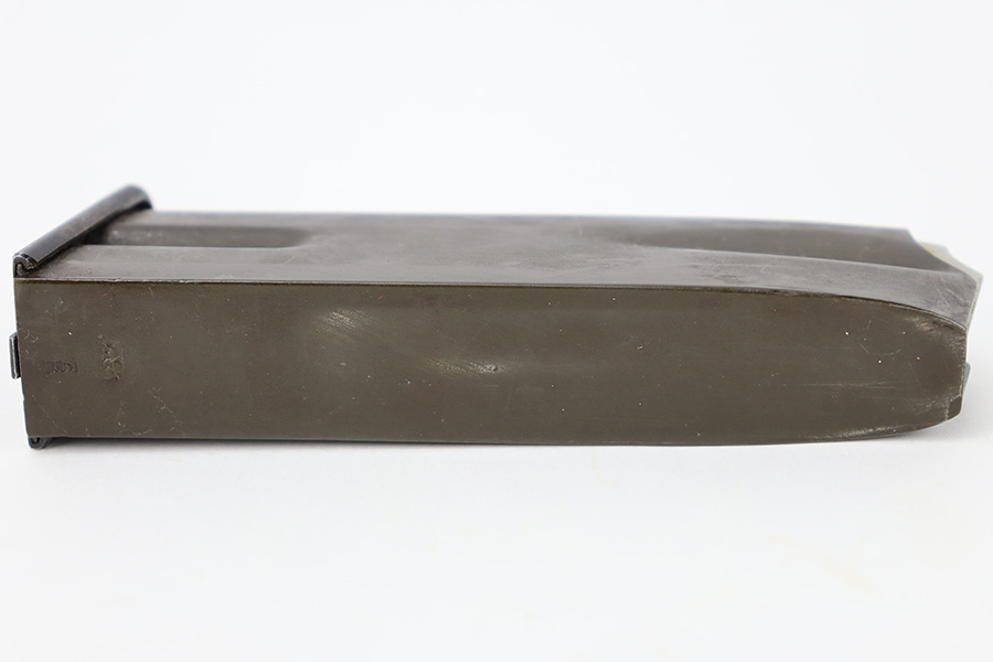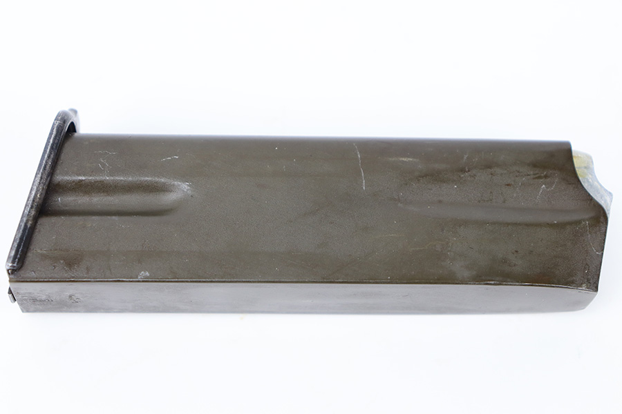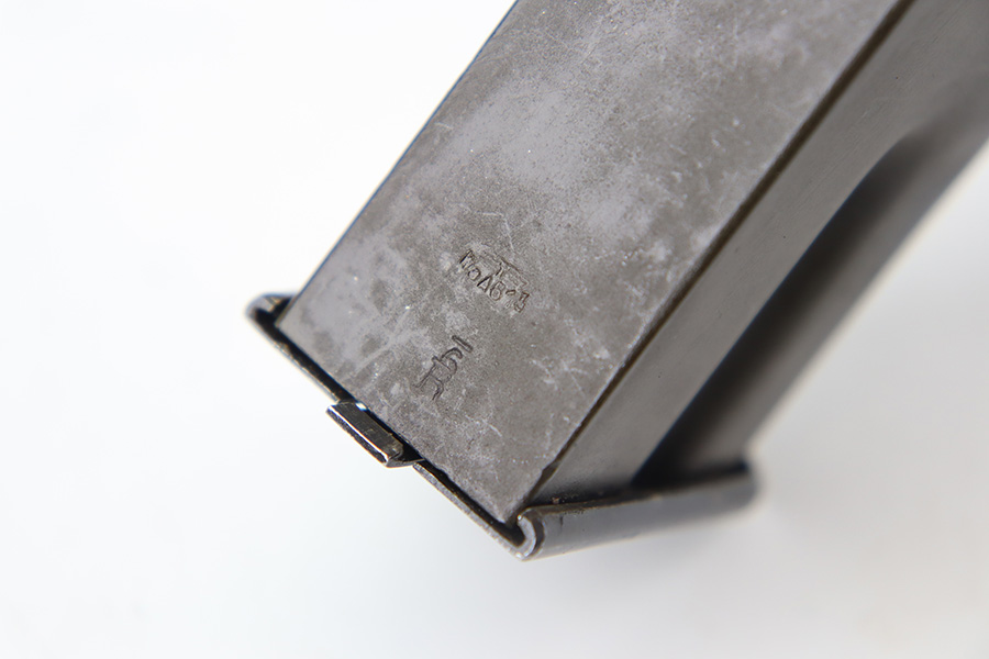 11/30/23 – This is an excellent condition, early Nazi occupation High Power magazine. The magazine has a phosphate tube and blued base. The spine is stamped with a WaA613 military proof stamp. Strong, functional spring.