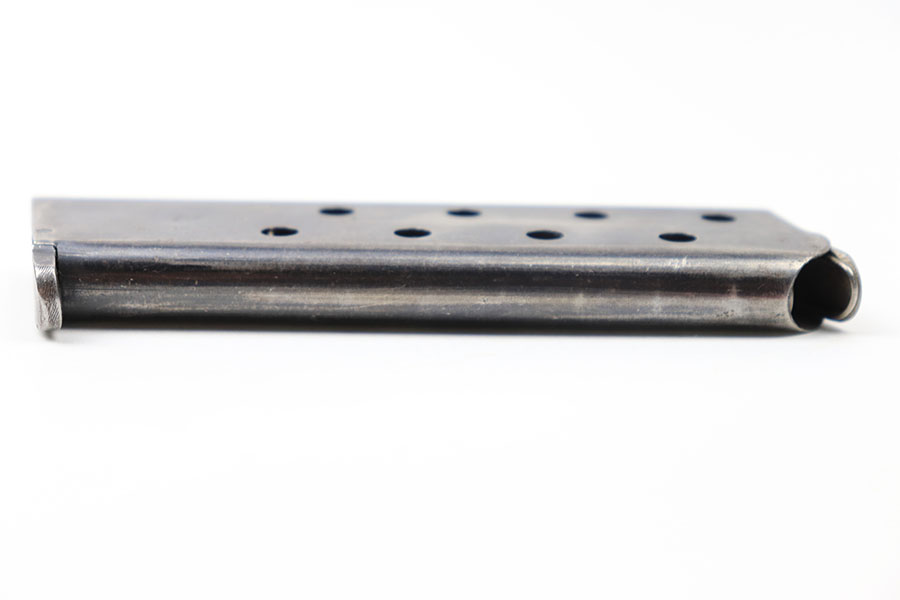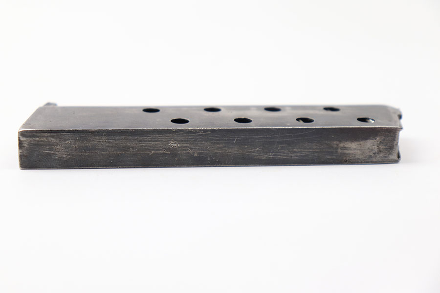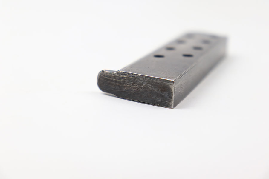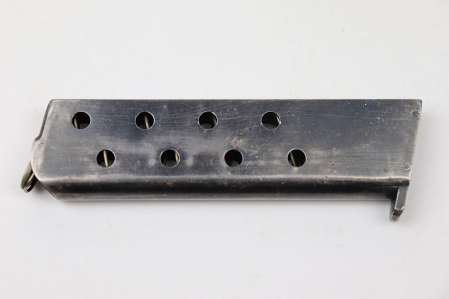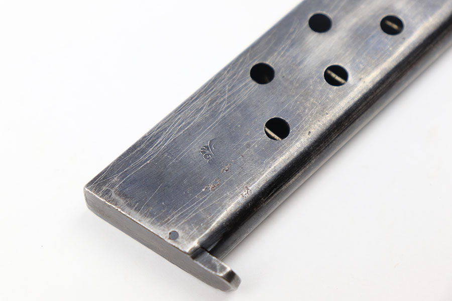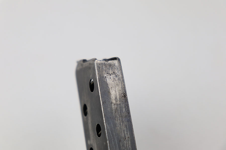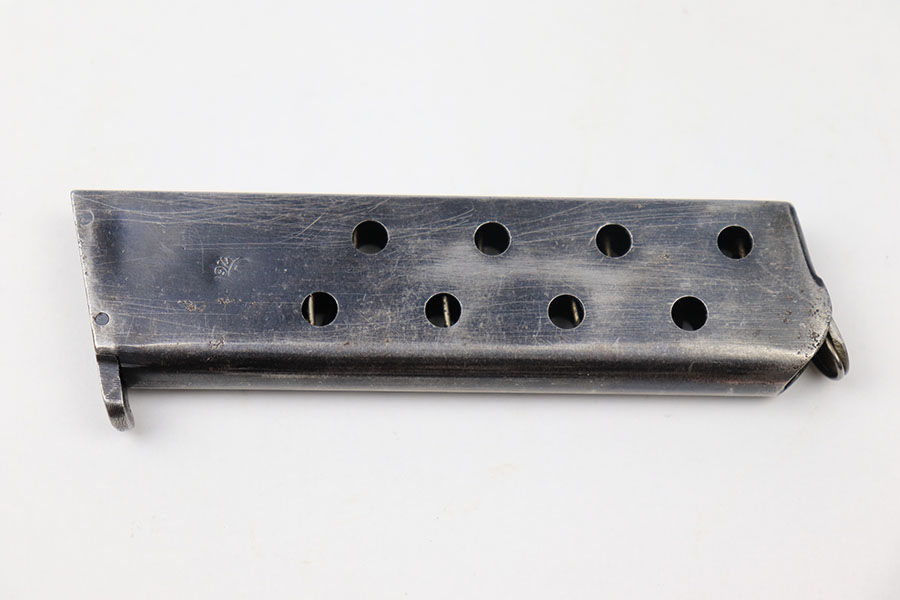 5/26/21 – This is an original, early variation FN model 1922 magazine with a Waffen 103 proof stamp on the spine. The right side of the frame has a FN factory stamp. No other markings. Some light surface wear and finish loss throughout but no major rust or pitting. Spring is fully functional.