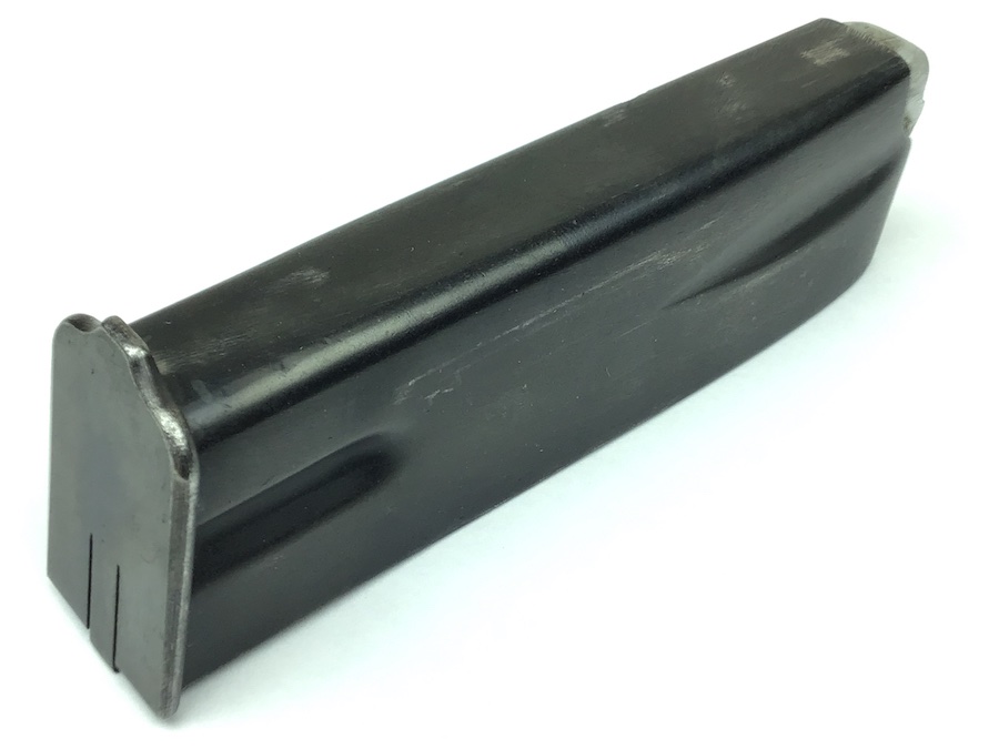 6/2/20 – This is an original WW2 era waffen proofed Browning High Power Magazine. The spine of the magazine has a waffen eagle WaA103 proof stamp. This is an earlier, more desirable proof than the 140 stamp. The magazine has no rust or pitting. The spring is strong and fully functional. Guaranteed original and authentic from WW2.