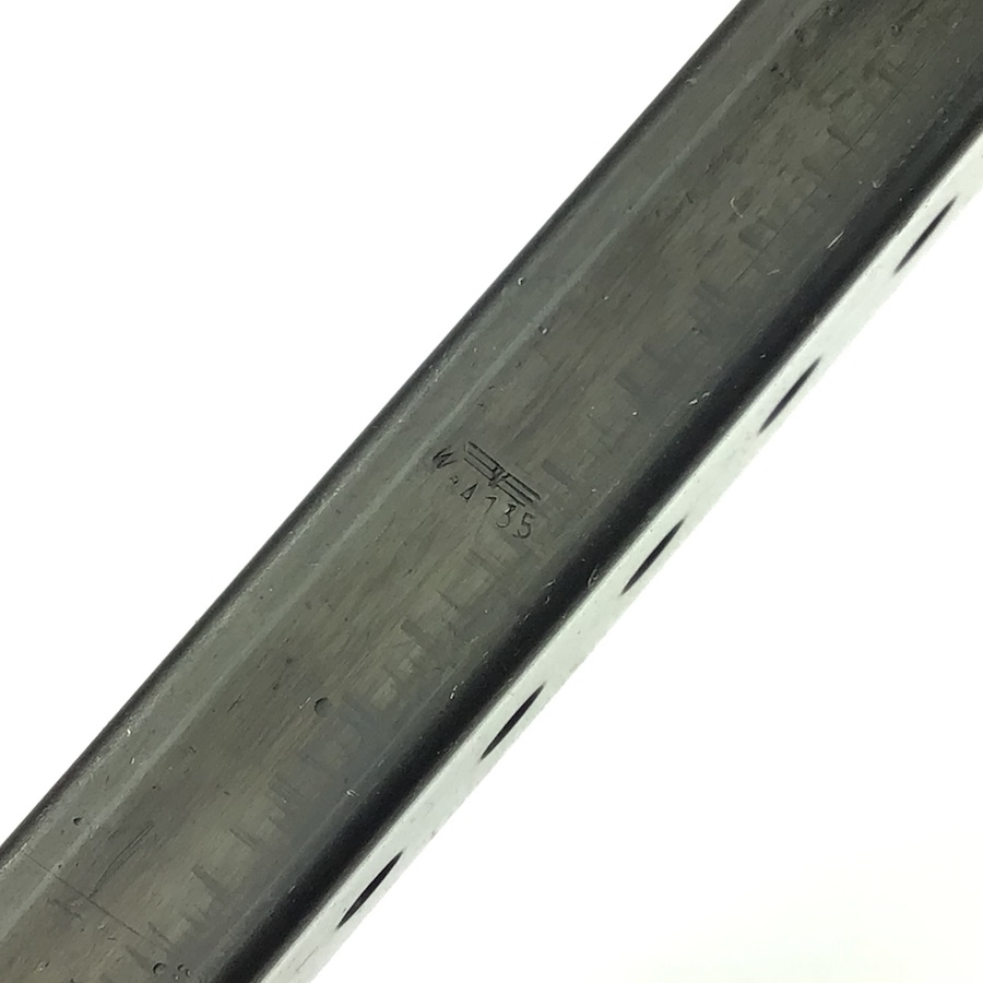 9/20/21 – This is an original WW2 era Mauser P.38 magazine. The spine of the magazine is military proofed with a E/WaA135. One side of the frame is marked P.38v over U. No other markings. The blued exterior is very good with no rust or pitting. Excellent spring as well.