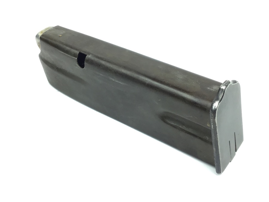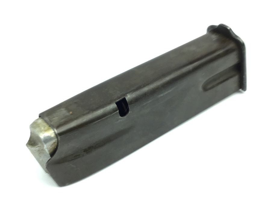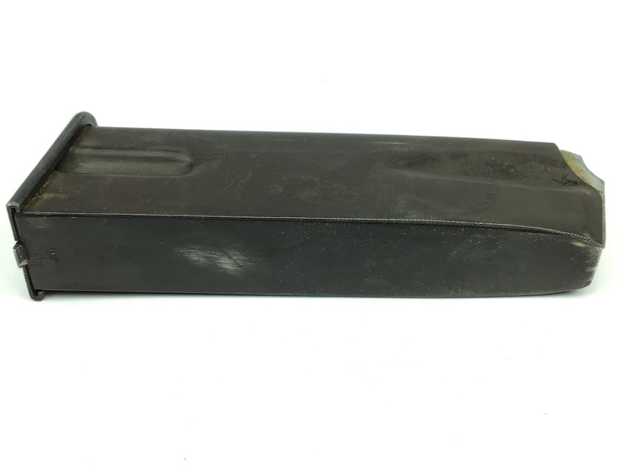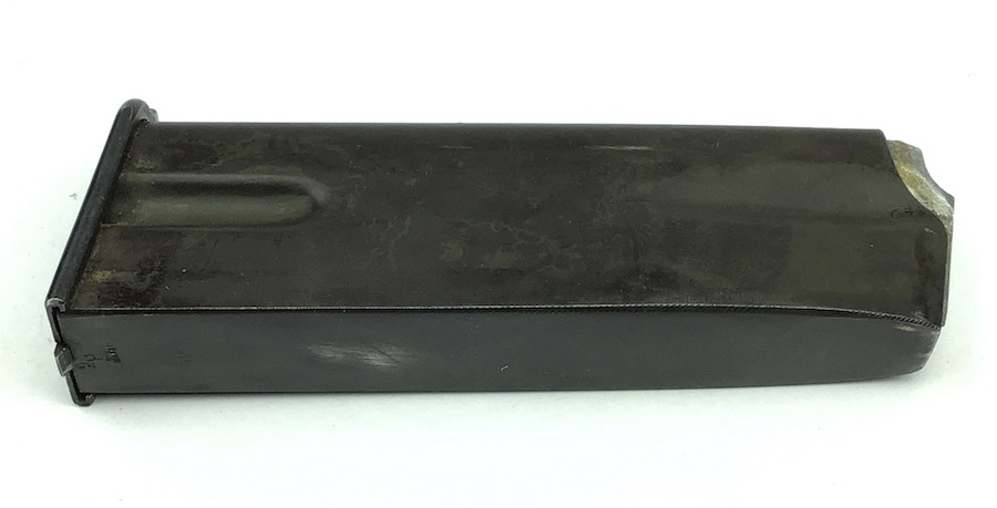 9/3/20 – This is an original WW2 era waffen proofed High Power magazine. The spine of the magazine has a waffen eagle WaA613 proof stamp along with an R and 6 stamped underneath. The magazine has a dull blued finish in great condition. No rust or pitting. The spring is excellent and fully functional.