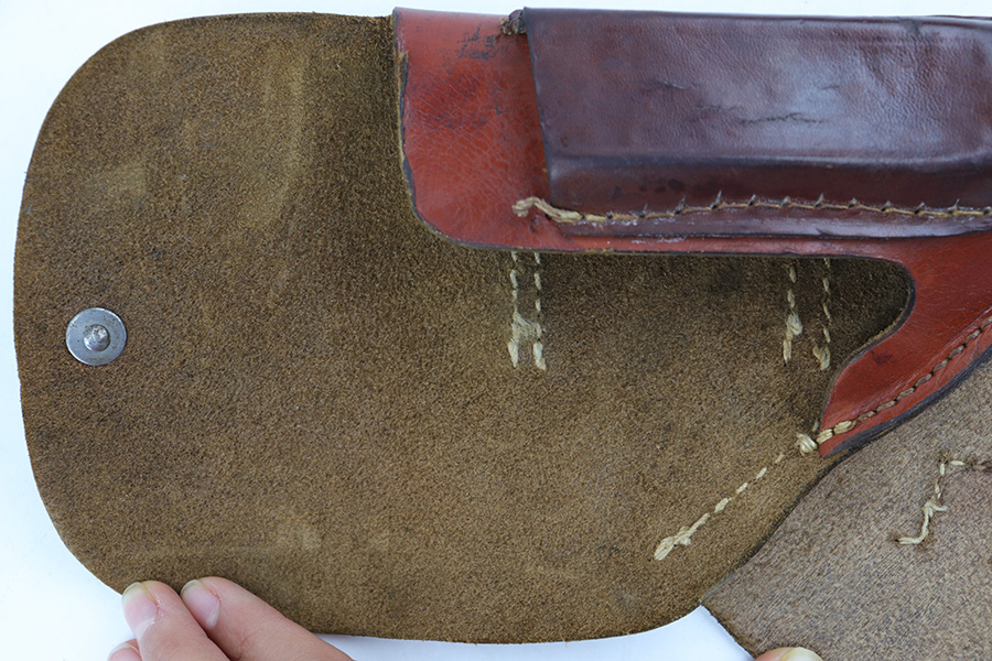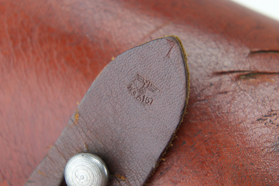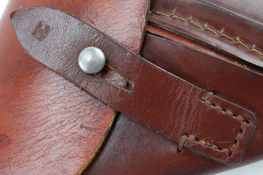 7/5/23 – This is an original 7.65mm holster for a Mauser HSC, Sauer 38h, Walther PP, or similar sized Axis pistol. The holster is in great condition with mild surface wear and typical use / aging wear. No major issues. All original stitching is tight and intact. Waffen military proof stamped on the closure strap with no other markings.
