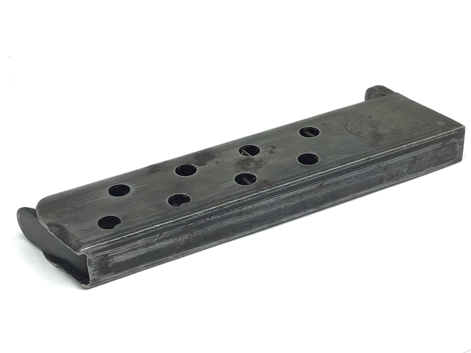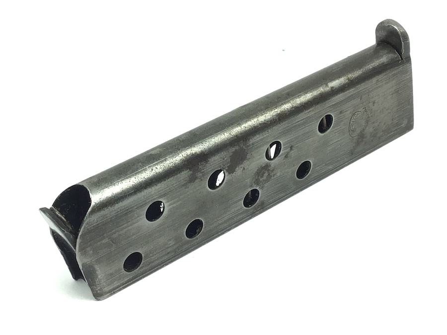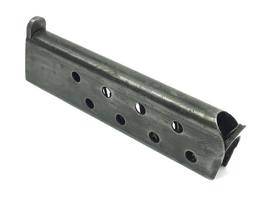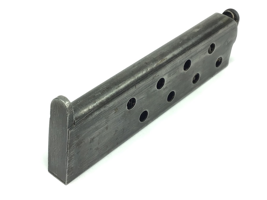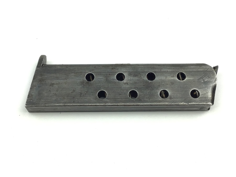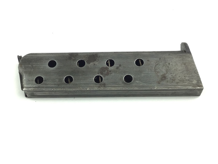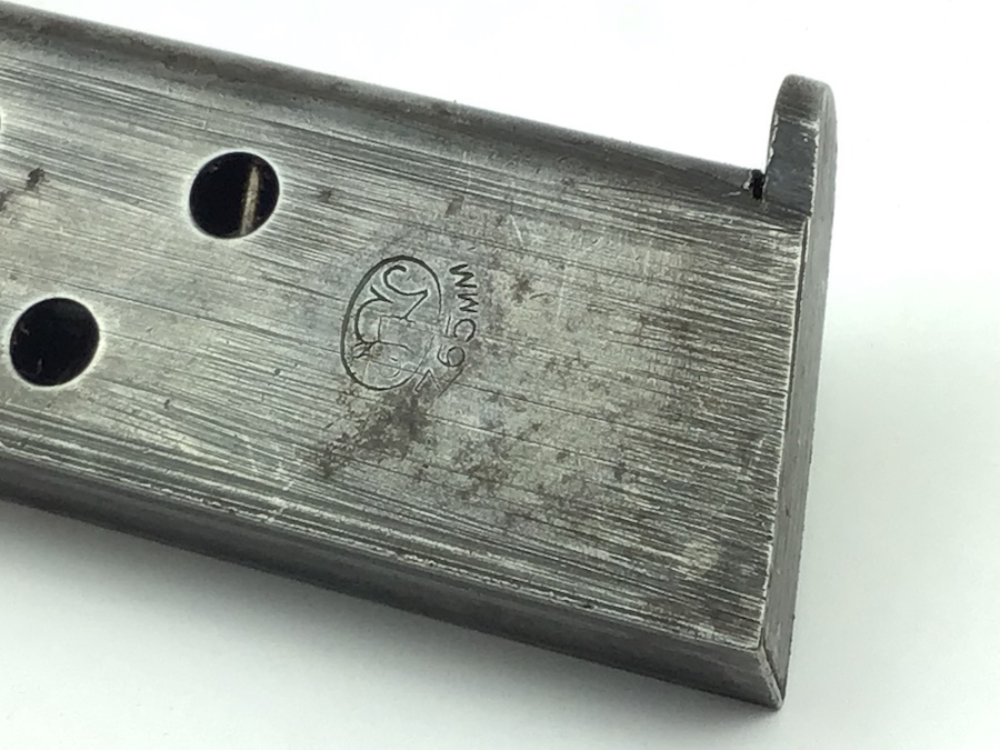 11/11/20 – This is an original WW2 era FN Browning model 1922 magazine. The right side of the magazine is FN stamped with 7.65m/m underneath. The top of the spine is stamped with a waffen military proof WaA140. The magazine is in great shape, with minimal wear and small areas of minor pitting. The spring is strong and fully functional. Guaranteed original.
