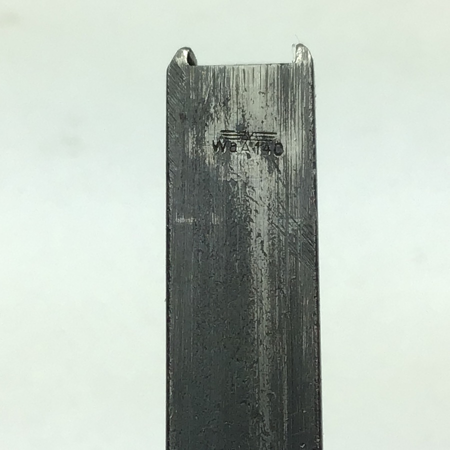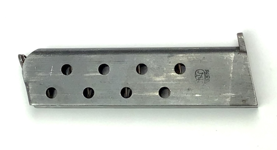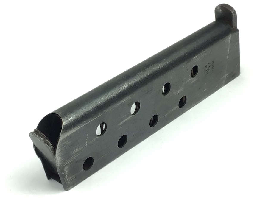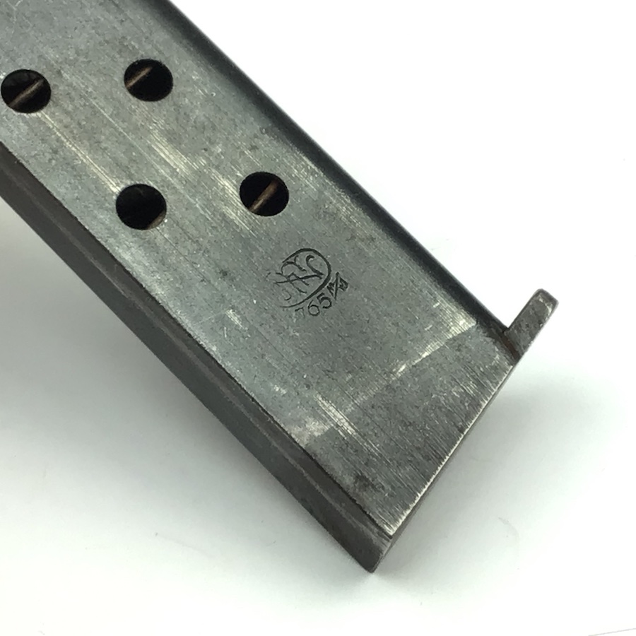 11/30/20 – This is an original WW2 era FN Browning model 1922 magazine. The right side of the magazine is FN stamped with 7.65m/m underneath. The top of the spine is stamped with a waffen military proof WaA140. The magazine is in great shape, with minimal wear. The spring is strong and fully functional.