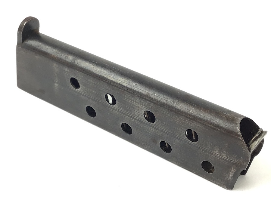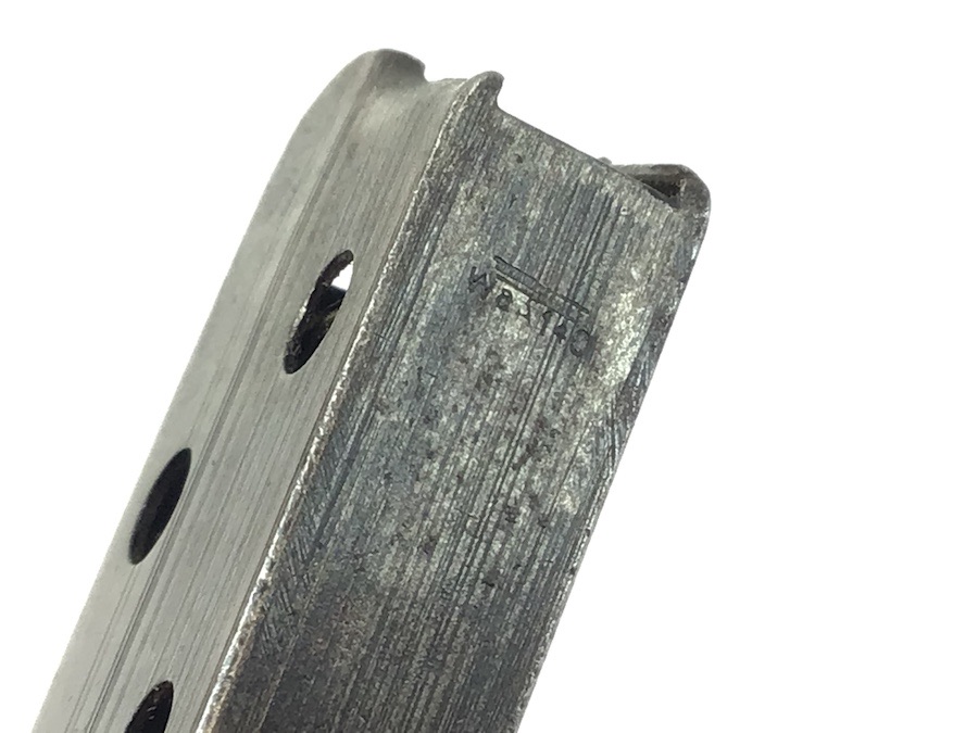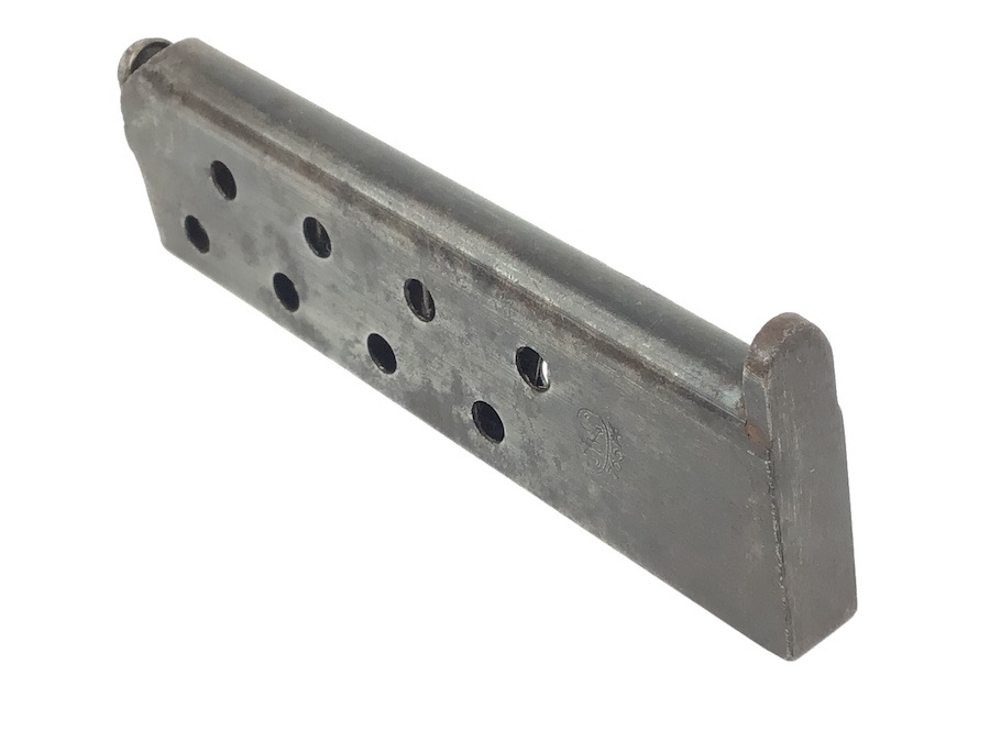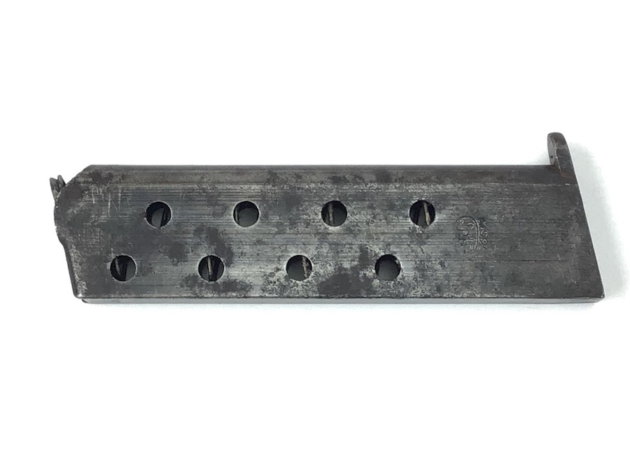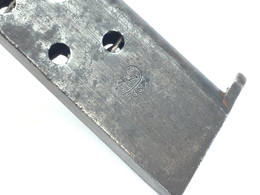 4/1/22 – This is an original WW2 era FN Browning model 1922 magazine. The right side of the magazine is FN stamped with 7.65m/m underneath. The top of the spine is stamped with a waffen military proof WaA140. The magazine is in great shape, with minimal wear. The spring is strong and fully functional.