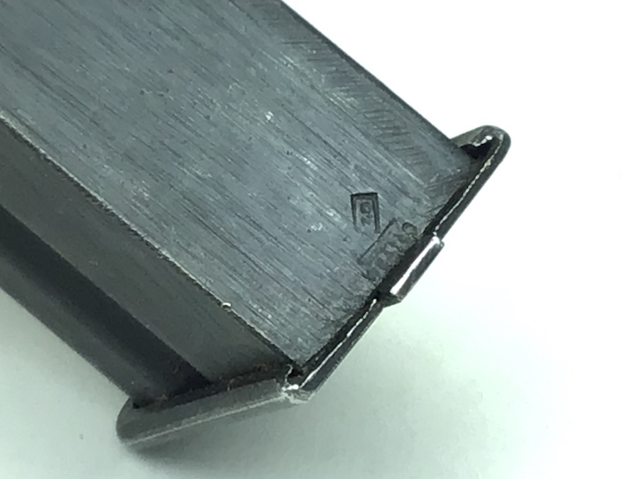 5/26/20 – This is an original WW2 era waffen proofed Browning High Power Magazine. The spine of the magazine has a waffen eagle WaA140 proof stamp. The digits are hard to read, as the stamp is partially faded. The stamp is guaranteed original though. The magazine has no rust or pitting. The spring is strong and fully functional. Guaranteed original and authentic from WW2.