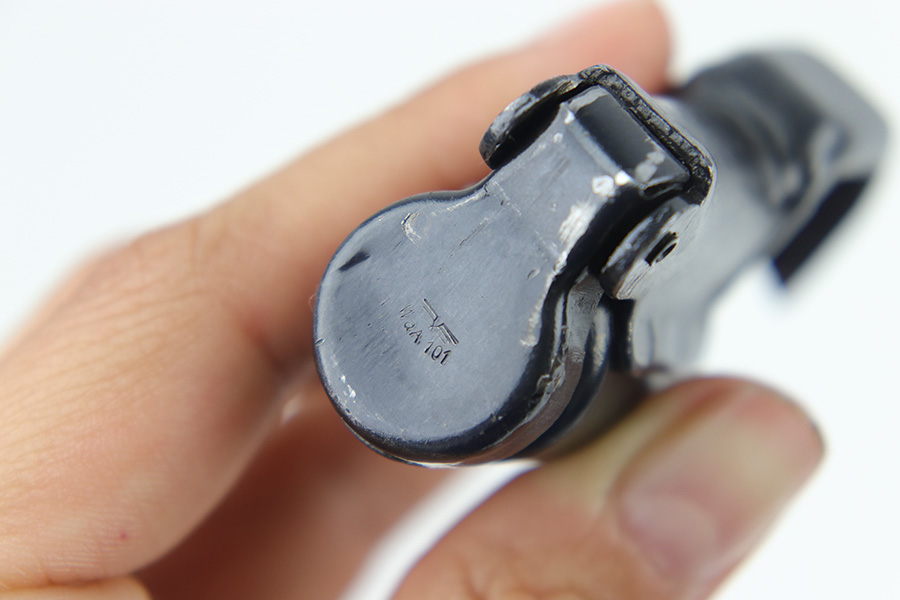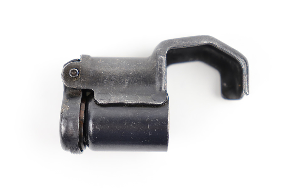 4/25/23 – This is an original K98 muzzle cap from WW2. The end / muzzle cover flips up and down, and is waffen proof stamped on the front as shown. Excellent bluing throughout and minimal finish loss.