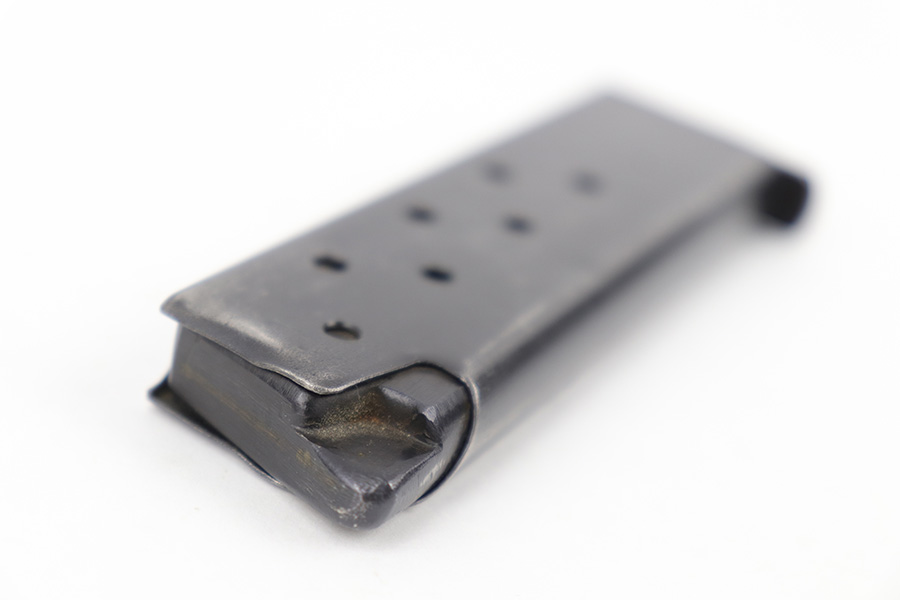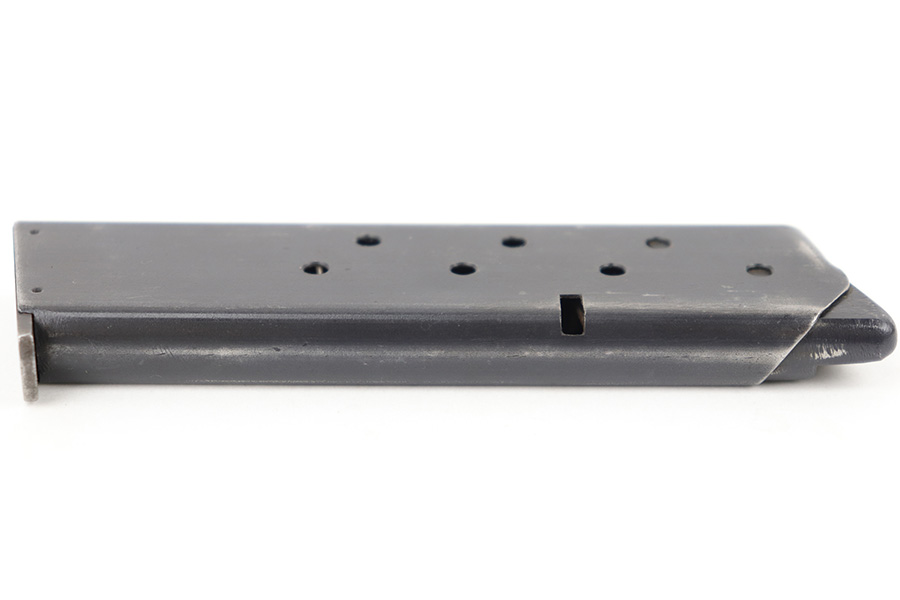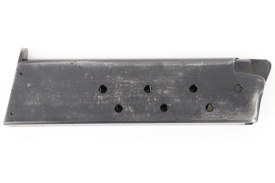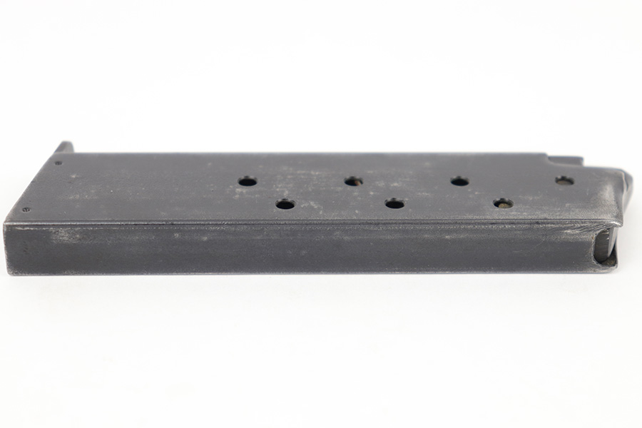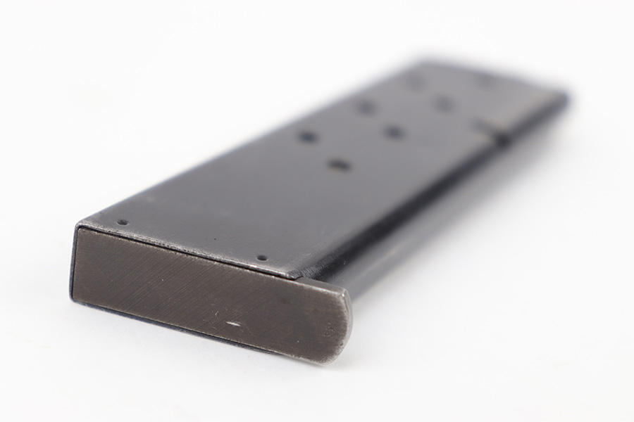 6/6/23 – This is an original WW2 production Radom magazine with a German military waffen proof stamp on the base. The base is waffen eagle/189 proof stamped, with no other markings. The original blued finish is in great shape throughout, with some mild areas of finish loss. The spring is strong and fully functional.