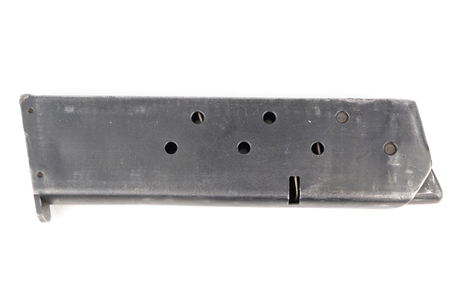 1/3/19 – This is an original Radom P.35 pistol magazine from WW2. The base of the magazine is waffen proof stamped “WaA189”. The magazine is functional and has a strong spring. There is some minor wear as shown in photos, but no major rust or pitting. The right side of the magazine has a weird gash in the metal that doesn’t go through the metal but it’s oddly bent. This doesn’t affect functionality. Guaranteed original.