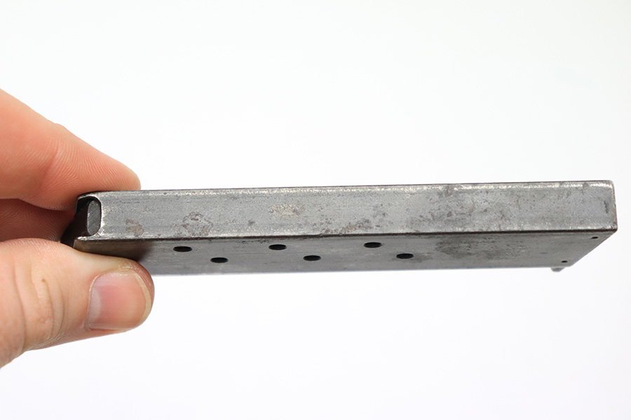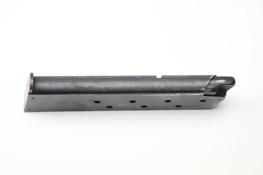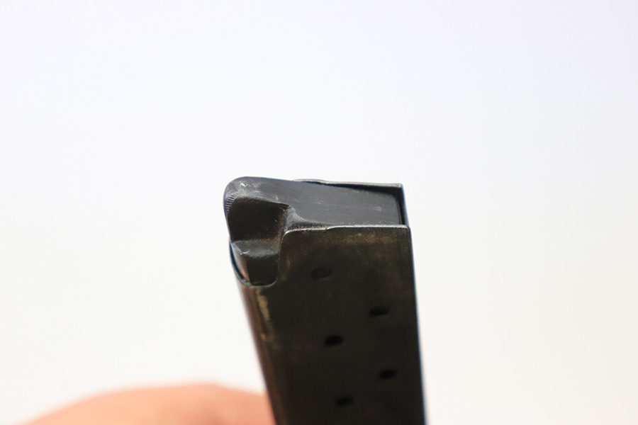 6/7/22 – This is an original WW2 production Radom P.35 magazine. The magazine is in good overall condition with a strong, functional spring. The base has some surface patina but is waffen 189 military proof stamped. No other markings. There is mild patina and aging on the magazine but no significant rust or pitting.