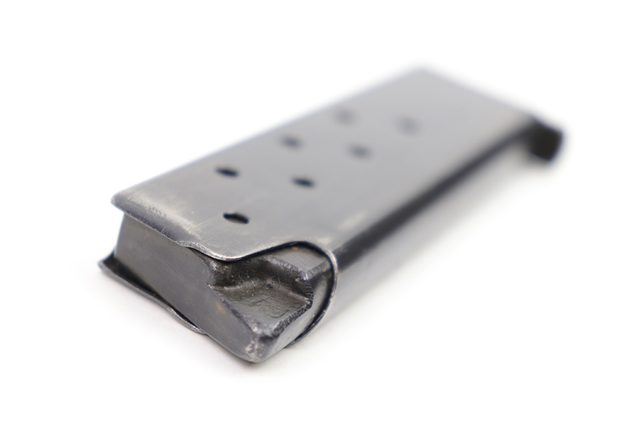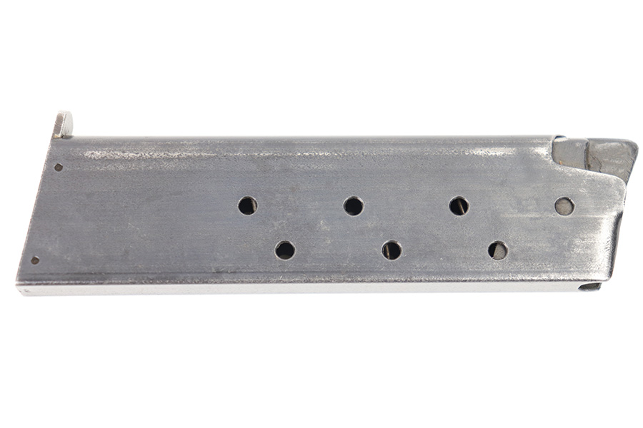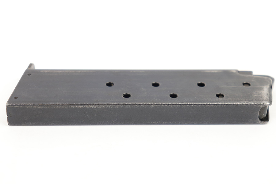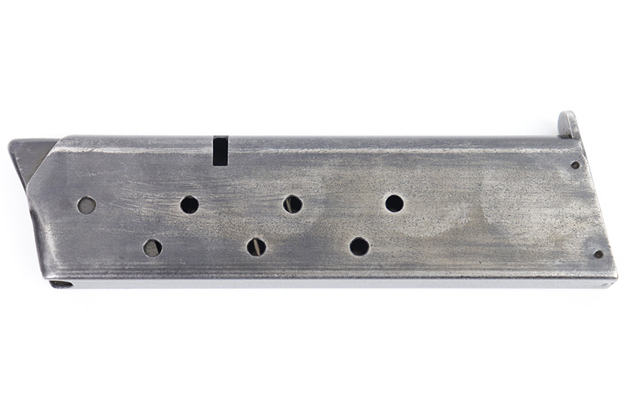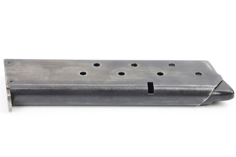 3/3/23 – This is an original WW2 production Radom magazine. The base of the magazine is stamped with a waffen military eagle/189 acceptance proof. The original finish is in great shape throughout the magazine with mild surface wear and general thinning throughout, but no rust or pitting. Fully functional spring.