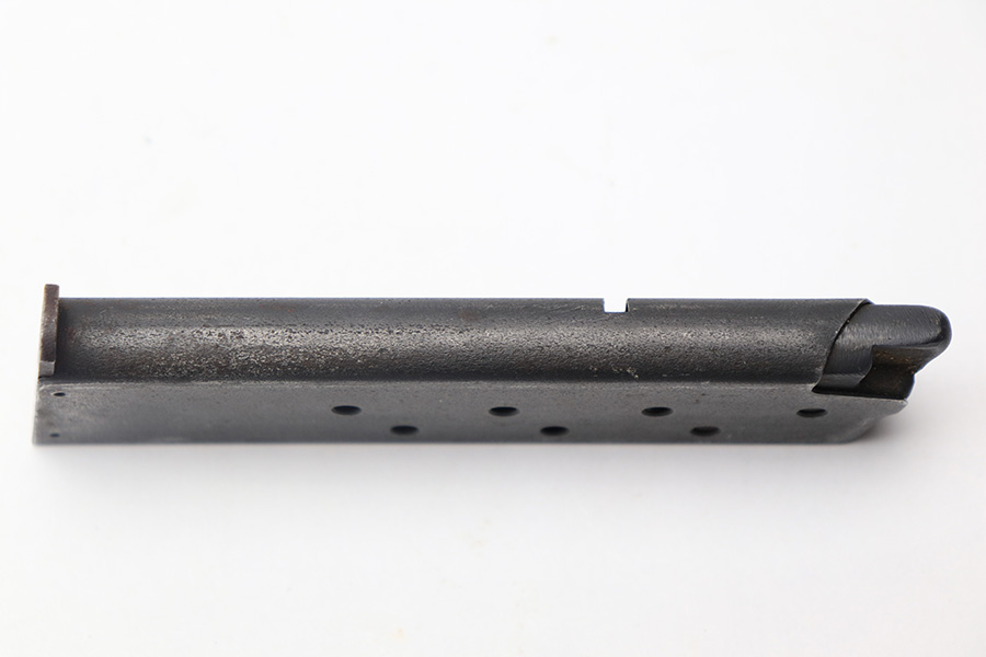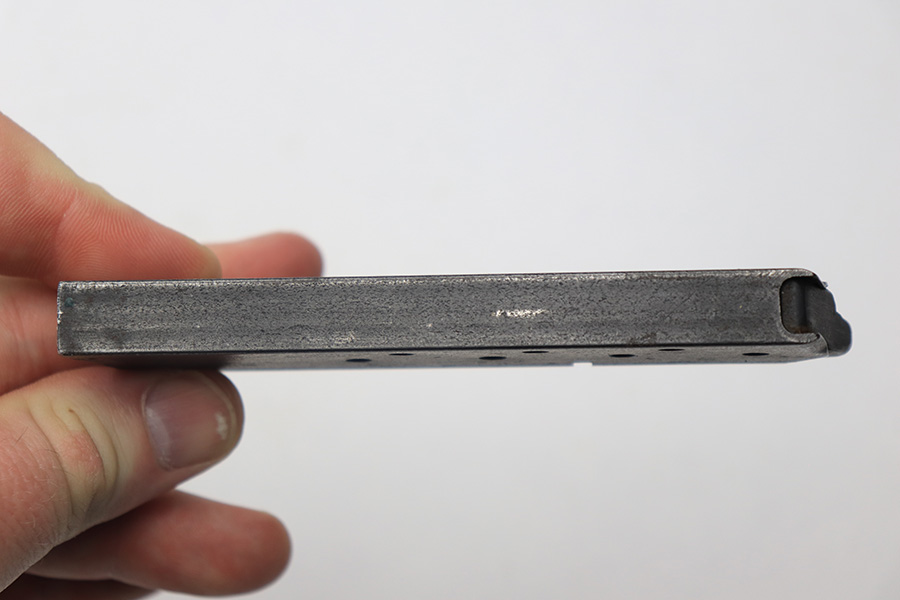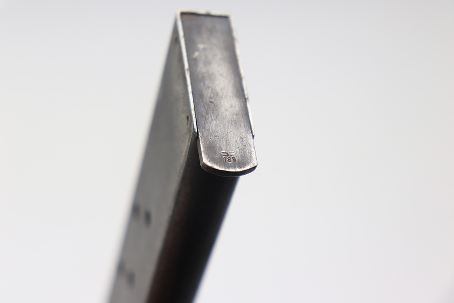 3/31/22 – This is a nice example of a Waffen proofed Radom magazine from WW2. The magazine bottom is marked with an “Eagle 189” waffen proof. The tube has retained a majority of its original finish, but shows minor signs of wear and pinpricking throughout. The spring and follower are strong and functional.
