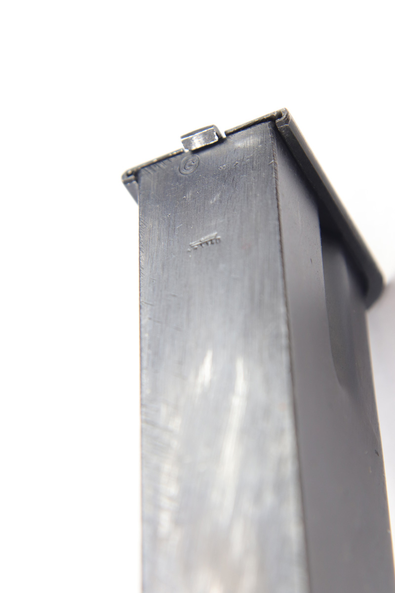 10/17/18 – This is an original, near mint condition waffen proofed Hi Power magazine. The magazine has a beautiful blued finish with a waffen WaA140 military proof stamp. The proof stamp isn’t very crisp, but it’s definitely original and correct. Guaranteed original and fully functional.