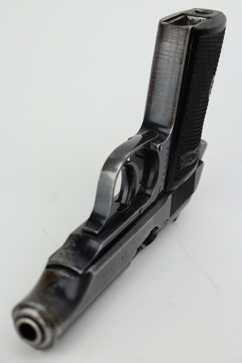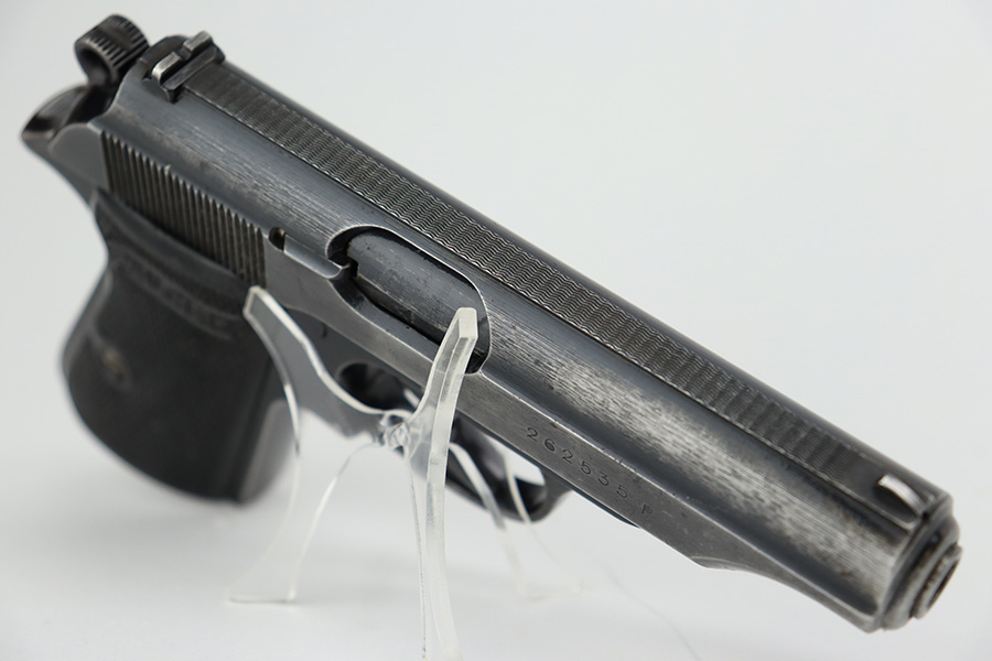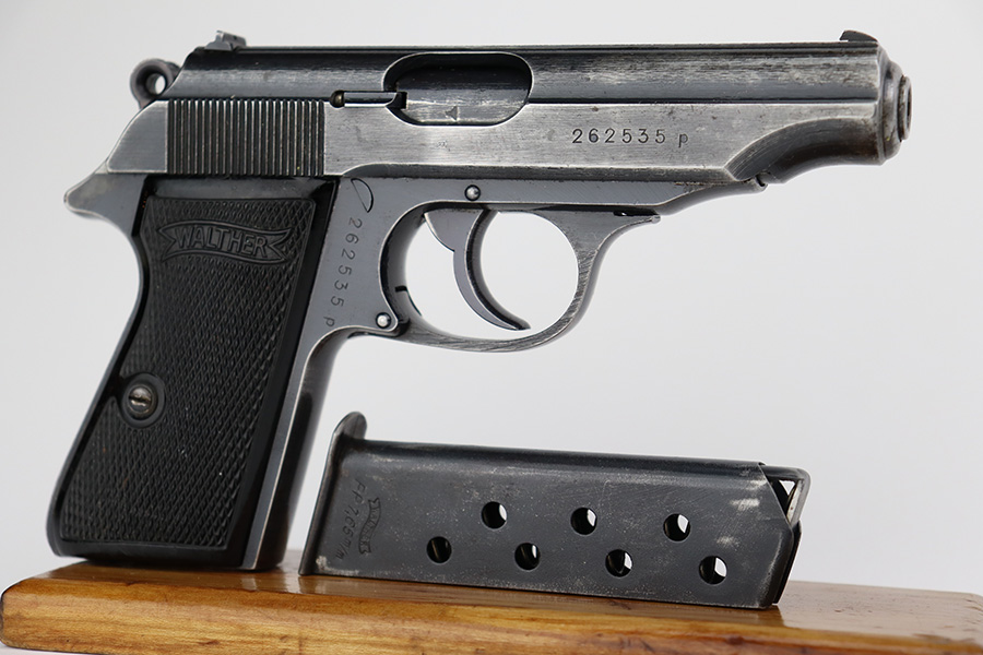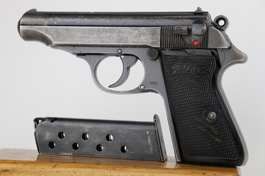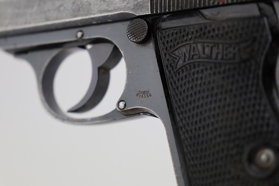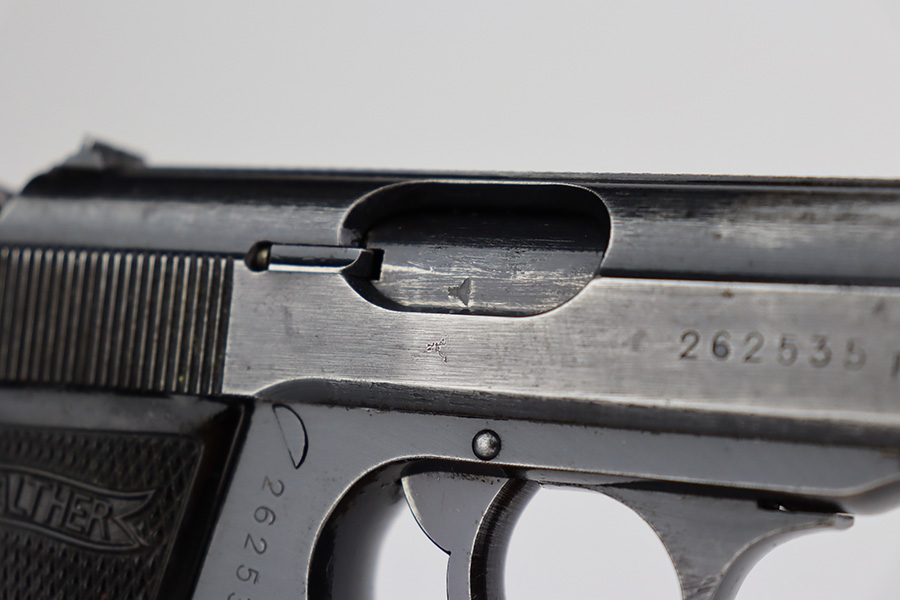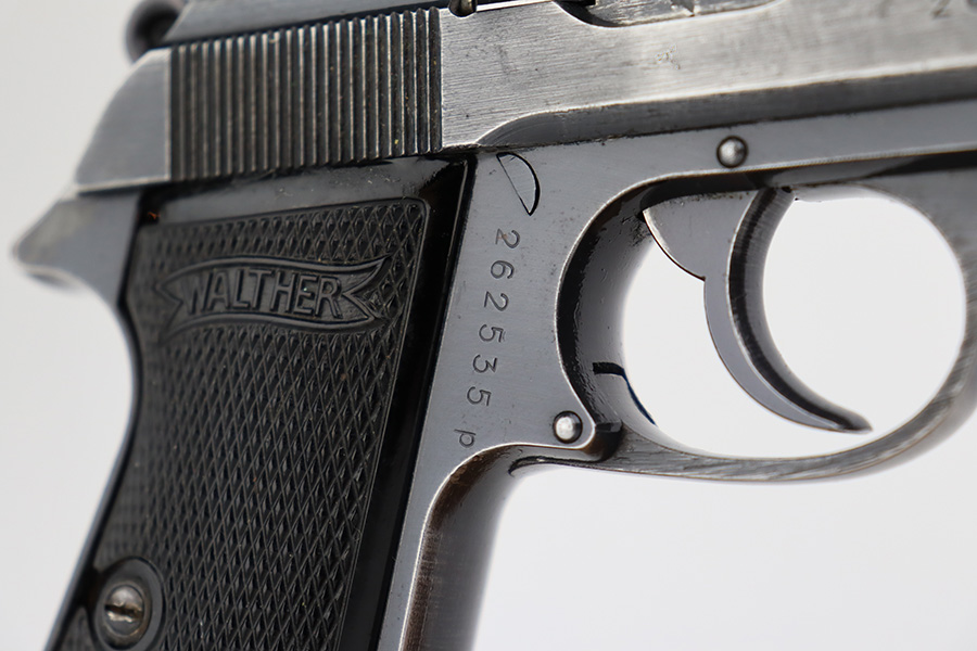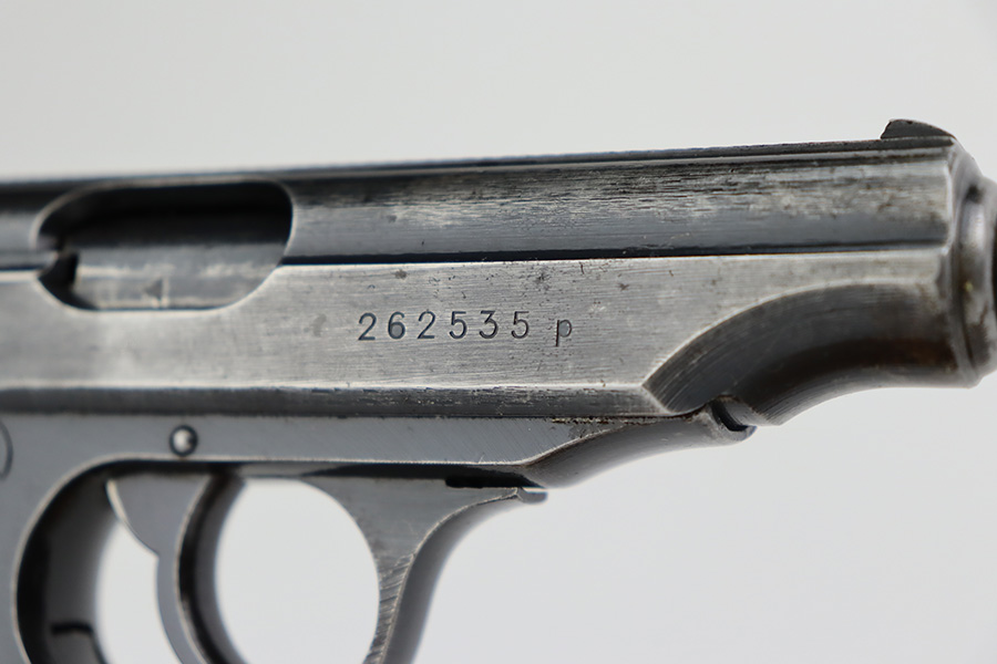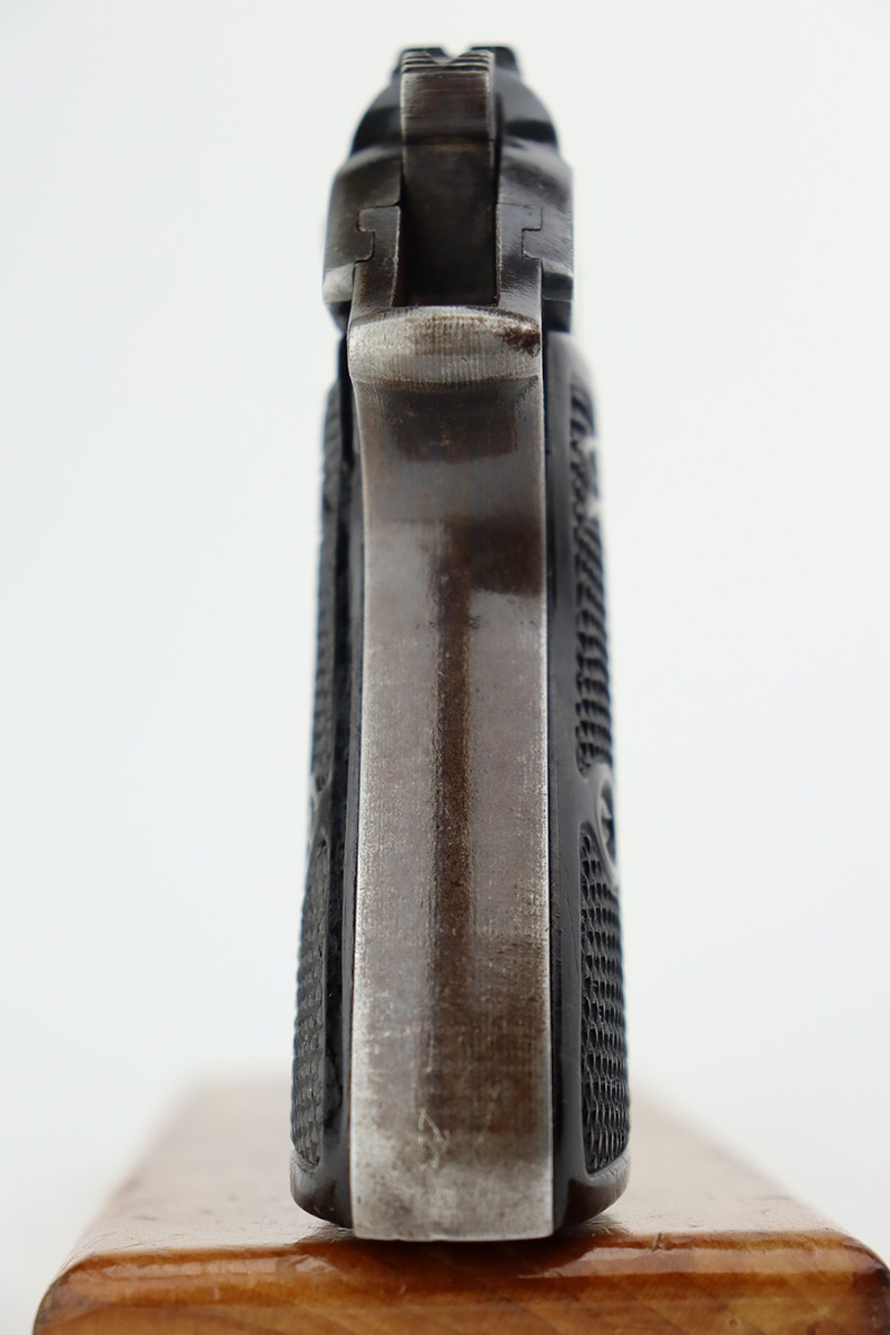 8/15/23 – This is a nice example of a Walther PP issued to the Nazi military in 1942. All matching with the proper “Waffen 359” military acceptance proofs on the left side of the slide and frame. It has retained roughly half of its original wartime finish with obvious spotty wear throughout. Fitted with nice period-correct black bakelite grips – a couple of minor blemishes on the left side. Comes with one proper wartime magazine. Mint bore.