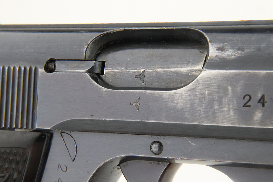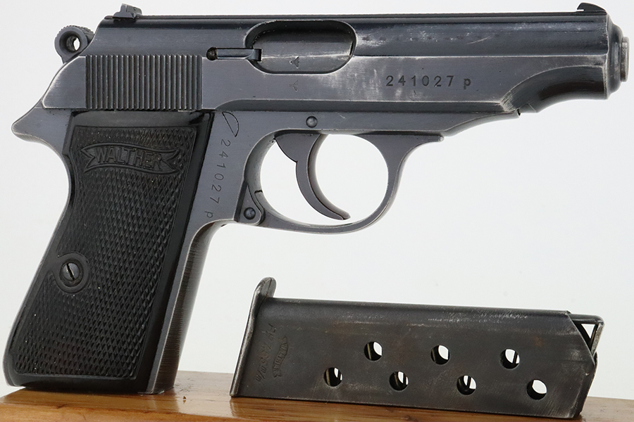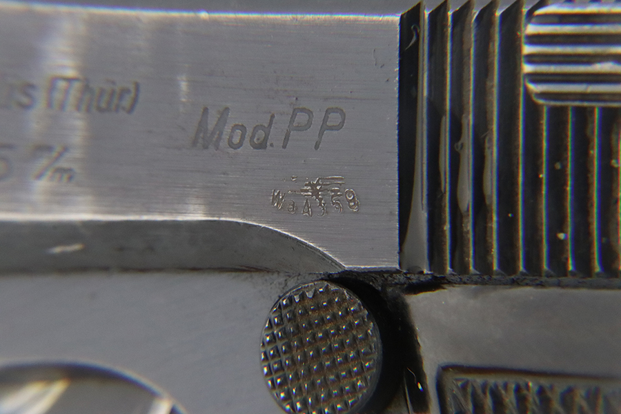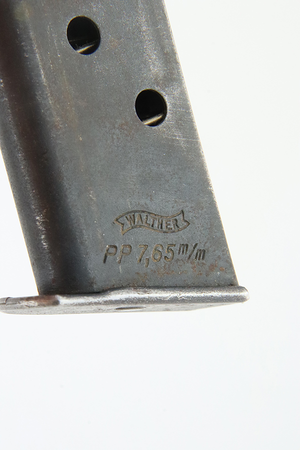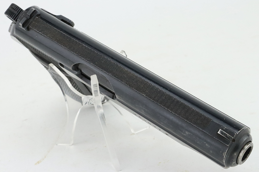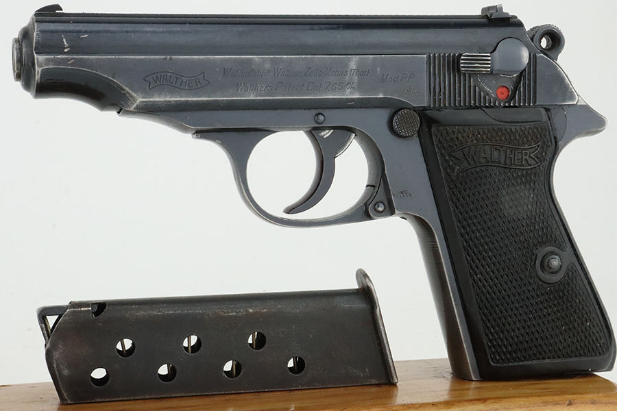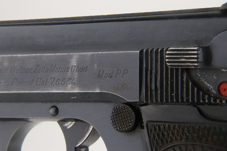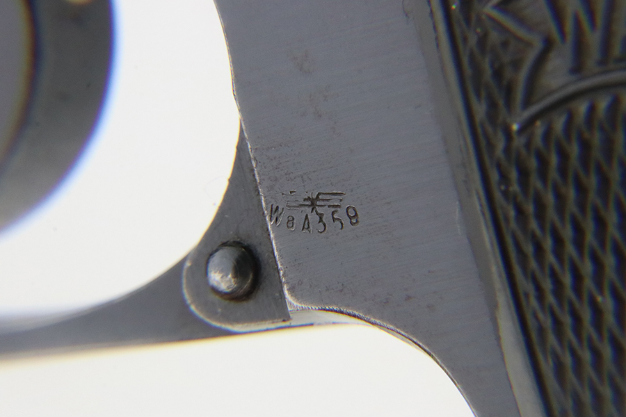 3/7/24 – This is a nice example of a Walther PP issued to the Nazi military in 1941. All matching with the proper “Waffen 359” military acceptance proofs on the slide and frame. It has retained roughly 85% of its original finish with thinning on the grip straps and light spotty wear along both sides of the slide. Fitted with period-correct black bakelite grips and comes with a proper wartime magazine. Mint bore.