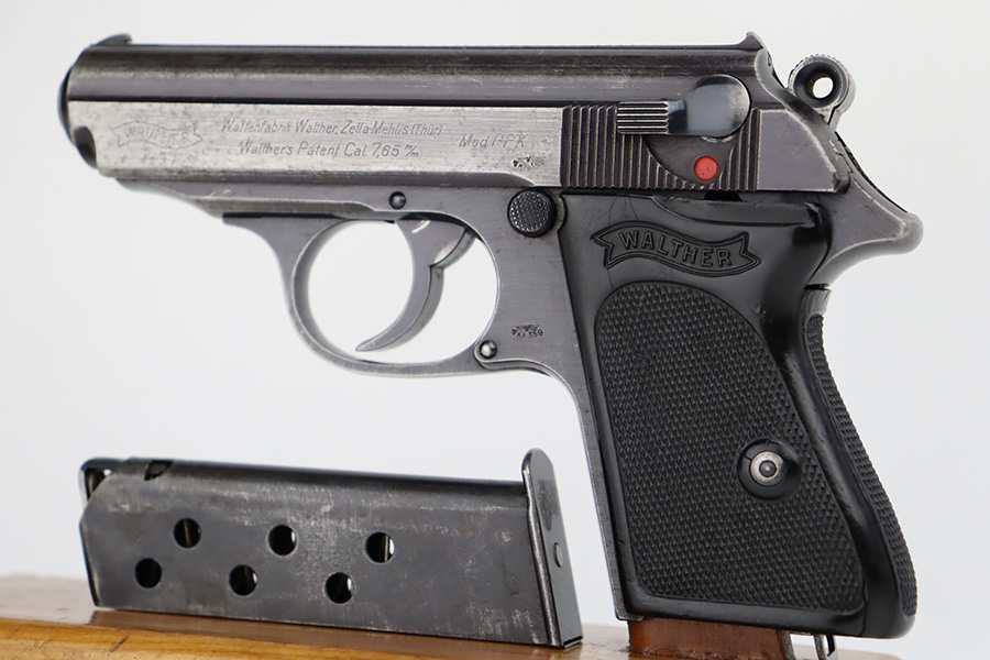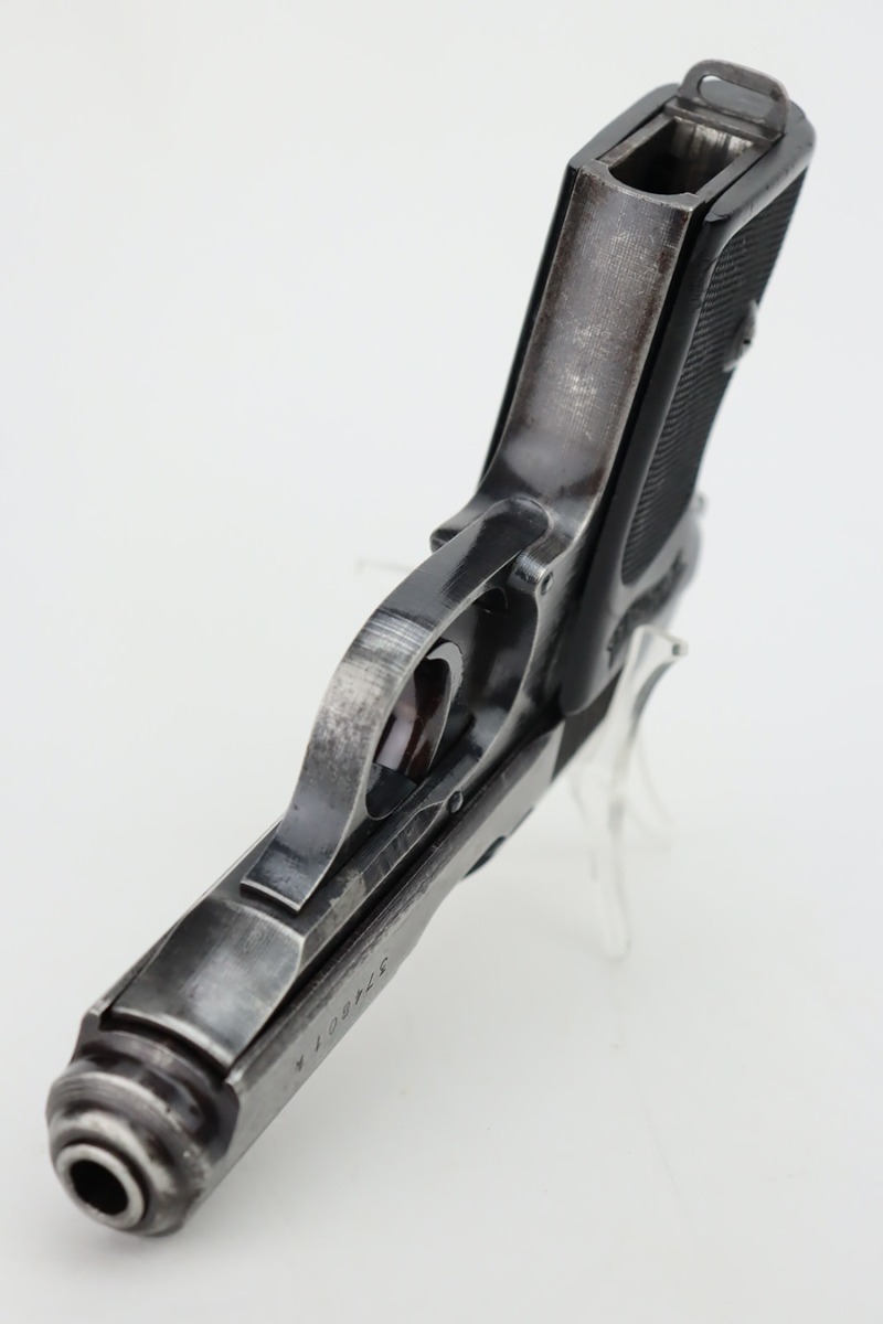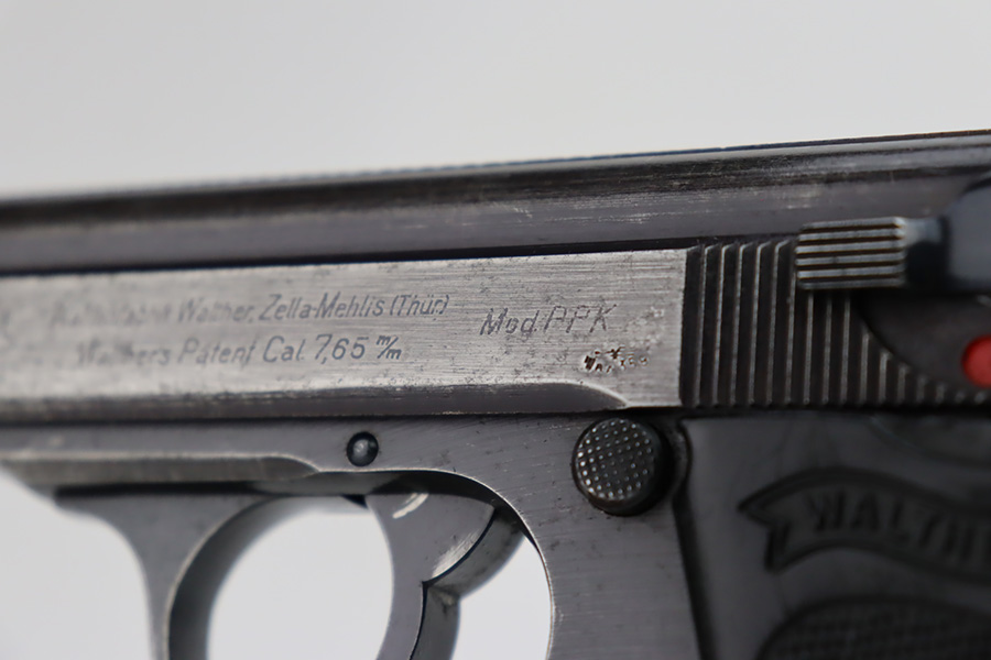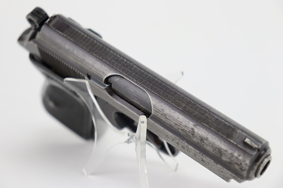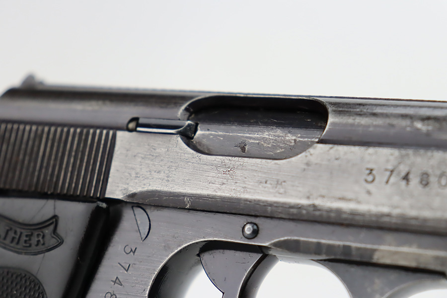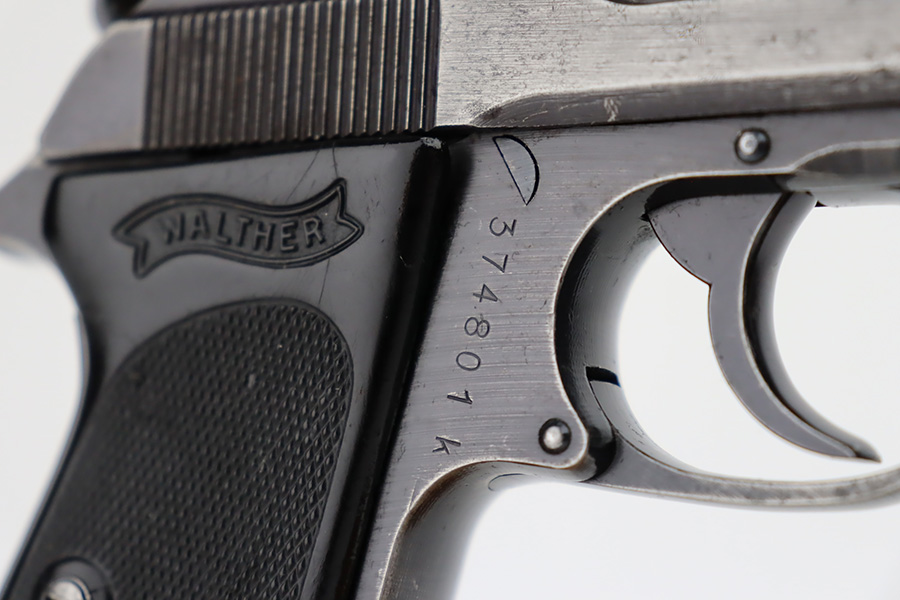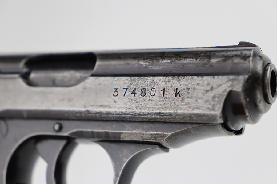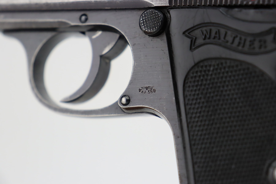 10/4/23 – This is a nice Walther PPK issued to the Nazi military in 1942. All matching with the proper “Waffen 359” military proofs on the slide and frame. It has retained roughly half of its original wartime finish with obvious wear throughout, most noticeable on the slide. Light spotty oxidation throughout. Fitted with a black bakelite grip – crack in the spine. Comes with one wartime magazine. Minty bore.