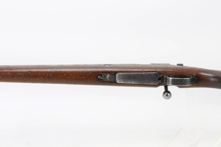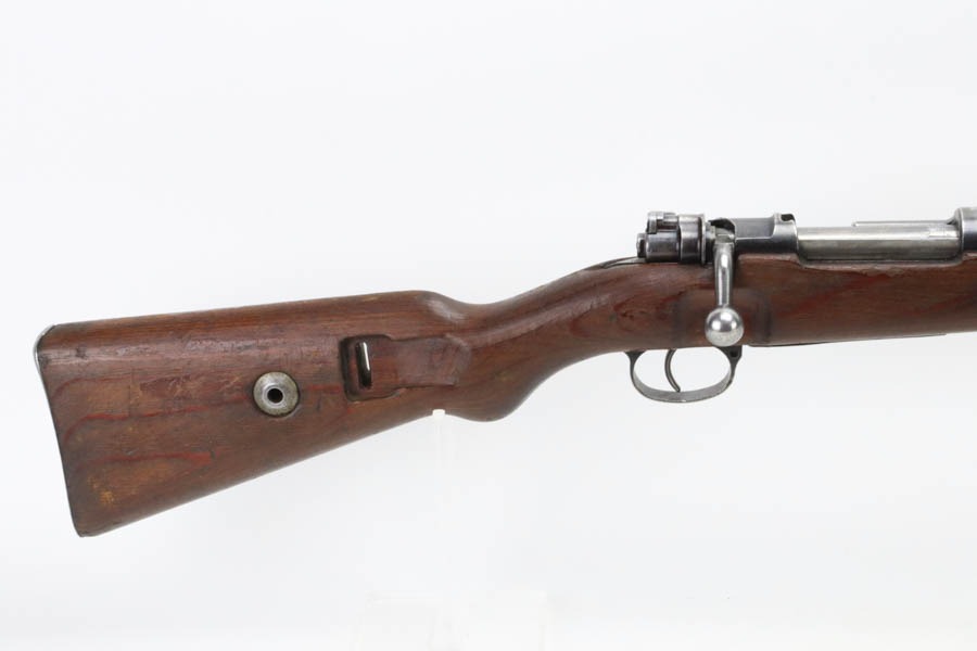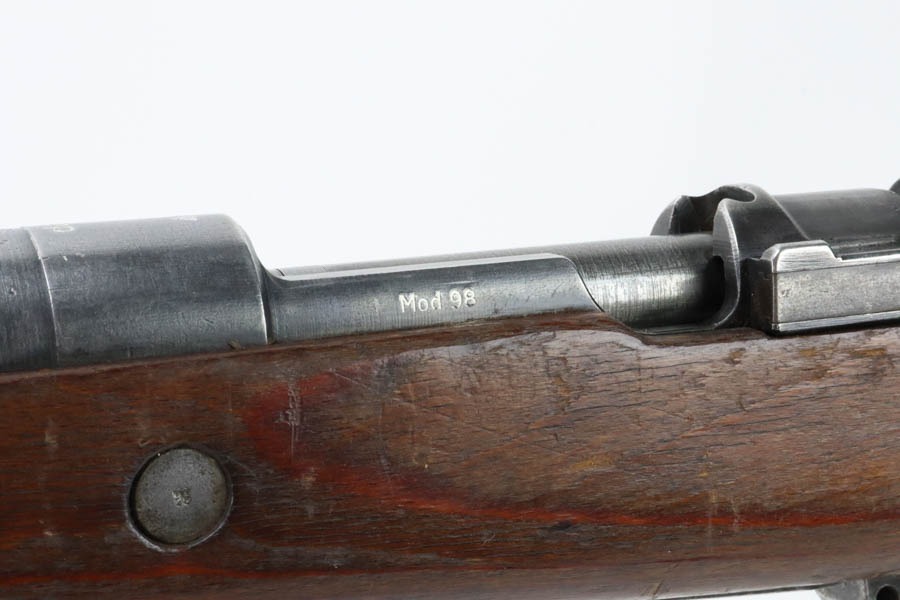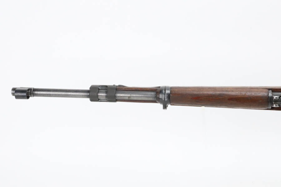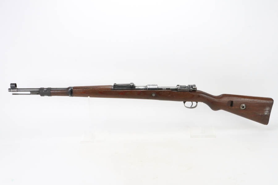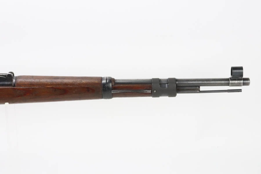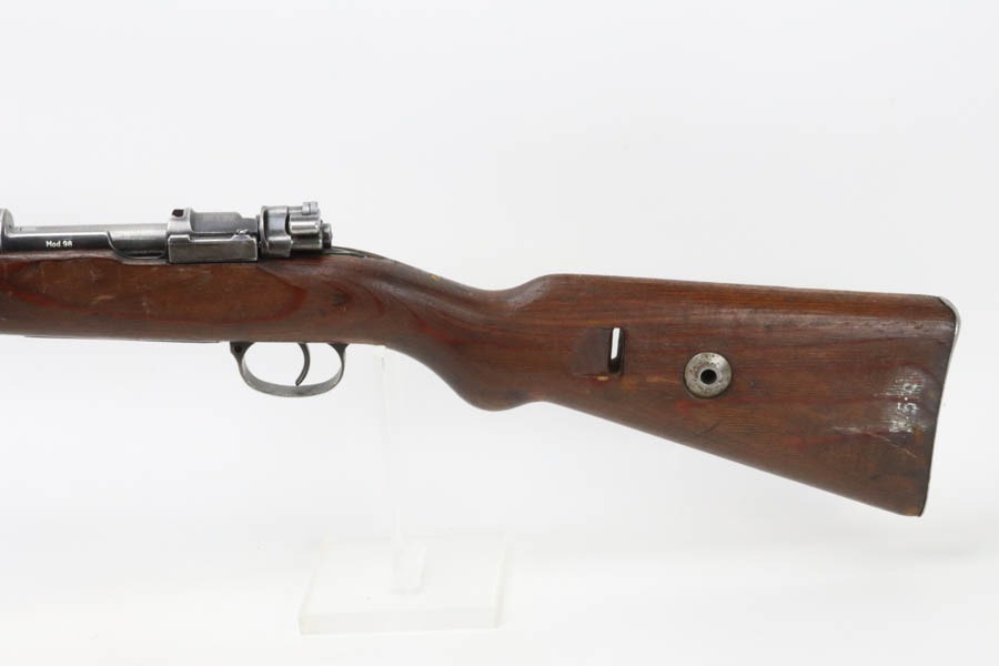 11/4/24 – For sale is a K98k Mauser made by Waffenfabrik Brunn (dou) of Czechoslovakia in 1944. The rifle is in good condition overall with some signs of being reworked. The metal retains a dulled and worn finish that is worn down to bare metal. The stock is in good condition overall without any cracks or breaks. The gun was likely captured by Yugoslavia and reworked as it has a dark finish on the laminate stock with the Eagle stamps peened out. There is also a rack number of some kind stamped at on the left side of the stock. The front barrel band is parkerized. The bore is fairly dark with about a 2″ counterbore at the muzzle.
