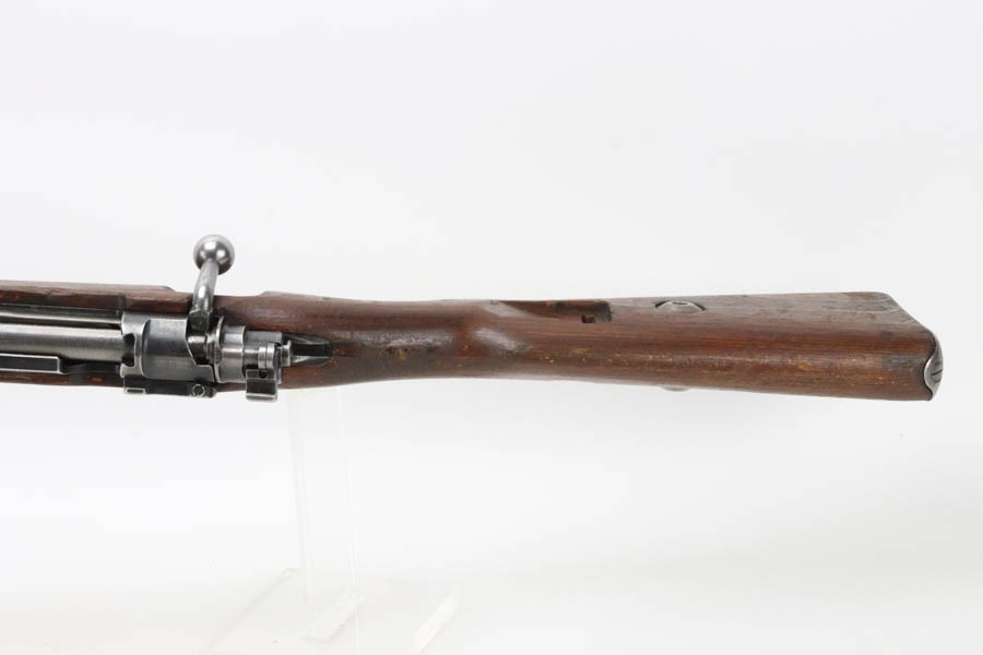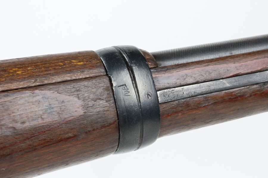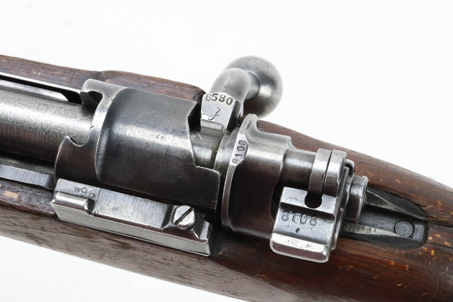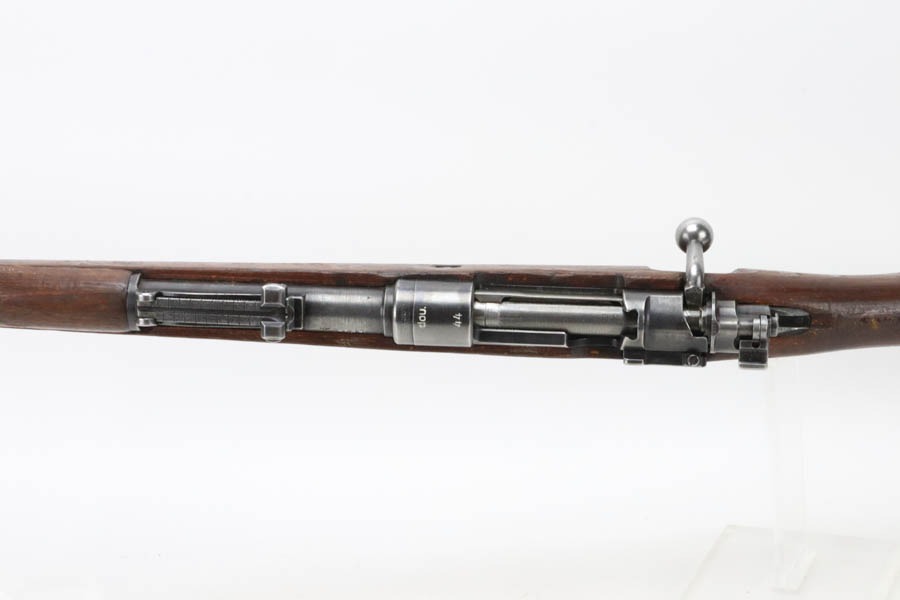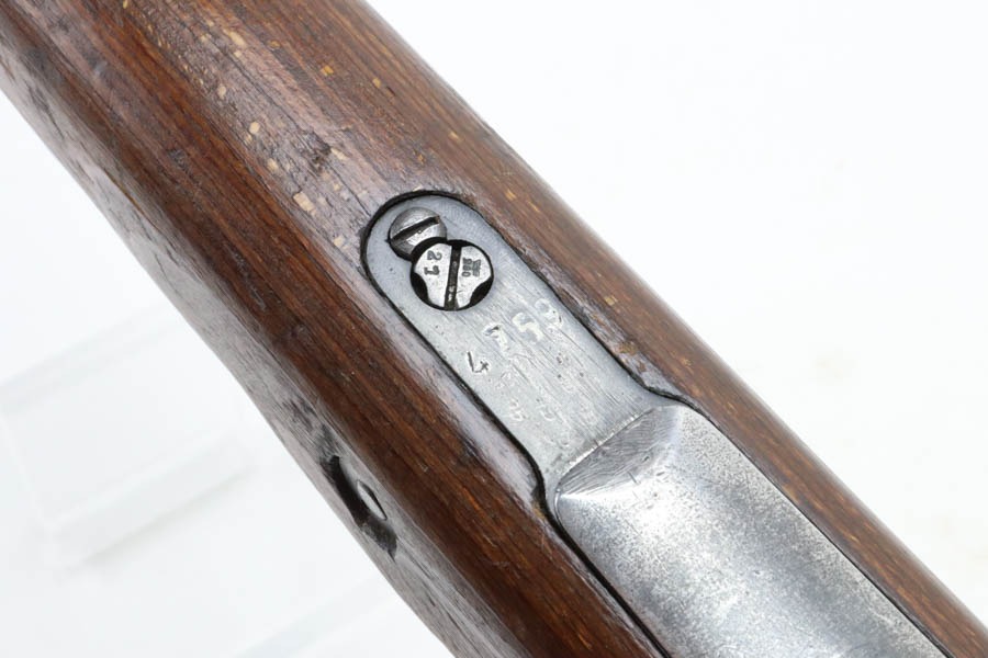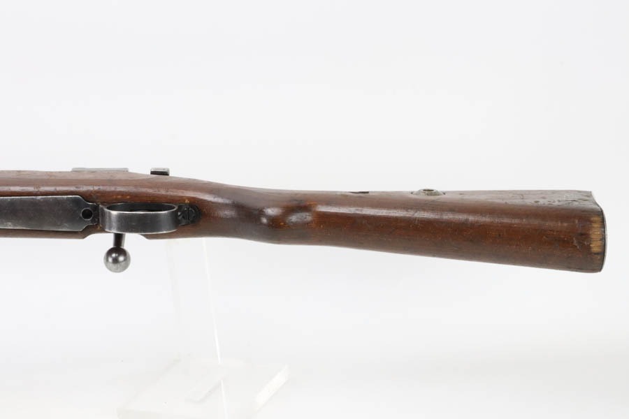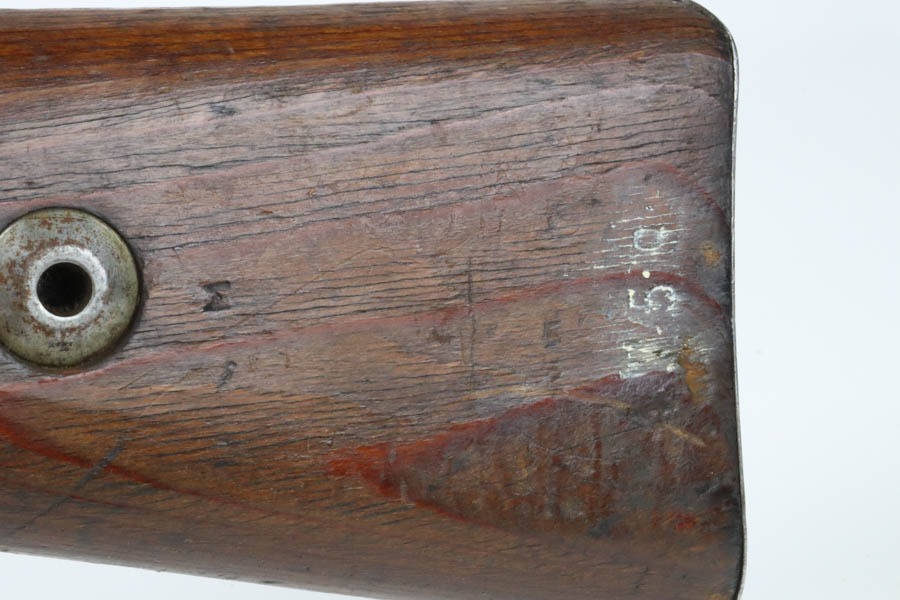 11/4/24 – For sale is a K98k Mauser made by Waffenfabrik Brunn (dou) of Czechoslovakia in 1944. The rifle is in good condition overall with some signs of being reworked. The metal retains a dulled and worn finish that is worn down to bare metal. The stock is in good condition overall without any cracks or breaks. The gun was likely captured by Yugoslavia and reworked as it has a dark finish on the laminate stock with the Eagle stamps peened out. There is also a rack number of some kind stamped at on the left side of the stock. The front barrel band is parkerized. The bore is fairly dark with about a 2″ counterbore at the muzzle.