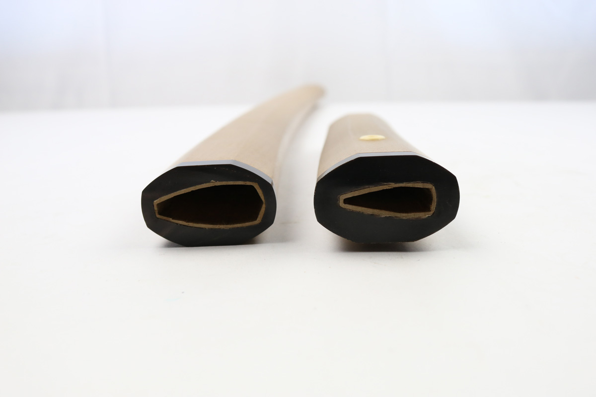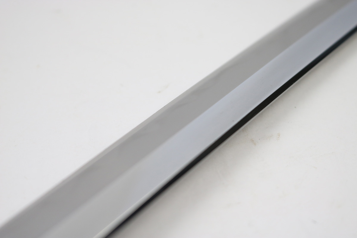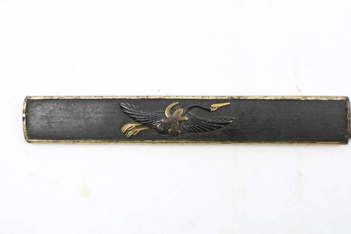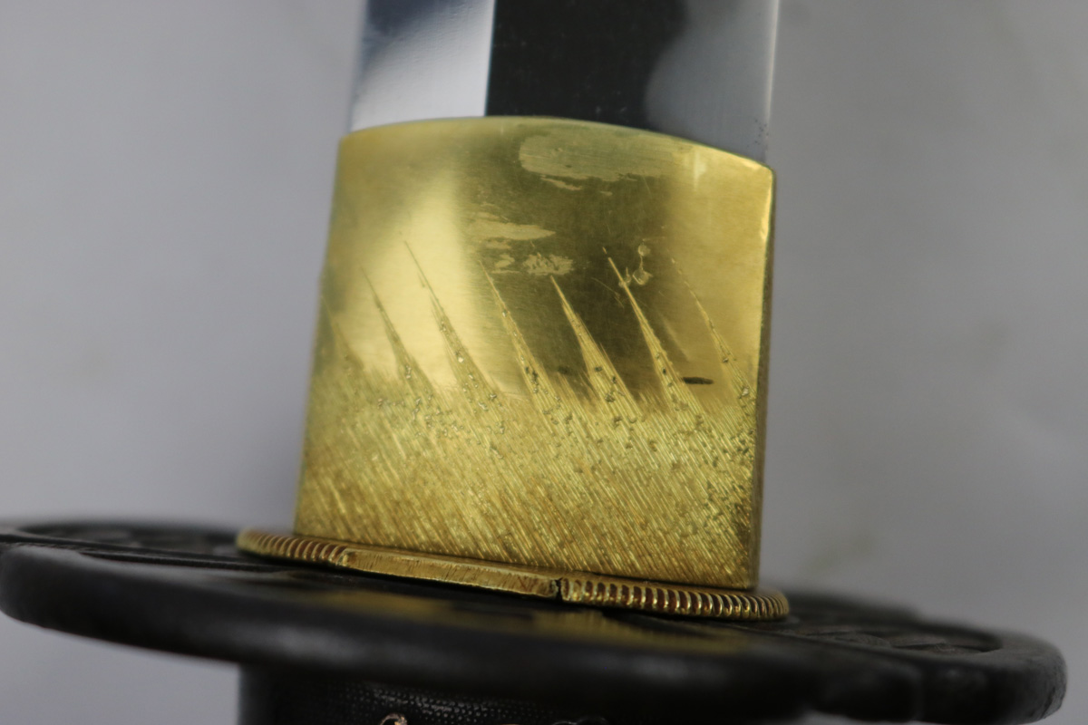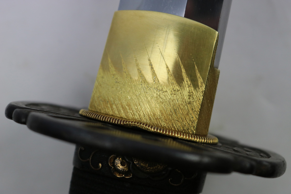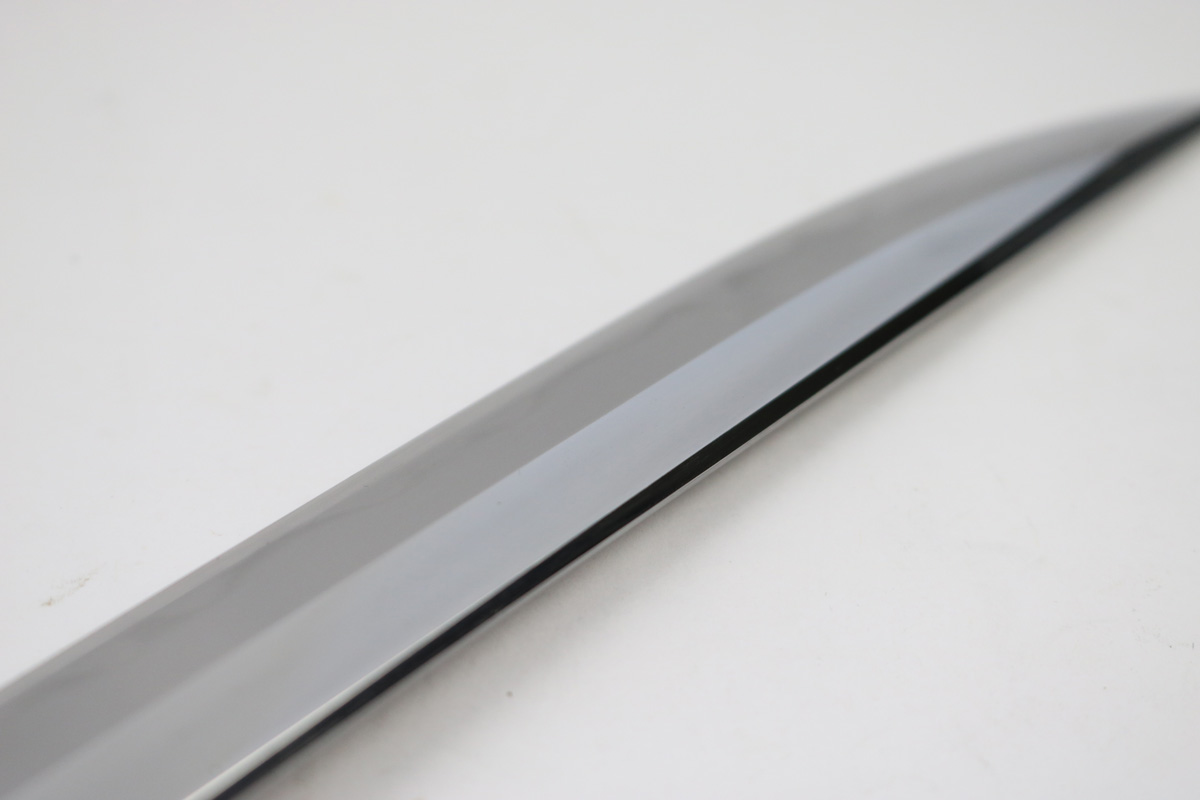 7/17/18 – This is an original hand made Wakizashi blade by Sukeharu. Estimated date of production is 1675. There is a hand-applied inscription of “Settsu ju Sukeharu kore o tsukuru.” on the blade under the handle (tang). The blade comes with the original holding wrap/cloth along with the storage scabbard and storage blade. The workmanship is exceptional with no forging flaws; the length of the cutting edge is 48.2 cm / 19 inches. The tempered cutting edge is the irregular wave pattern iwth tempered spots outside of the cutting edge in the form of the sun and moon. The handguard and other metal furniture date the same period. The fittings are most likely from a later time period. Comes with a “Society for Preservation of Japanese Art Swords” yellow authentication paper. The “yellow paper” certificate is from the current rating system put in place in 1982, and grades the blade as Hozon (meaning worthy of preservation). Guaranteed all original and authentic. We will ship in a protective soft case (worth keeping for preservation). Also included are additional documents and write-up from the 1990s when this was bought by a previous collector from an expert in Canada.