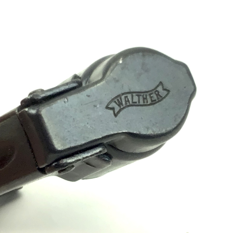5/7/21 – Original and excellent condition. Walther made muzzle cover for a .22 caliber rifle. Stamped with the “Walther” logo on the flap.