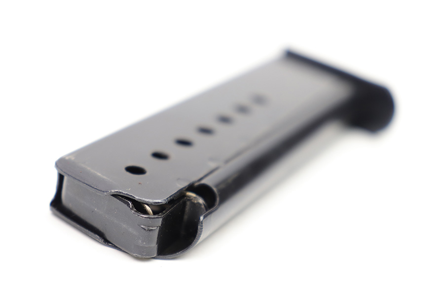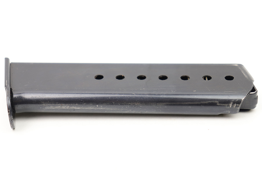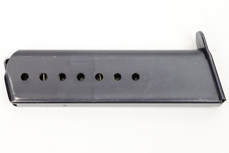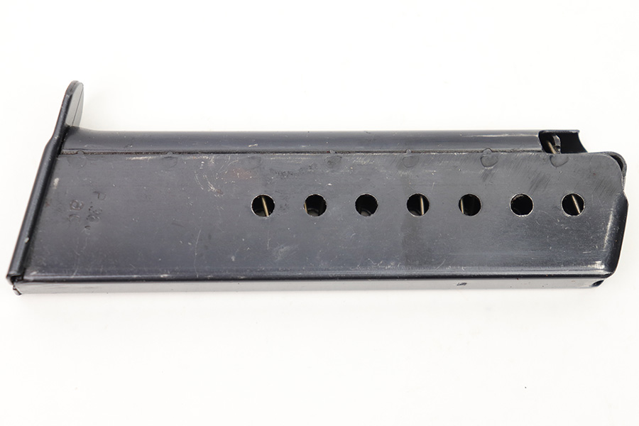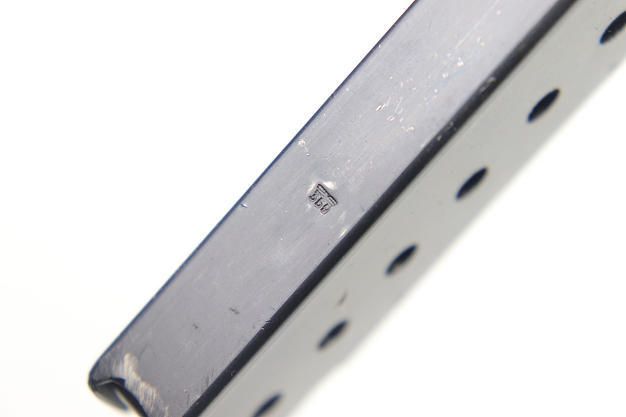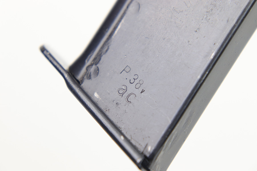 1/26/23 – This is a late-war production Walther P.38 magazine. The magazine is stamped on the left side of the tube, “P.38v AC”. The spine is eagle 359 military proof stamped, and there are no other markings. The original blued finish is excellent throughout the magazine. There are a few mild blemishes on the spine, but no rust or pitting and a fully functional spring.