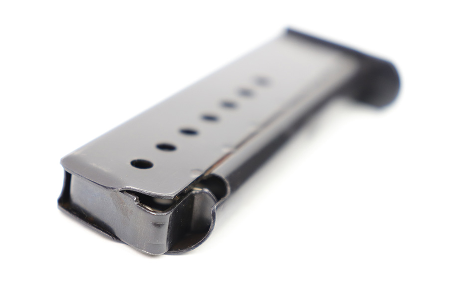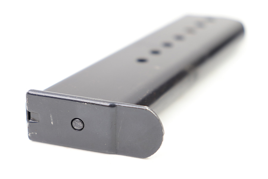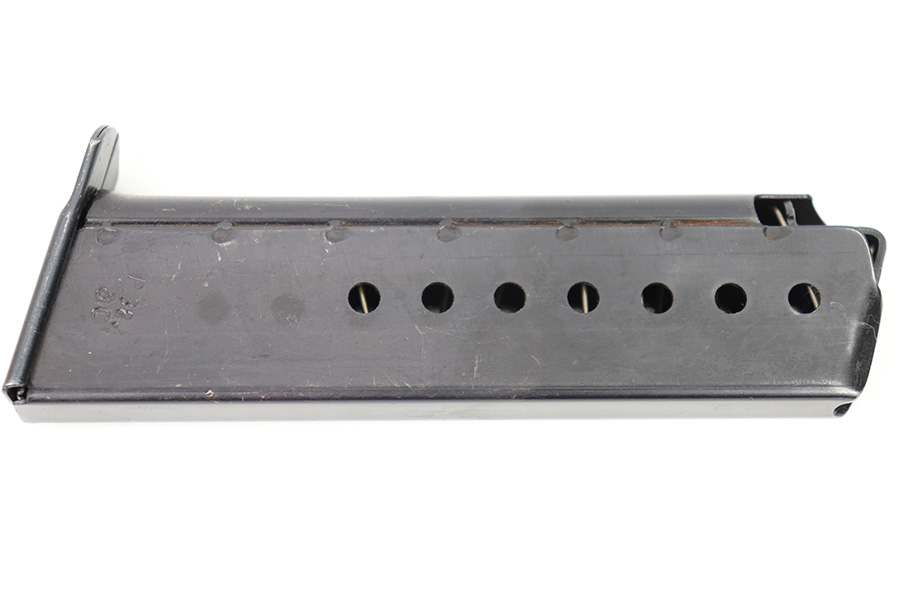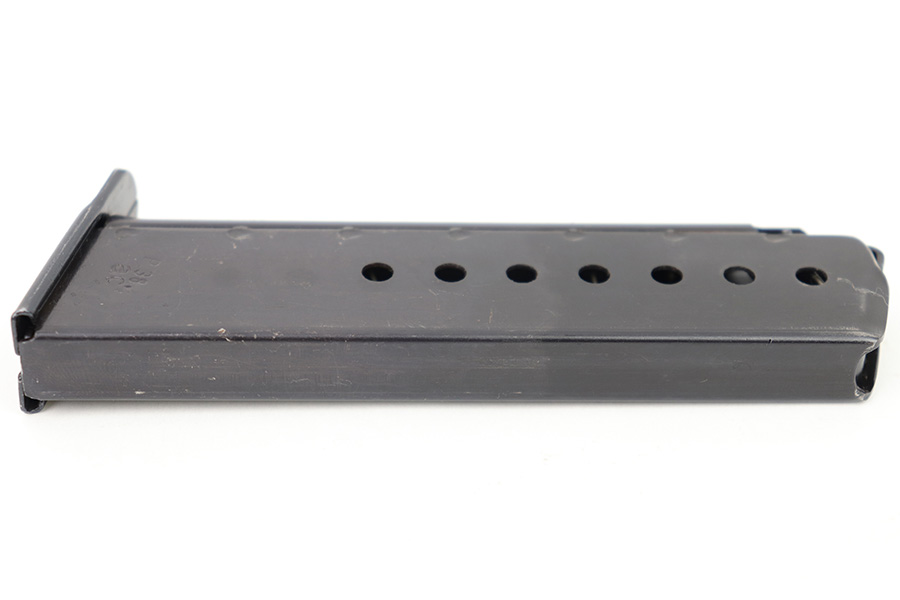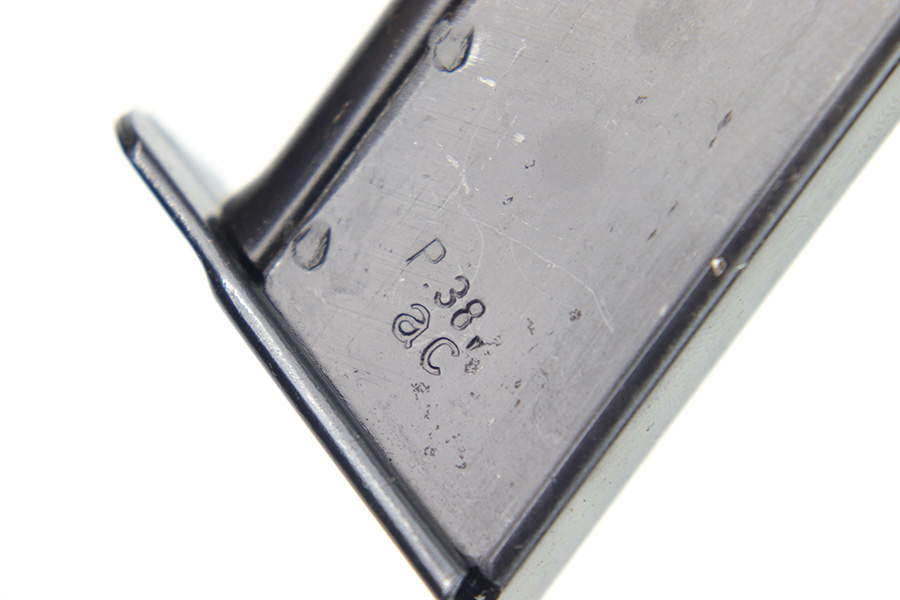 2/21/23 – This is a fairly rare variation late WW2 production Walther P.38 magazine. The magazine features an “AC” stamped under the P.38v stamp on the left side of the frame. There are no other markings or stamps. The blued finish is excellent throughout this example with very minimal finish loss. Fully functional spring as well.