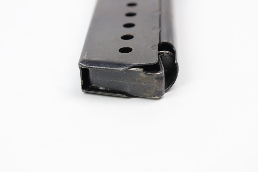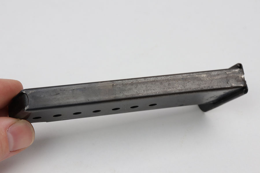 10/21/20 – This is an original Walther P.38 magazine from WW2. A fairly scarce variation with “AC” under the P.38 stamp on the left side. The spine is oddly unmarked (typically there are proof stamps here). The spring is strong and functional. The frame has some light speckling wear but overall in good condition.