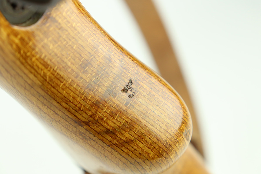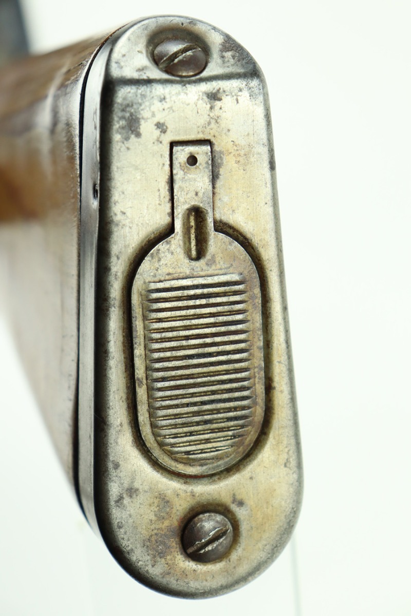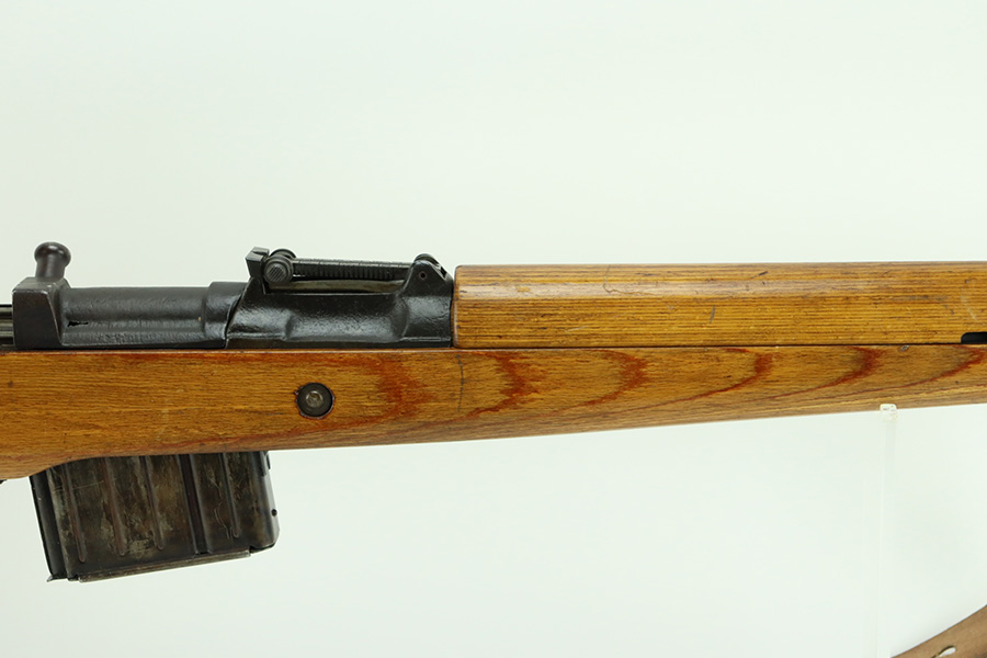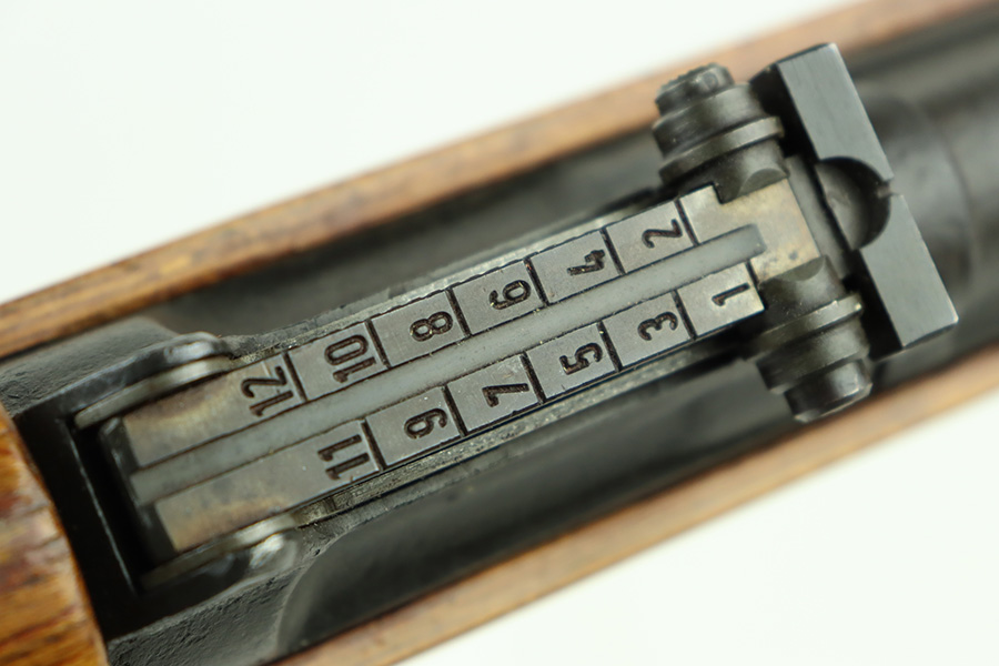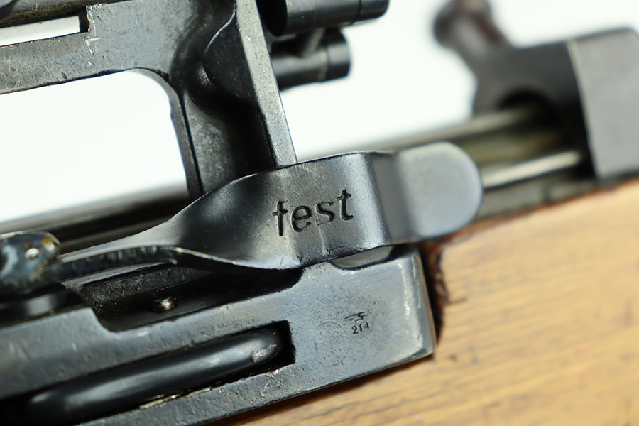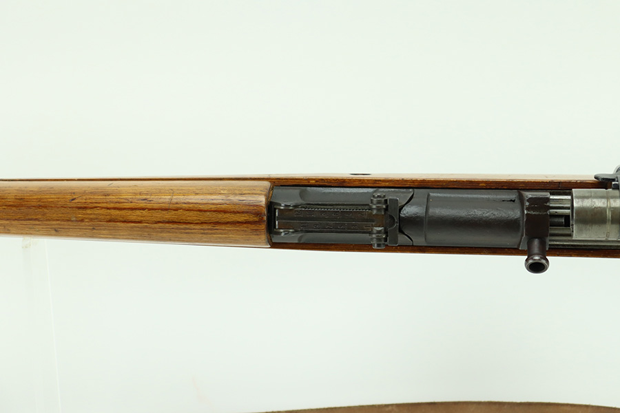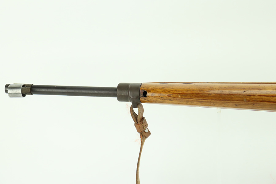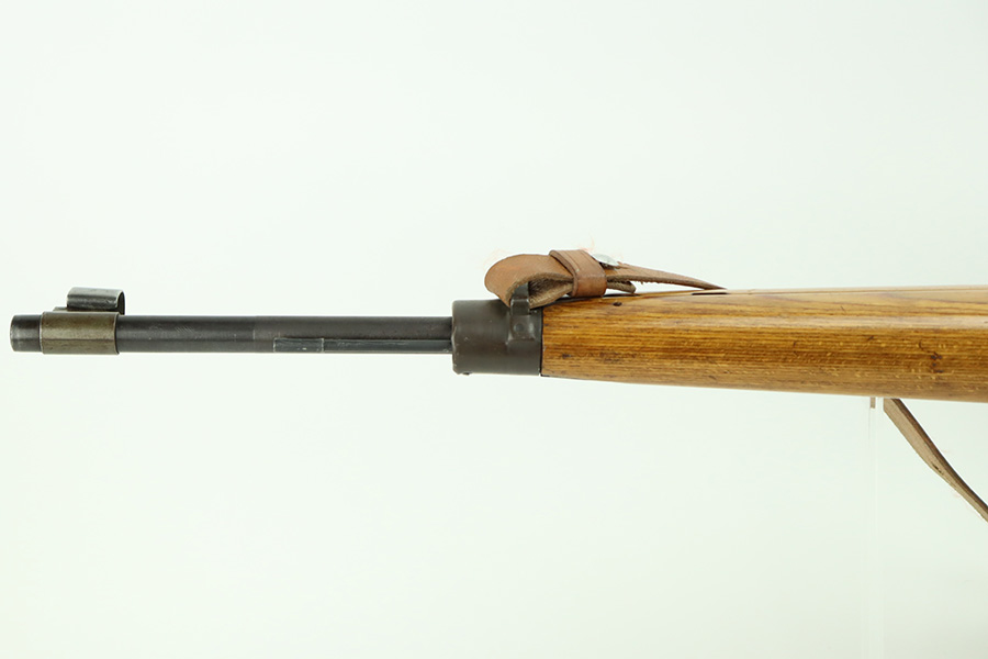 2/5/24 – This is a nice example of a Walther K.43 sniper rifle from 1945. All numbered parts are matching, but many of the internal parts are not numbered. There is a hole in the bolt carrier and bolt housing, so we would advise having your gunsmith inspect this one before you fire it – it likely needs new internal parts. There is very little finish loss. The scope shows some thinning and pitting, but the optics are good. Excellent wood furniture, but we believe it has been sanded. Excellent bore with strong rifling. Comes with one proper magazine and a tan leather sling.