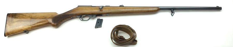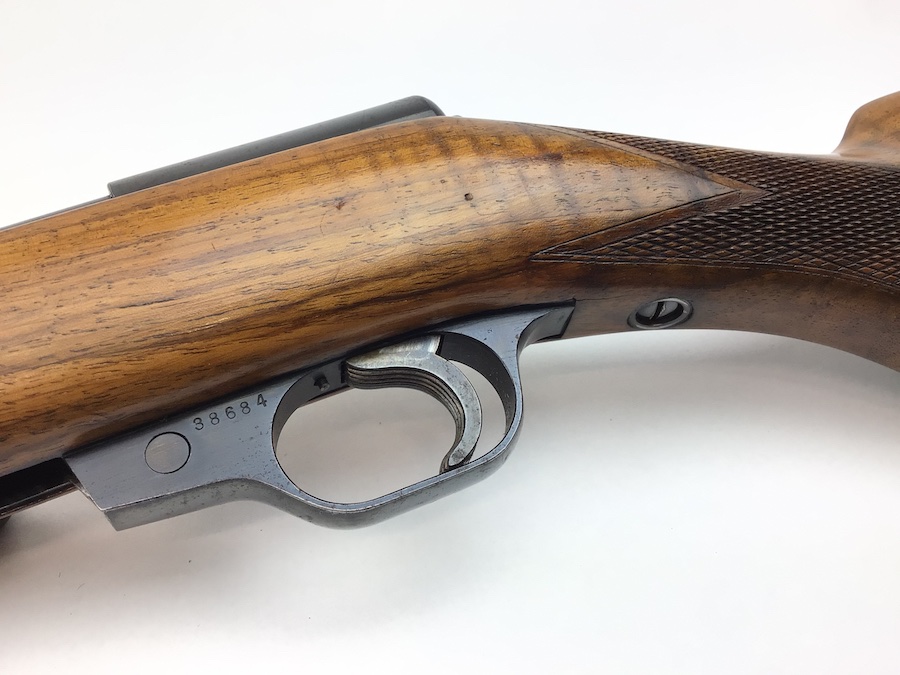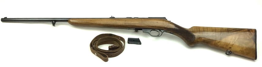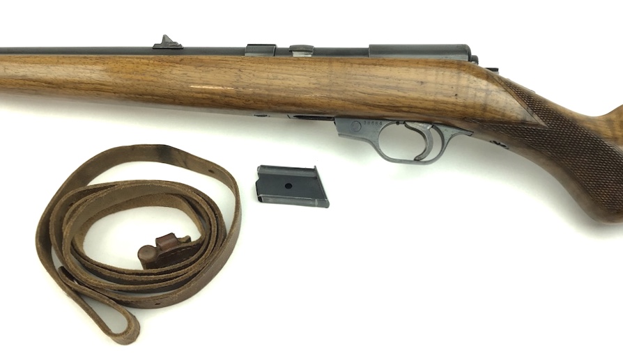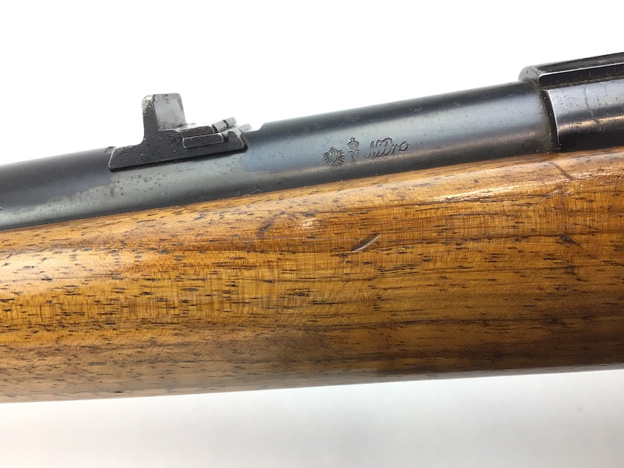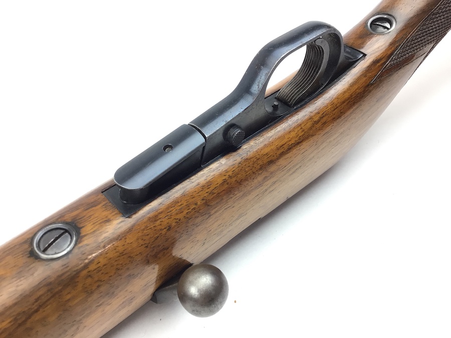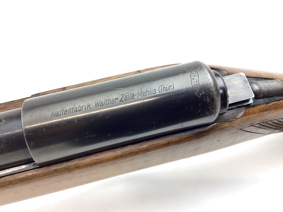 2/8/21 – Original and excellent condition Walther Model 1, .22 caliber semi-auto target rifle. Includes 5 round magazine and original sling. Functions in semi-auto mode or bolt action. Manufactured at the Walther factory pre WWII. Bluing is 90 – 95% remaining with minor edge wear. Beautiful hardwood stock with minimal wear, that we believe to be original. “B.U.G.” stamped on the right side of the barrel. Top of receiver is stamped “Waffenfabrik-Walther-Zella-Mehlis/Thur” along with the “Walther” banner. Bore has a mirror finish with no pitting. No import marks. Completely functional.