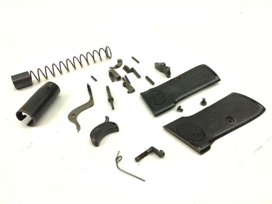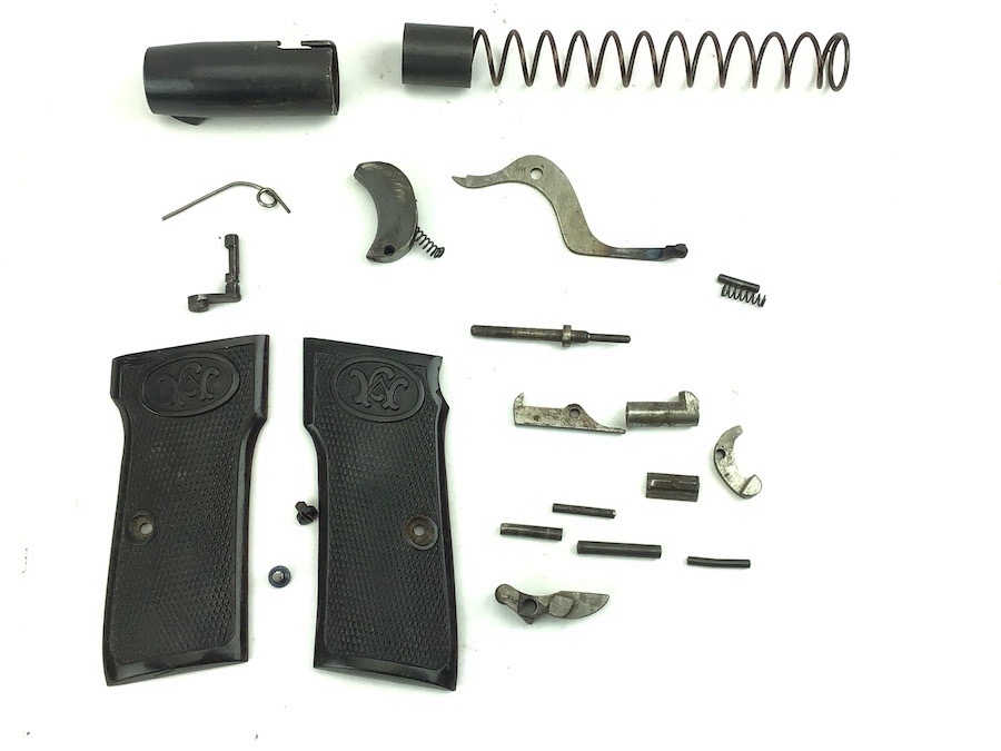 10/14/22 – Original and Great condition. Grips and Small parts for the Walther Model 4. Includes grip panels & screws and numerous small parts as well. Grips show minor use wear with no cracks. All usable pieces.