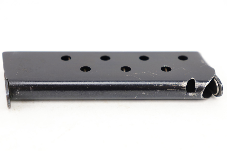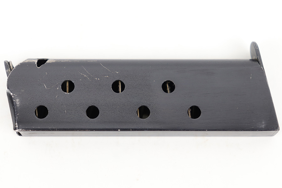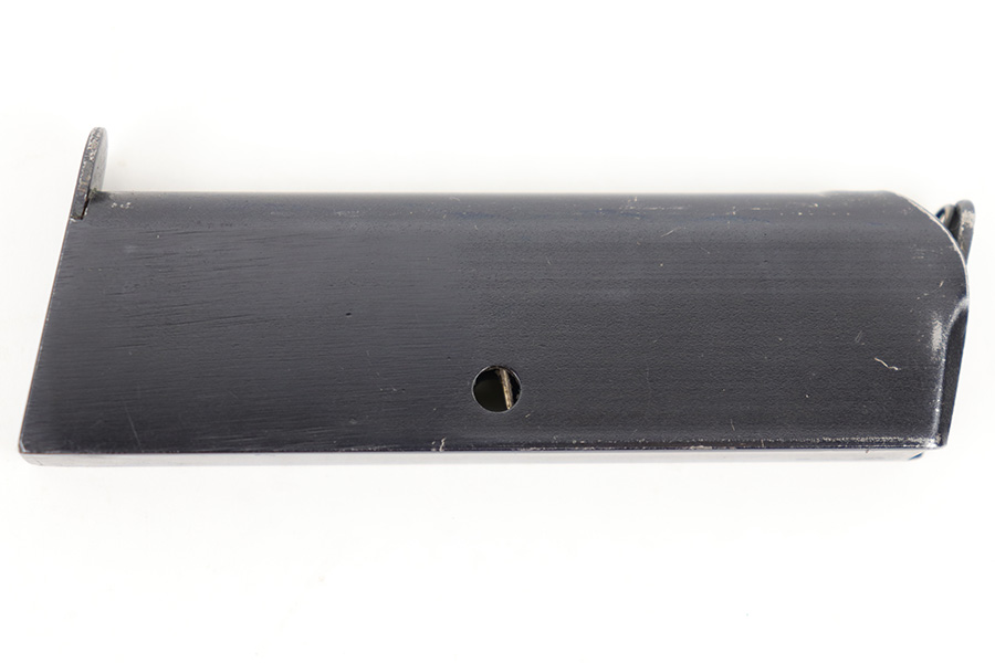 4/11/23 – This is an excellent condition Walther model 4 magazine. Strong, original bluing throughout and a Walther banner stamped on the base. No other markings or stamps. Strong, functional spring. Likely aftermarket production.