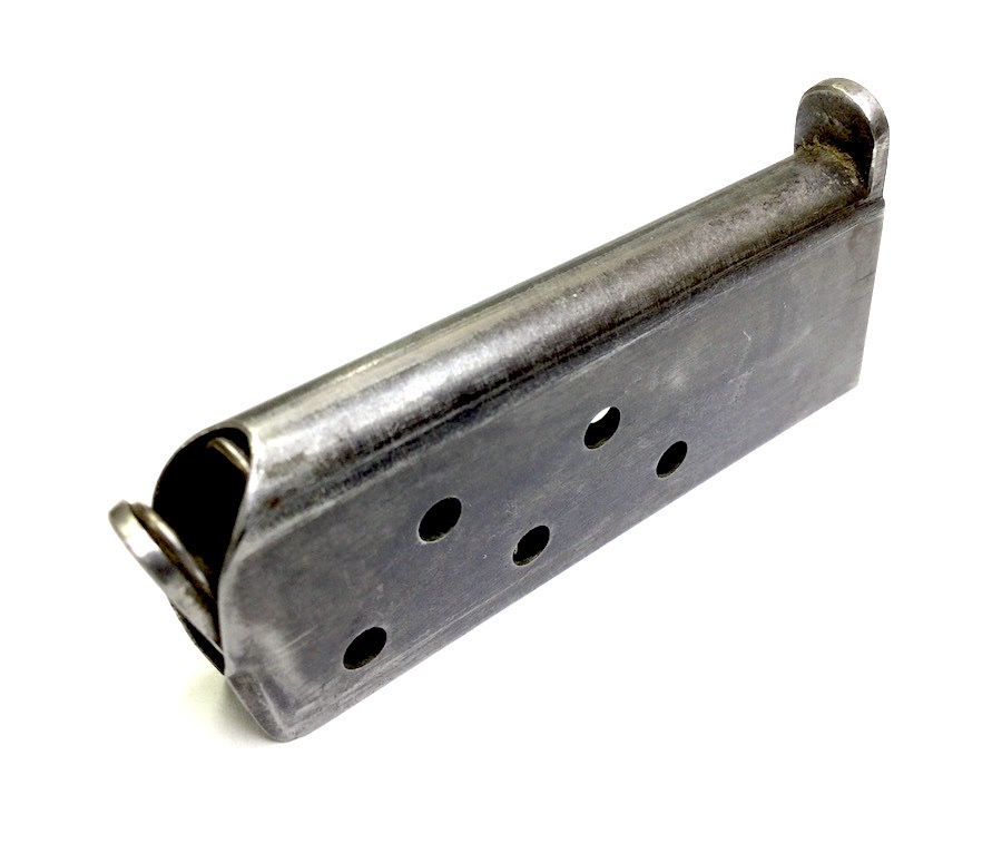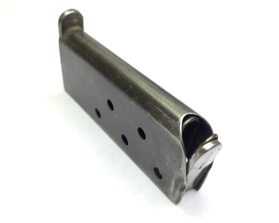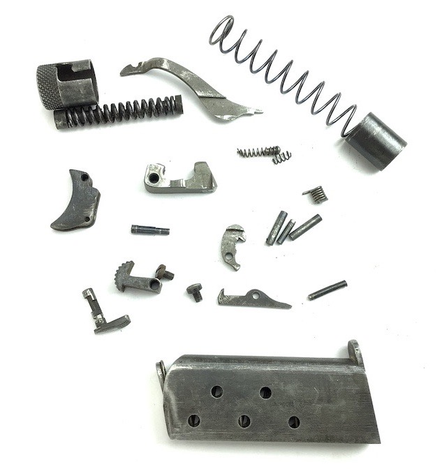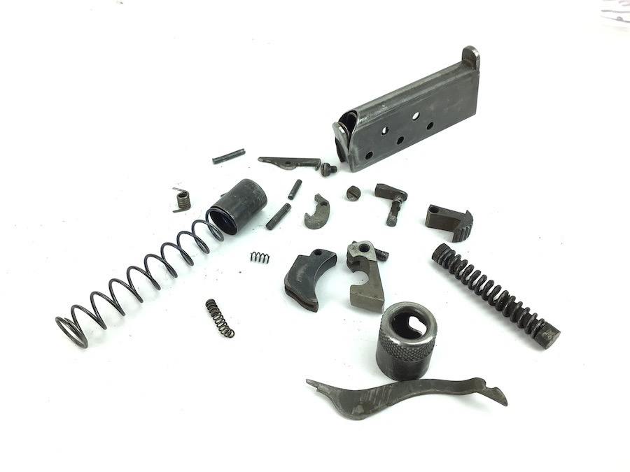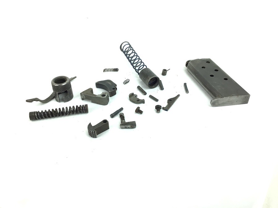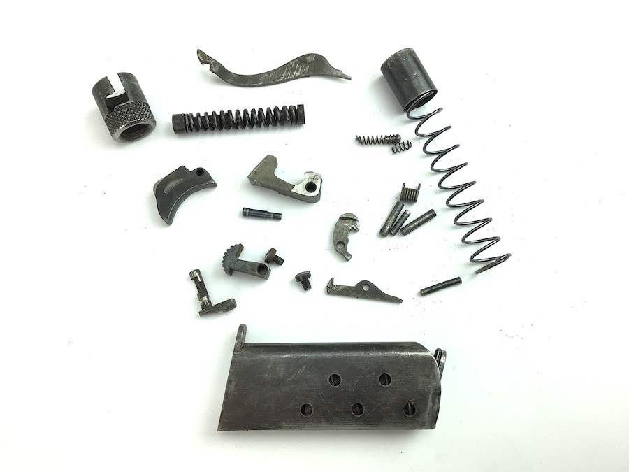 5/13/24 – Original and great condition. Walther Model 5 magazine and small parts kit. Magazine and parts show only minor wear. All parts are useable. Magazine operates smoothly with a strong spring.