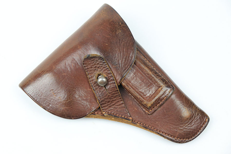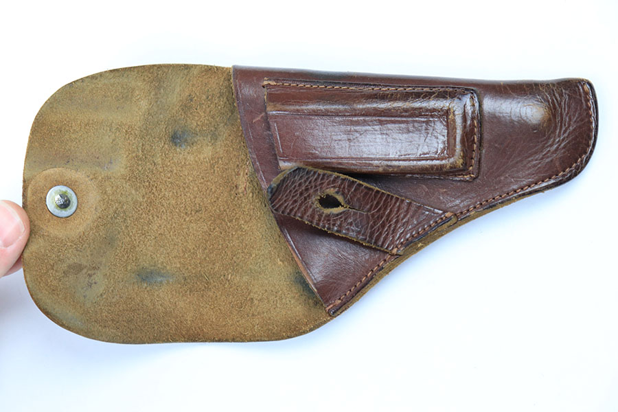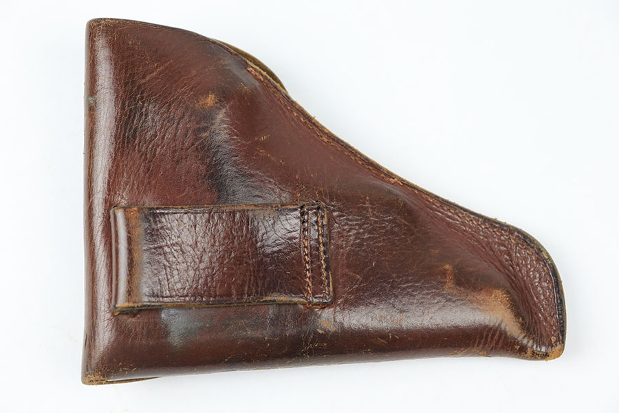 8/18/21 – This is an unmarked holster for a Walther model 8 or similar sized 6.35mm pistol. Great overall condition and very hard to find variation. The leather and stitching is lightly aged but completely in tact.