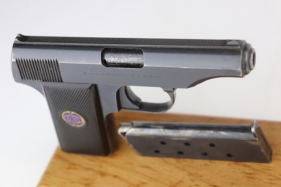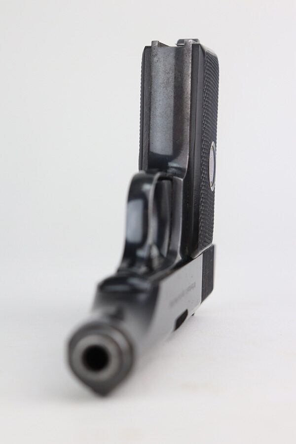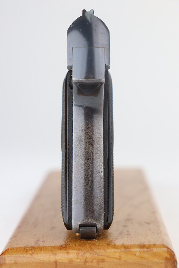 6/3/21 – This is a very nice example of a Walther Model 8. It is matching and has the proper “Crown N” proofs. It has retained about 94% of its original bluing. Most of the wear is on the front strap, where there is also spotty oxidation. As a result, the profile views are excellent. Very minor wear on the high edges of the slide. Excellent grips. Excellent bore – shiny with strong rifling. NOTE: Listing includes only one magazine.