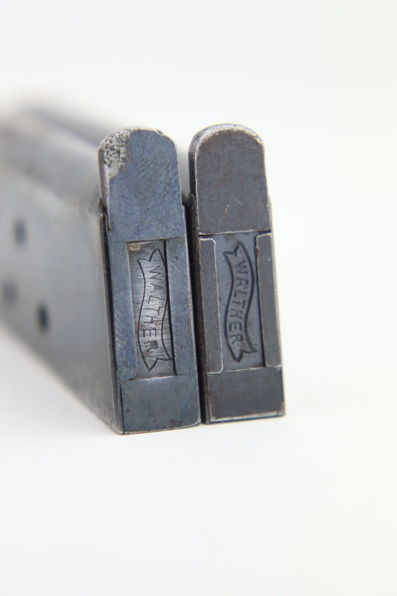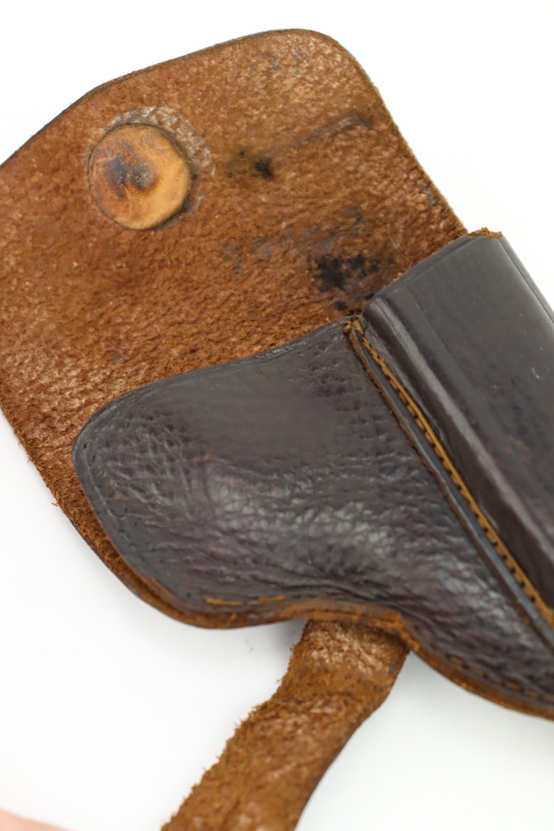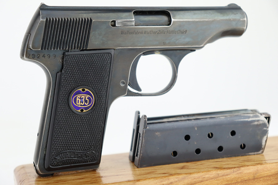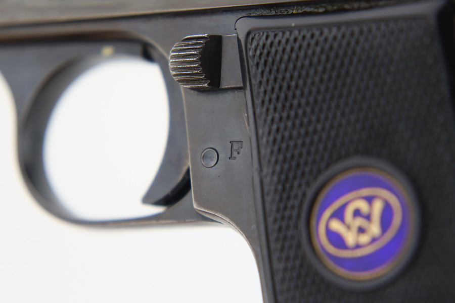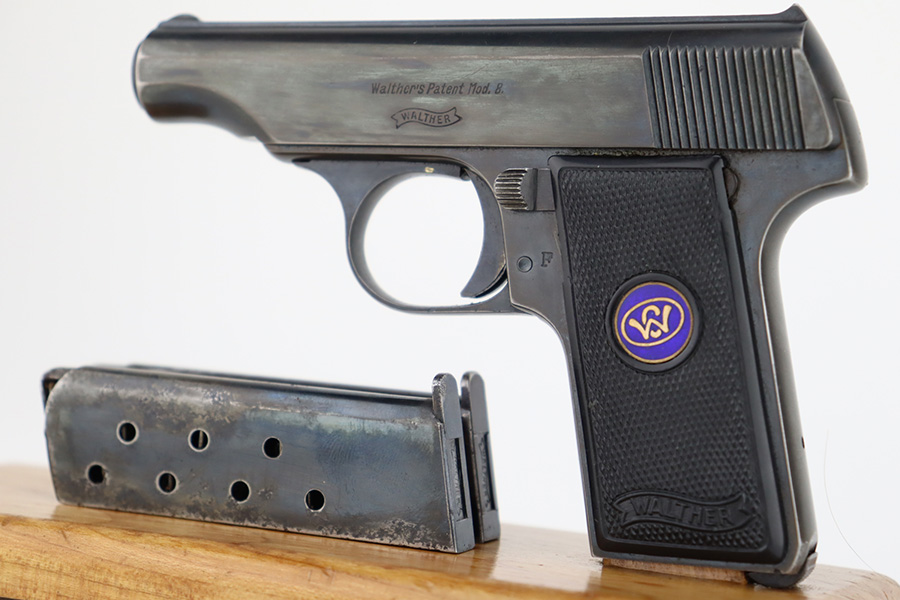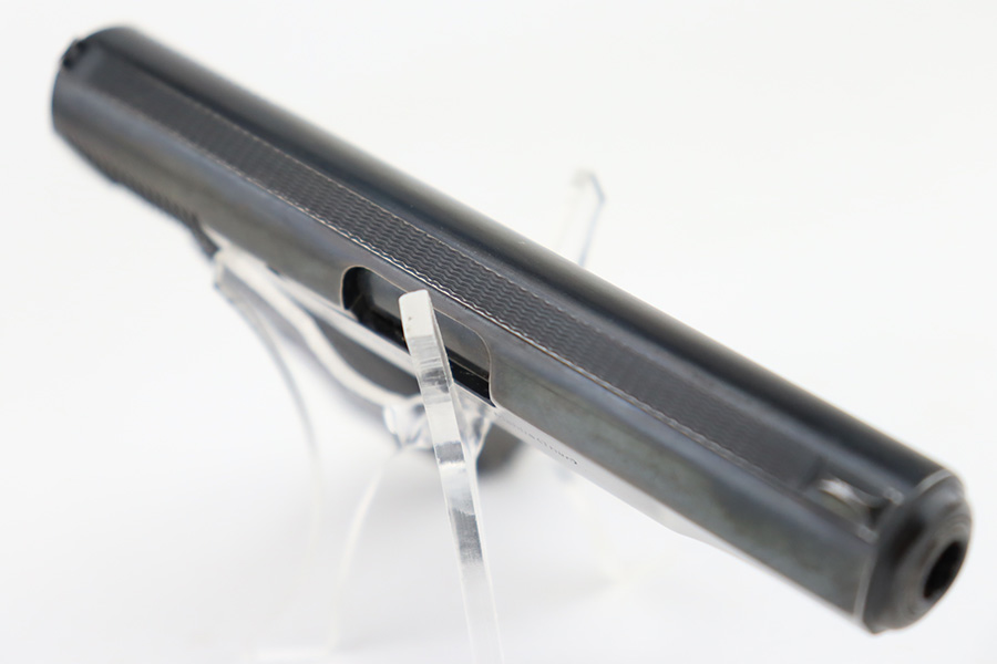 1/5/24 – This is a Walther Model 8 from the 1930’s. All matching and “Crown N” proofed. It comes as a rig with a nice leather holster and two proper “Walther” marked magazines. The gun’s bluing rates about 93-94% with general high edge wear and spotty brown patina visible under the finish throughout. Fitted with excellent period-correct grips. Minty bore.