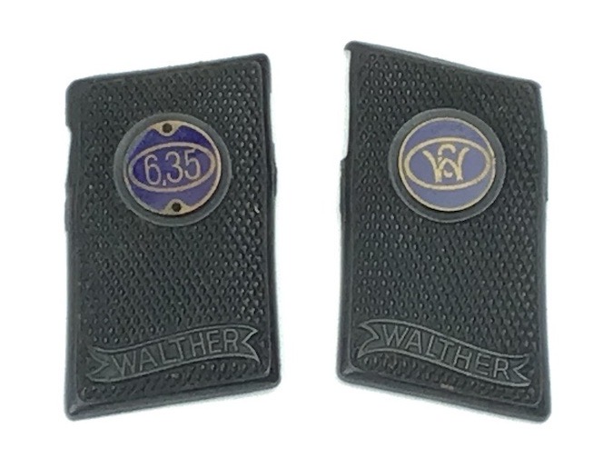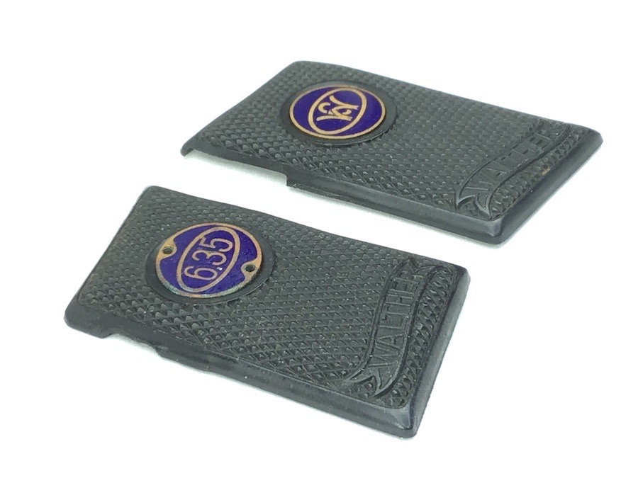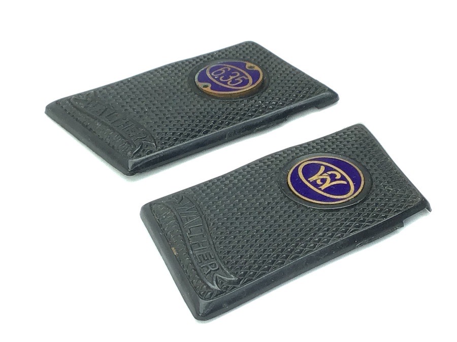 5/22/23 – Excellent and original pair of Walther Model 9 grip panels and attachment hardware. Grips have distinct checkering and no chips or cracks. Medallions are colorful and in excellent condition. Hard to upgrade.