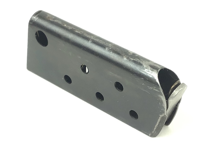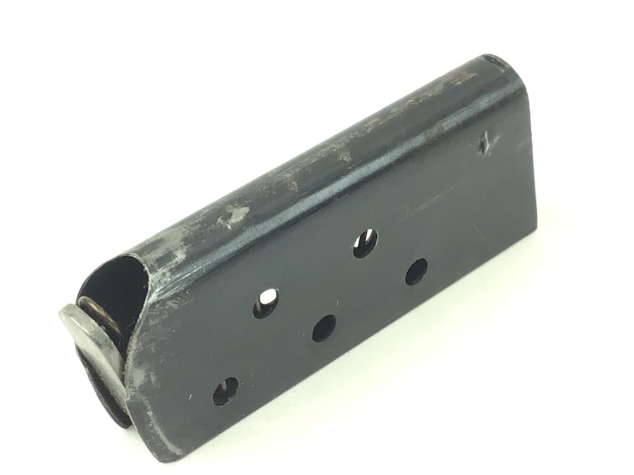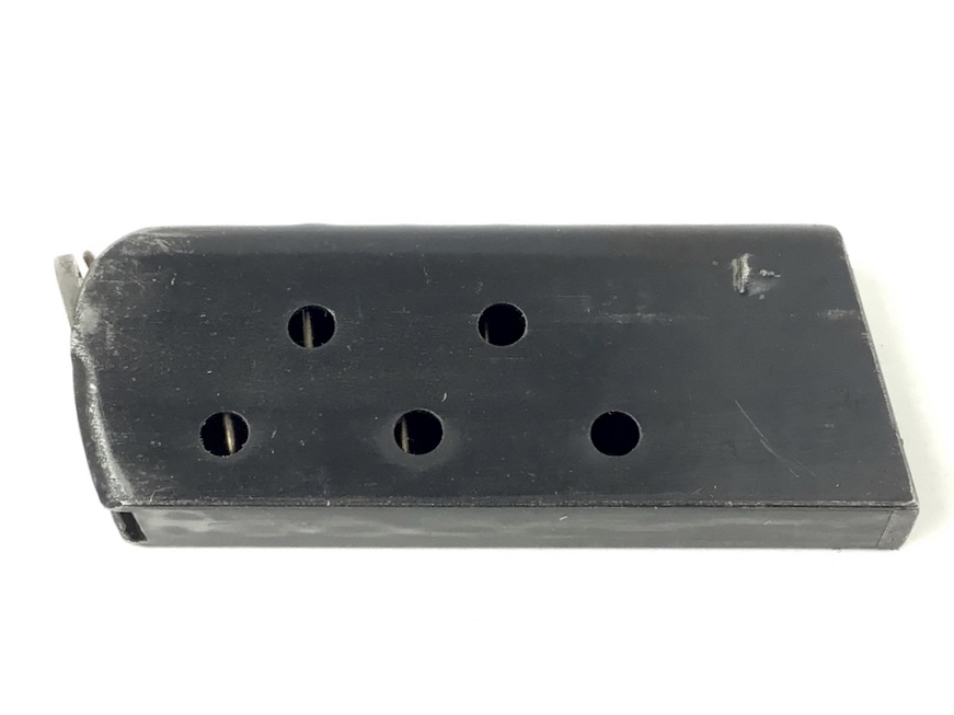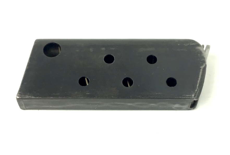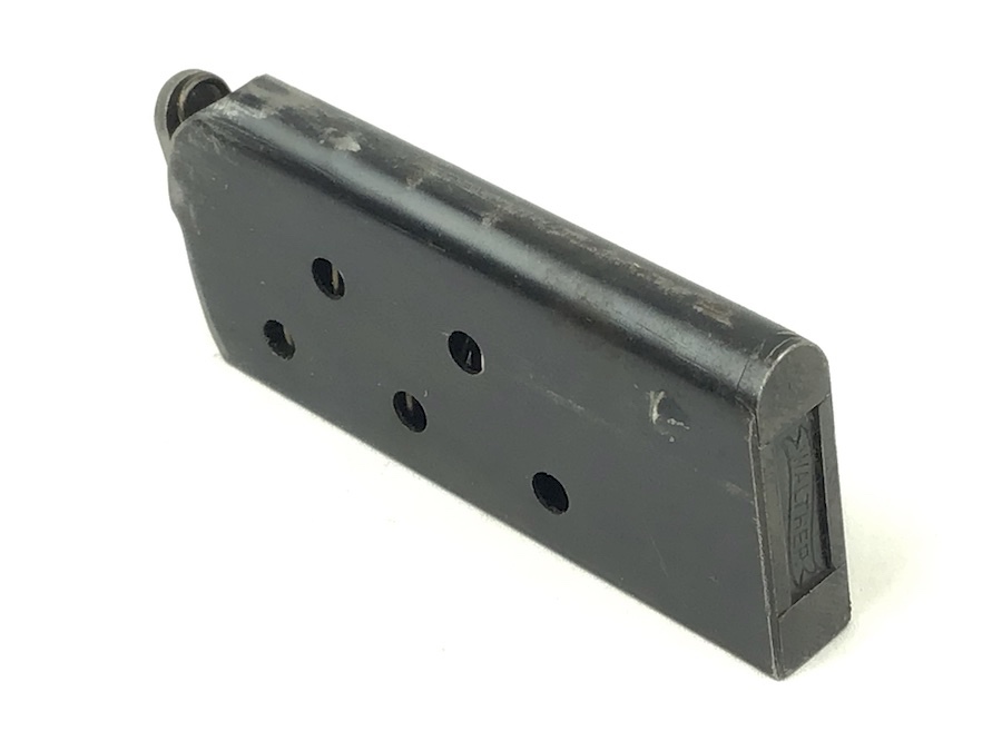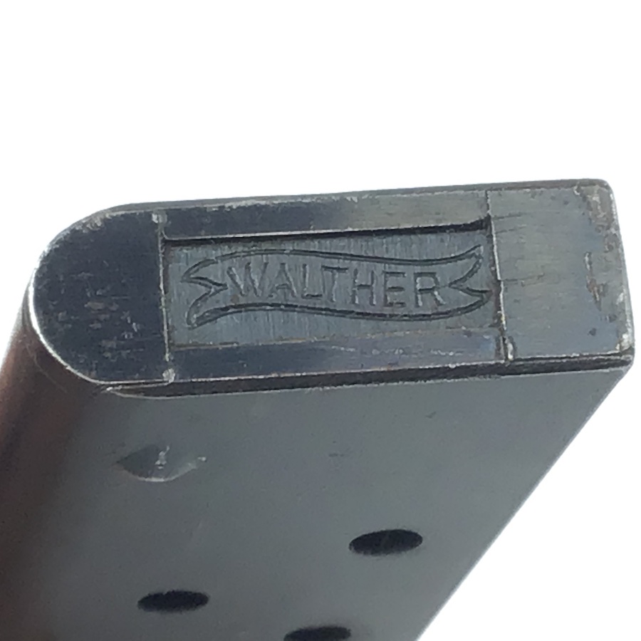 3/1/21 – Original and excellent condition Walther Model 9 magazine in 6.35mm. Walther banner stamped on base. Great bluing and strong spring.