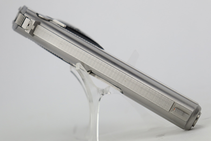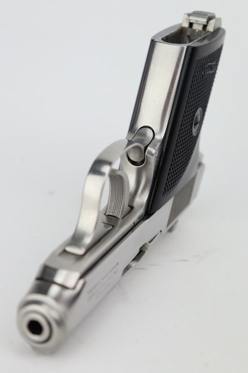 8/14/23 – This is an excellent example of a Walther Model TPH, chambered in .22 LR. The gun has a really nice stainless finish, fitted with excellent black plastic grips, and comes with one proper magazine. The gun itself is in excellent condition overall, but there is light scratching along both sides of the slide. Mint bore.