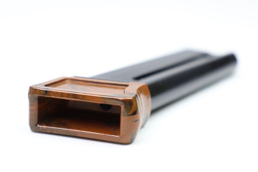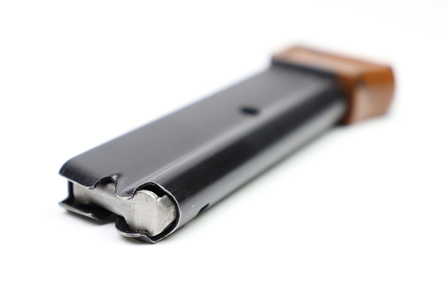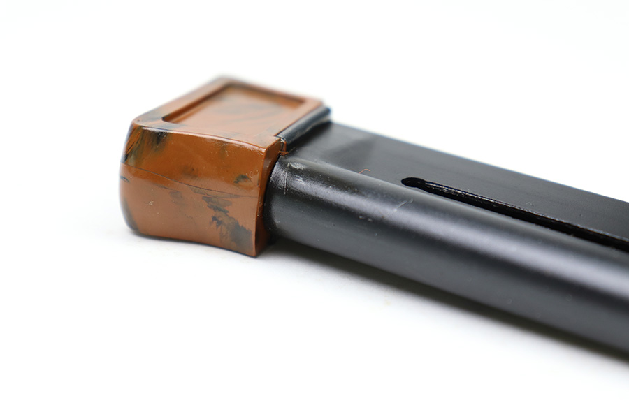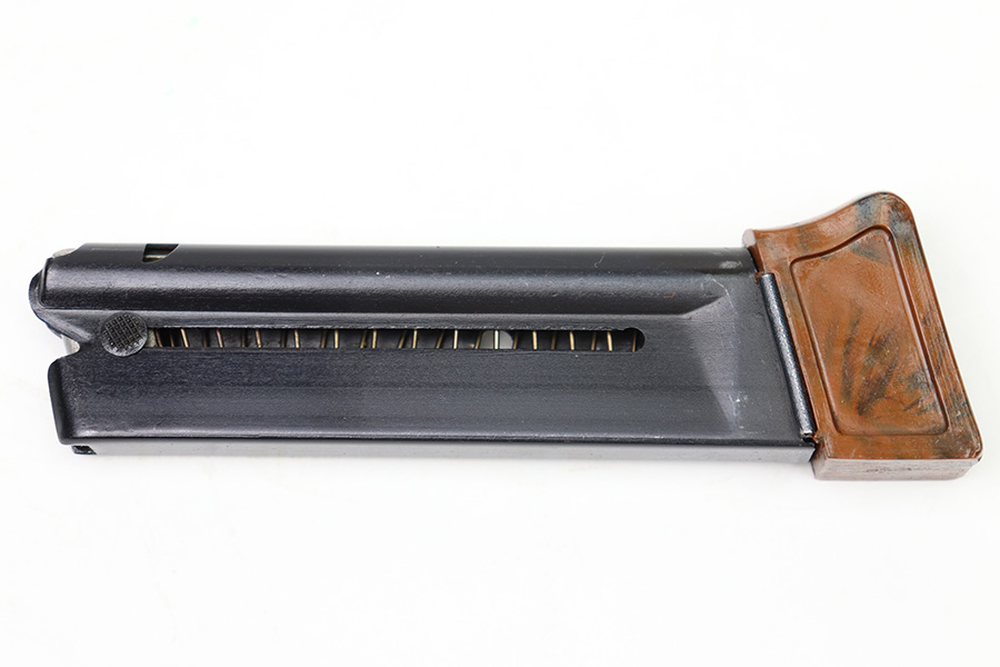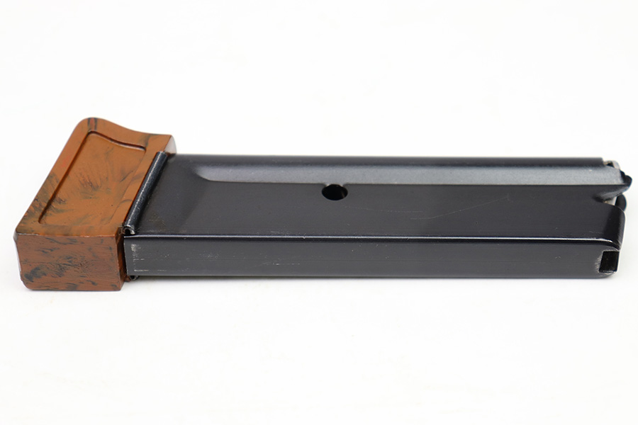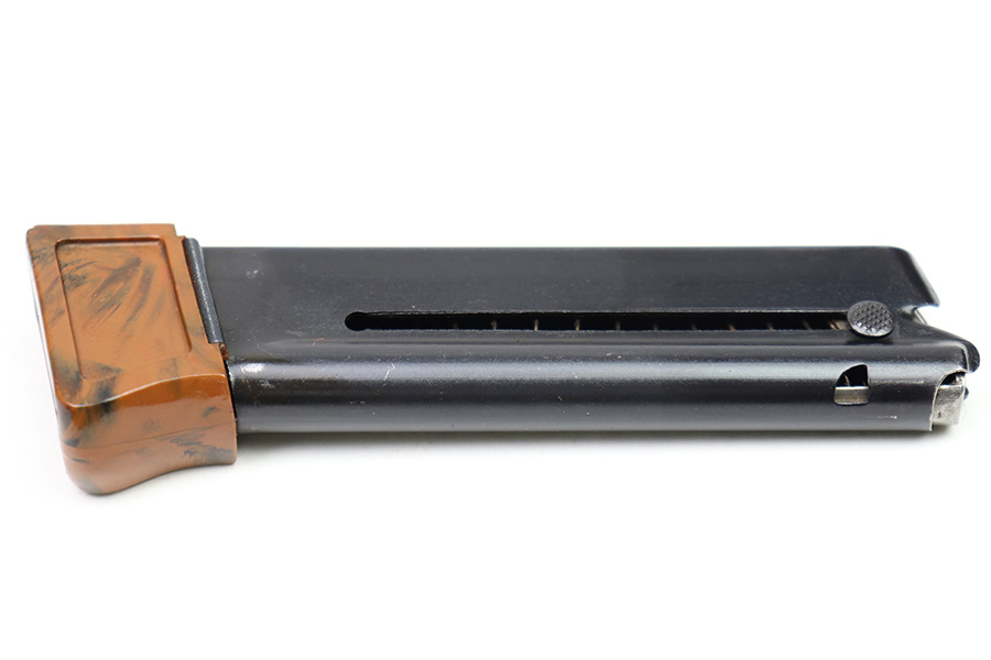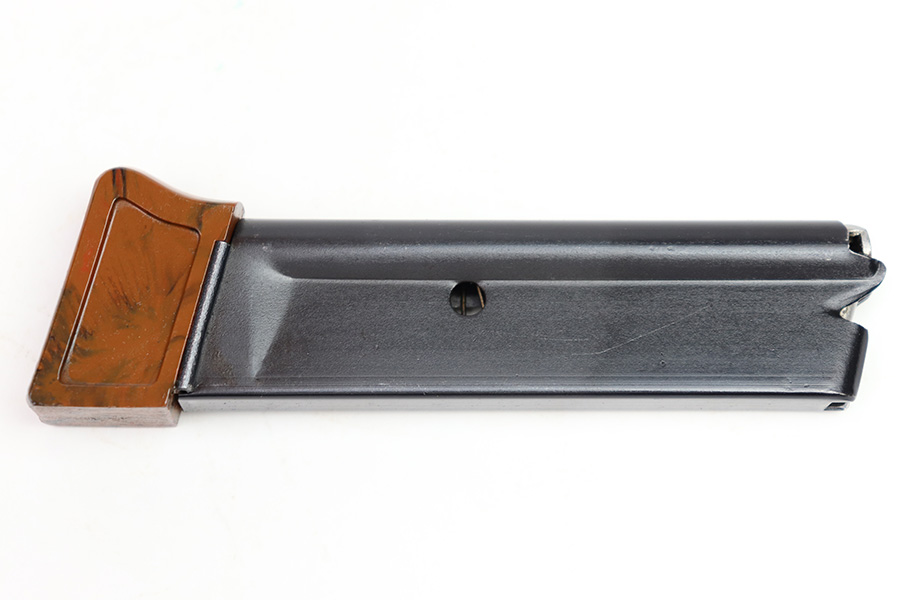 10/19/22 – This is an original Walther Olympia .22 LR magazine. The magazine has a brown plastic finger extension and is in excellent overall condition. No cracks or chips on the finger extension, and the magazine tube is clean throughout with minimal bluing loss.